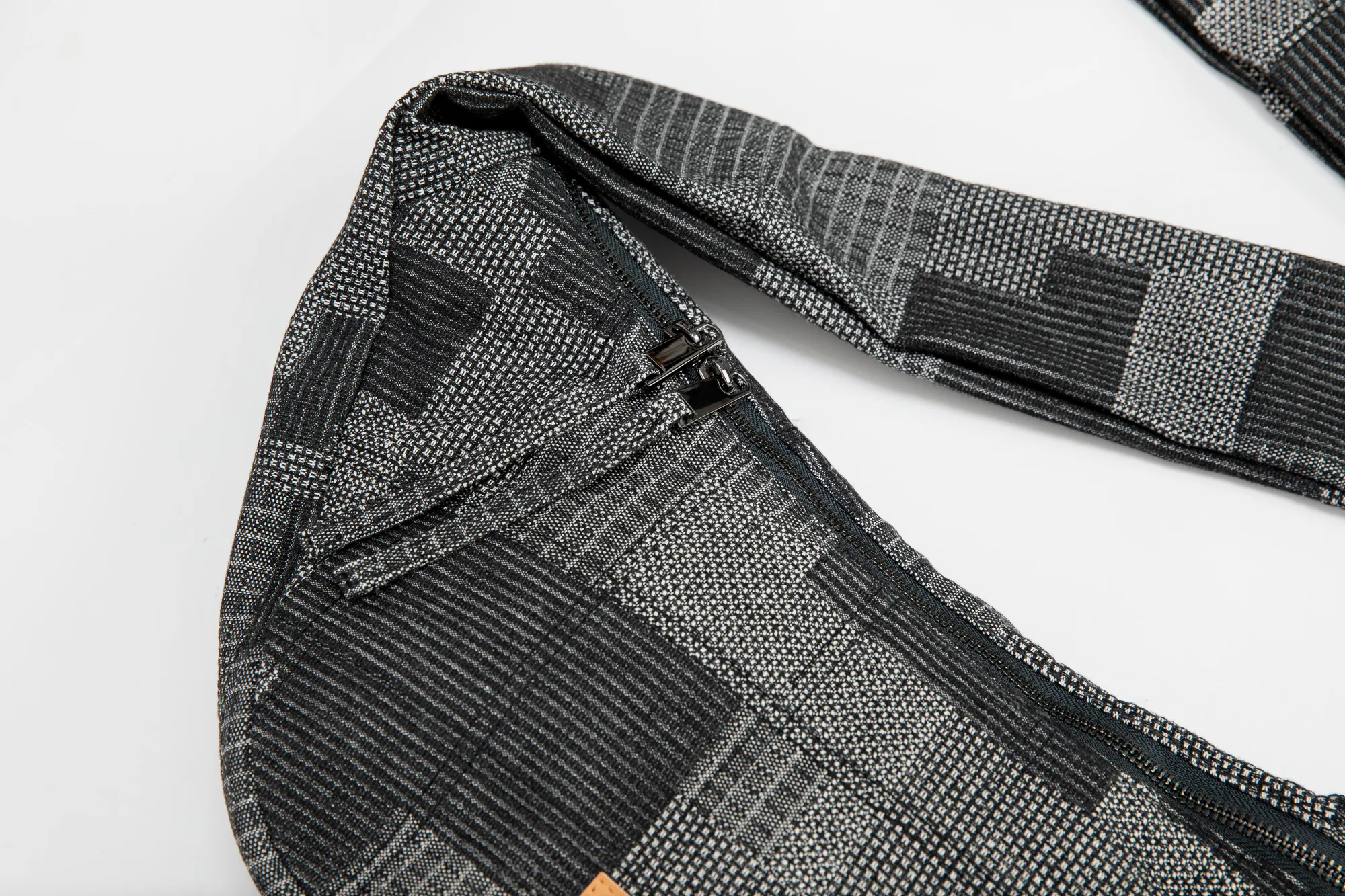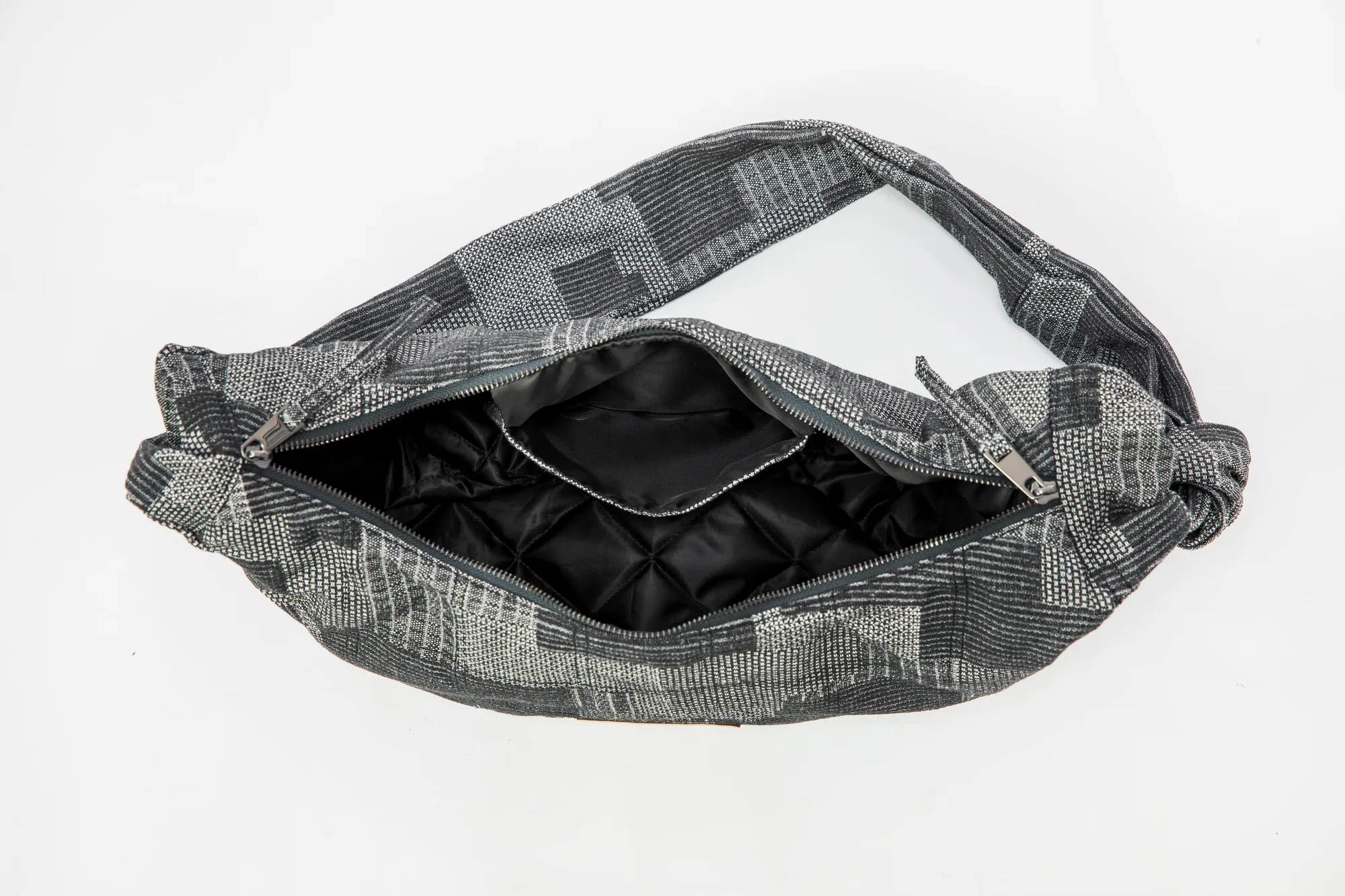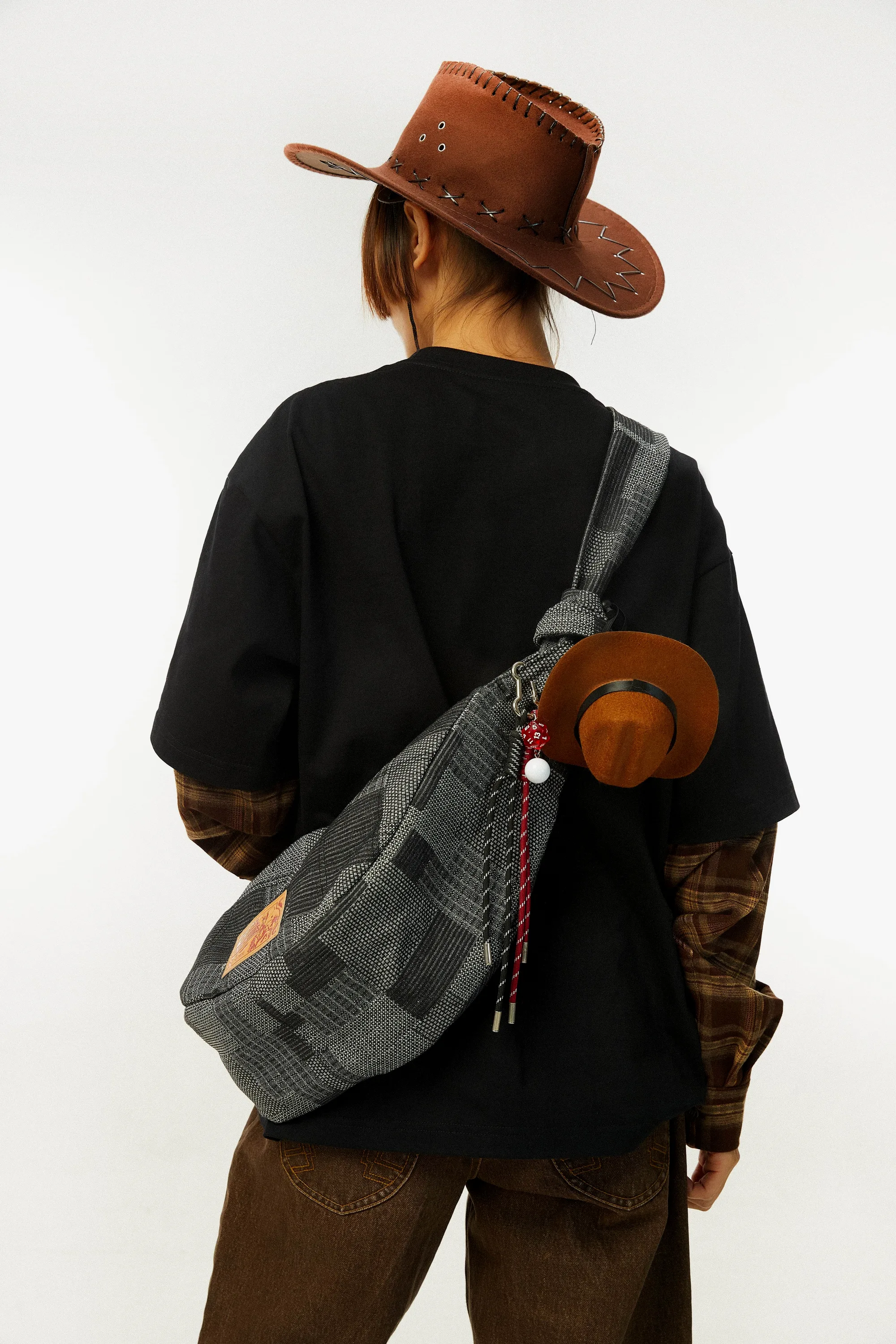 该款斜挎包选用造型独特的「饺子包」作为基础包型,并选用牛仔蓝及黑色拼接的百家布面料,纹理清晰,结实耐用,包身容积也十分适合日常外出使用。
