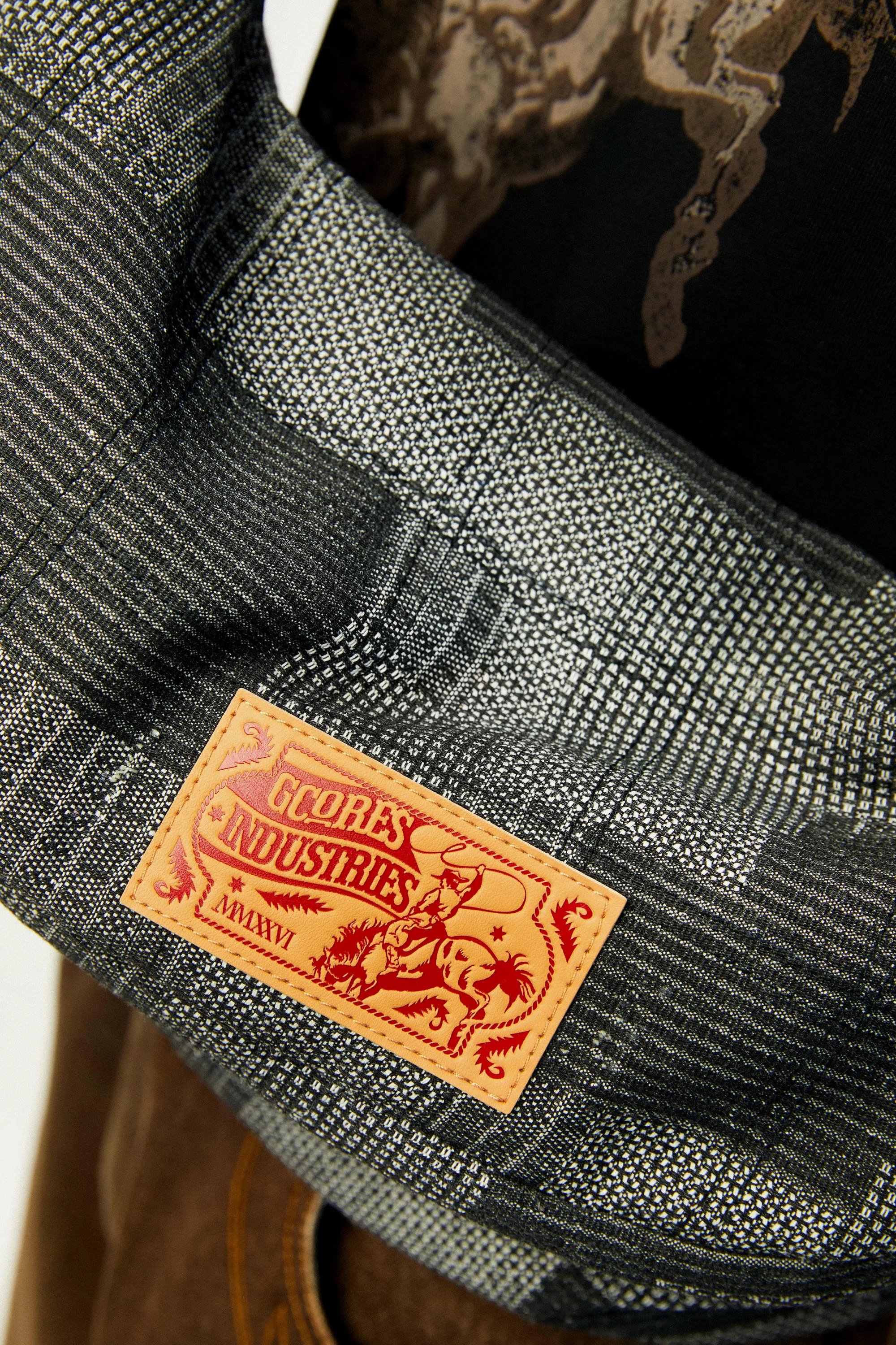 作为该系列的点睛之笔,我们以极具复古的方式通过钢印与彩色印花结合的工艺,搭配粗犷且附有装饰性的字体将主视觉图案以皮牌的形式点缀于衣身之间,为马年系列烙上不可复制的专属印记。