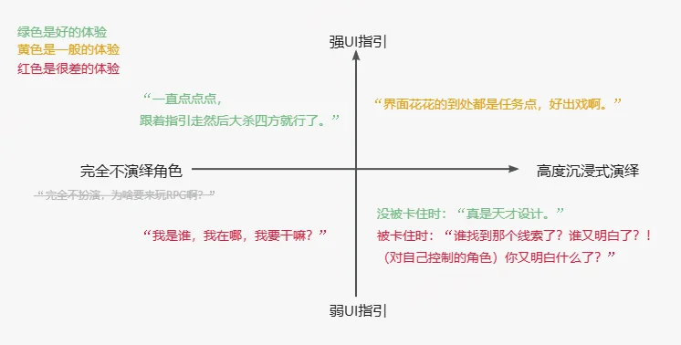 ⚠️“沉浸感”与“流畅感”存在RPG游戏中有天然的矛盾。沉浸感来自于玩家对角色的“演绎”。而任务指引恰恰是为了让玩家在不沉浸于角色扮演时也可以流畅的体验整个任务流程而存在的保底设计。