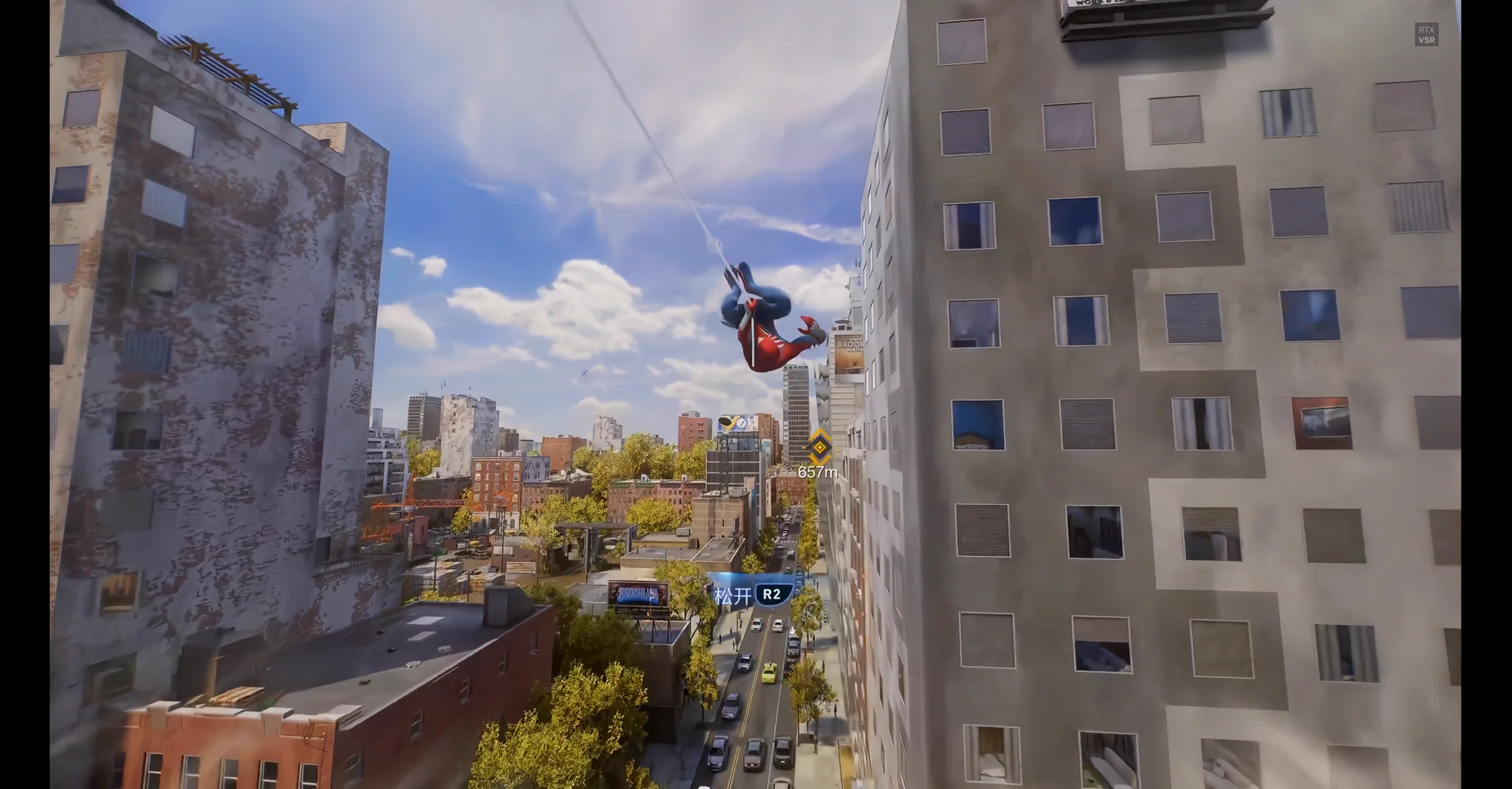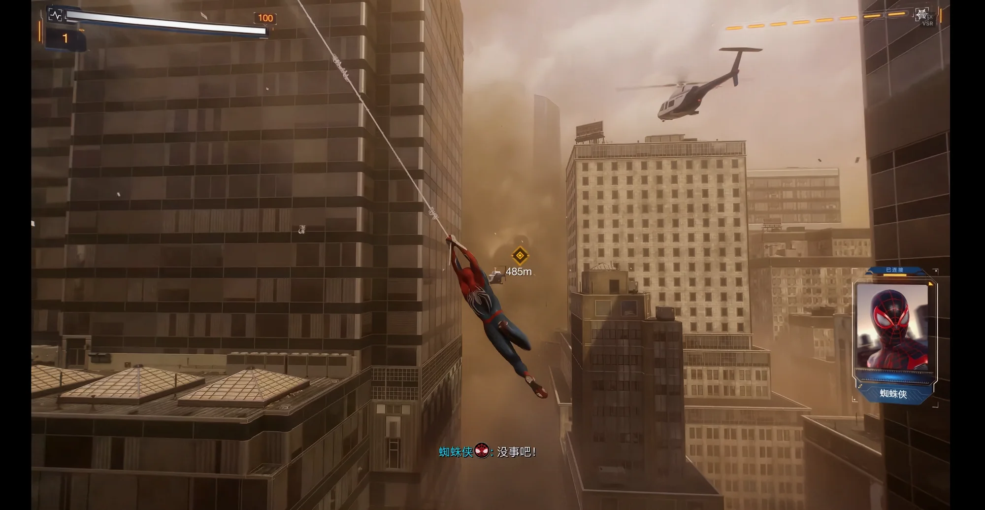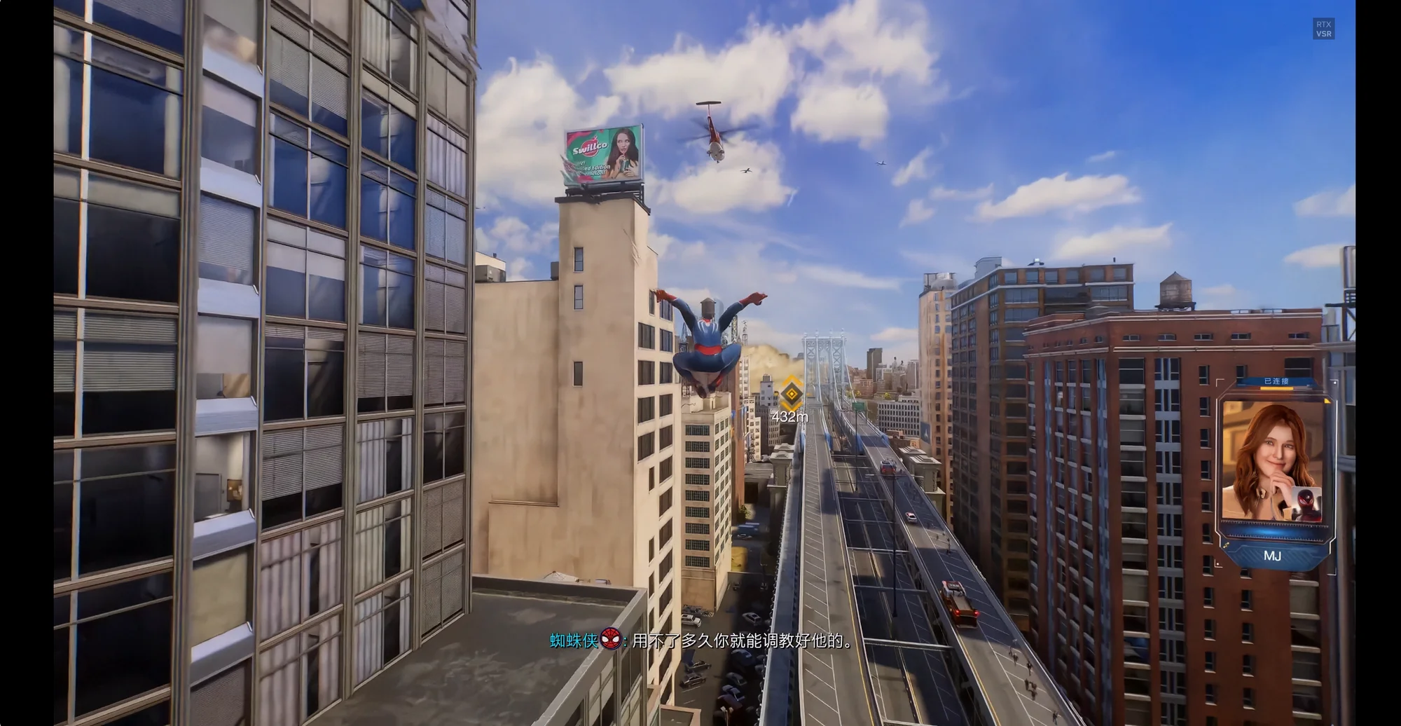 然后是弱引导。《漫威蜘蛛侠2》的城市区域设计上就天然具有强线条感,这不仅对于序章一开始的引导以及后续开放世界的探索、穿梭城市体验的塑造等起到很重要的作用,同时强线条感也能够在动线的分布划定上起到重要作用。然后是序章中的直升机、警车、警用船只等等,它们始终都在引导玩家前进的方向。