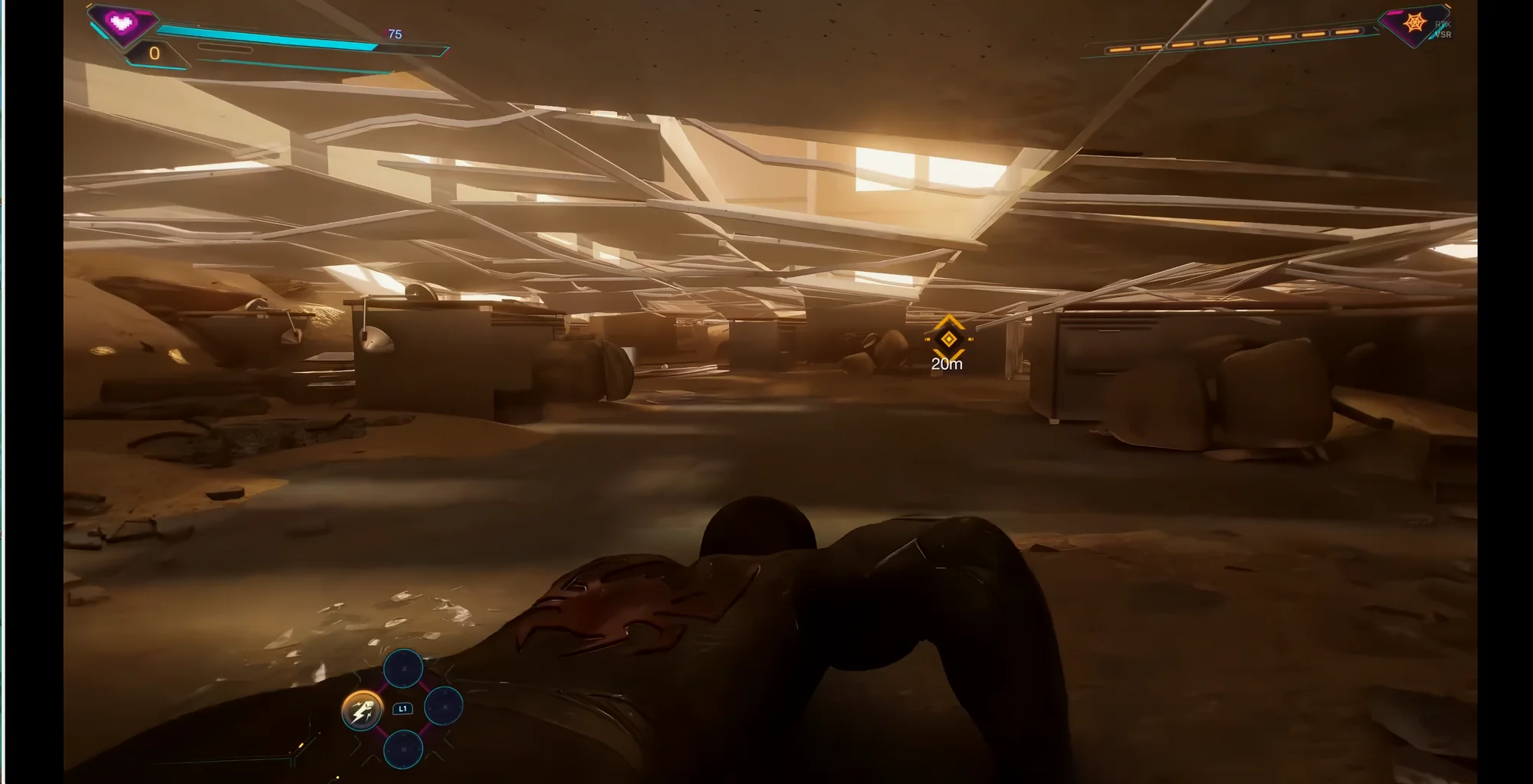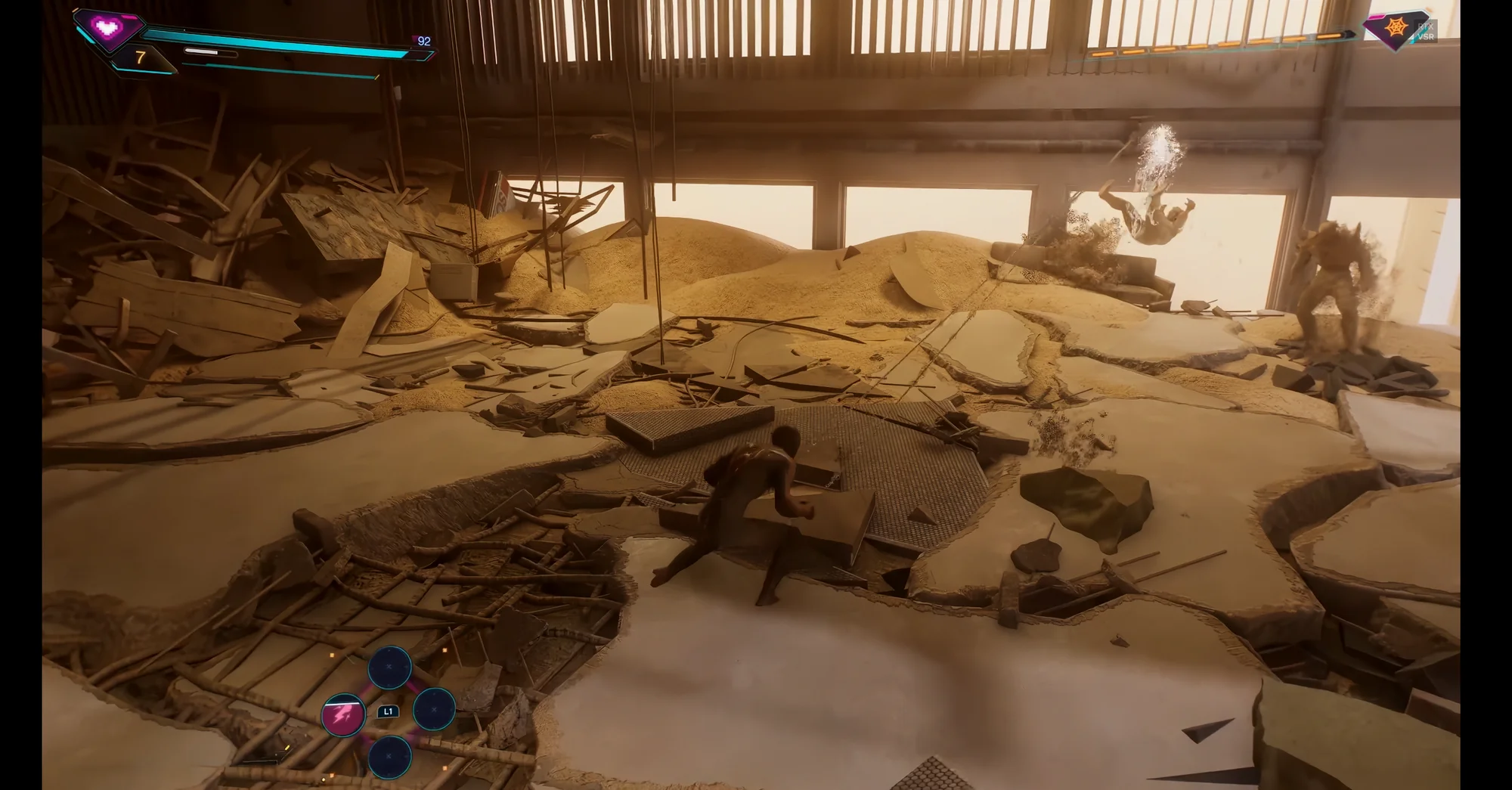 室内的边界设计也很好地分隔开了两个蜘蛛侠的战斗场景,合理化了剧情设计,也能够在必要的时候吸引玩家注意力。