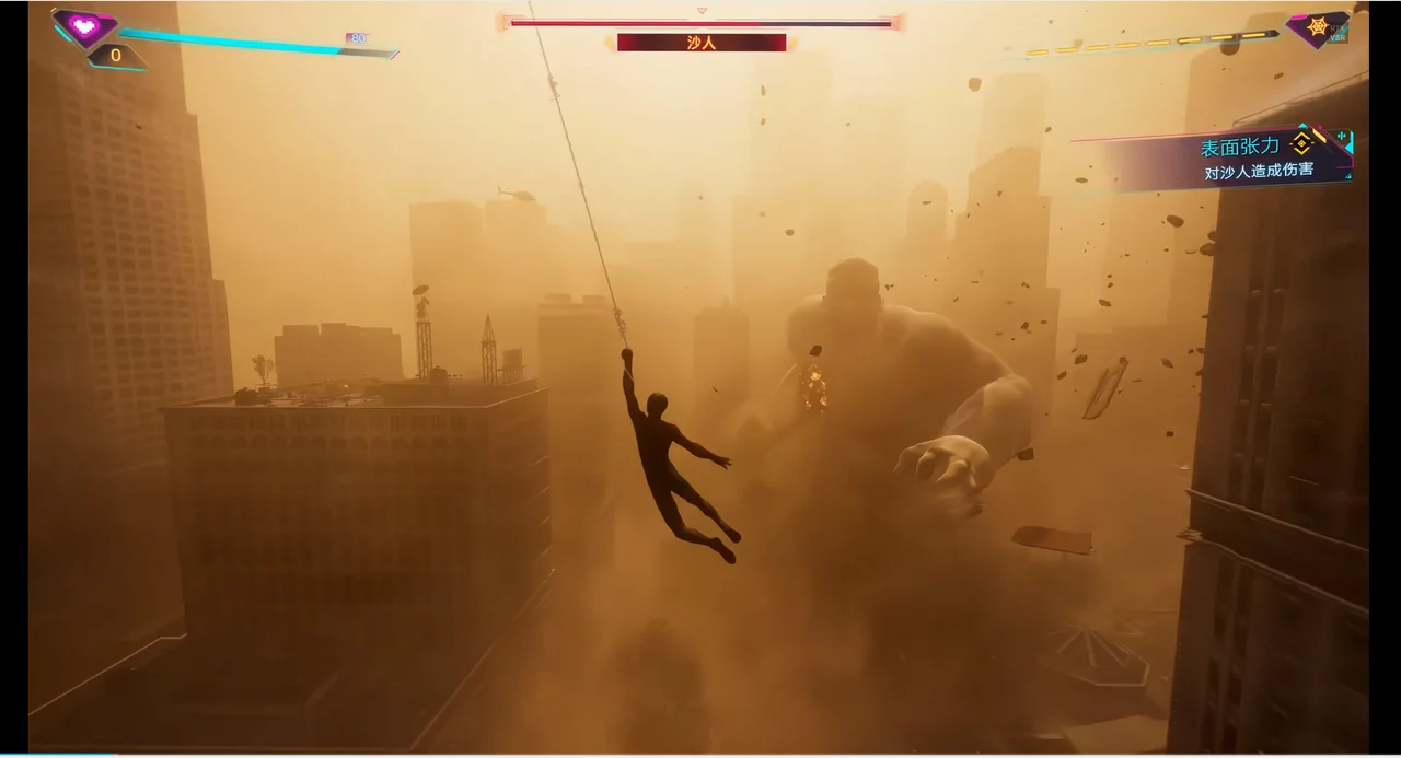 同时,随着序章关卡的推进,周边楼宇被破坏的程度也会逐步上升,直接地烘托出了战斗的激烈氛围,侧面反映出沙人Boss的强大