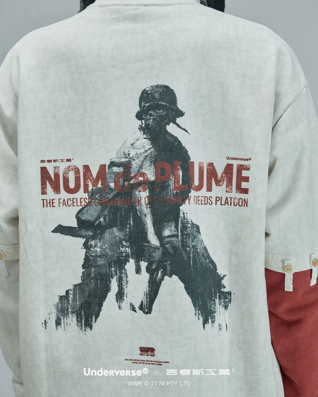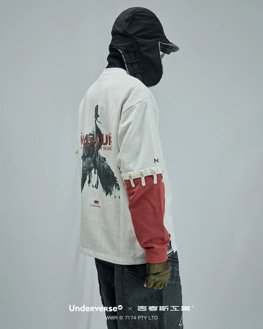 为此,我们特意在「Underverse × 吉考斯工业」联名礼盒内推出了放大款仿蜡染可拆卸长袖卫衣,令你也可在日常穿着。