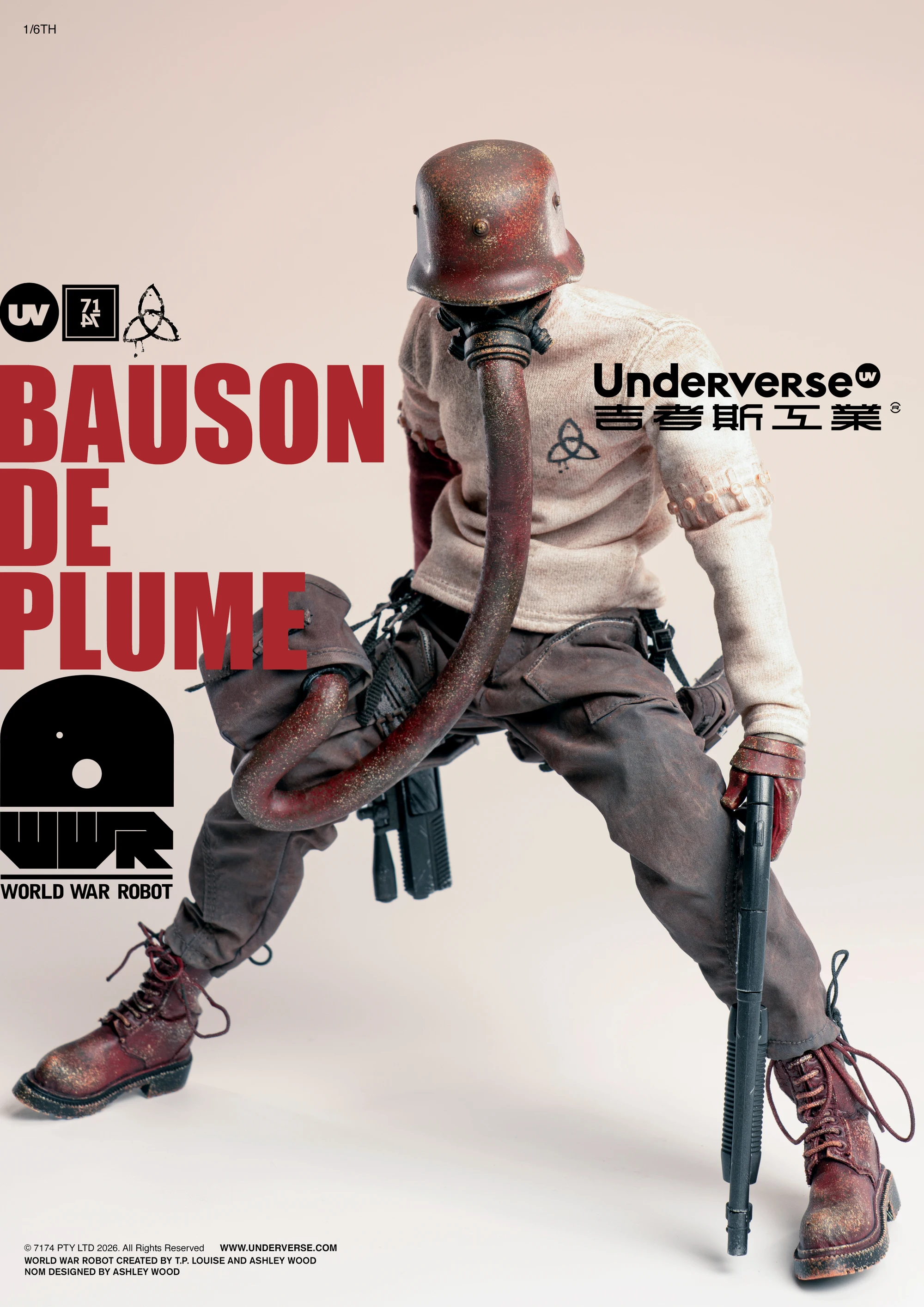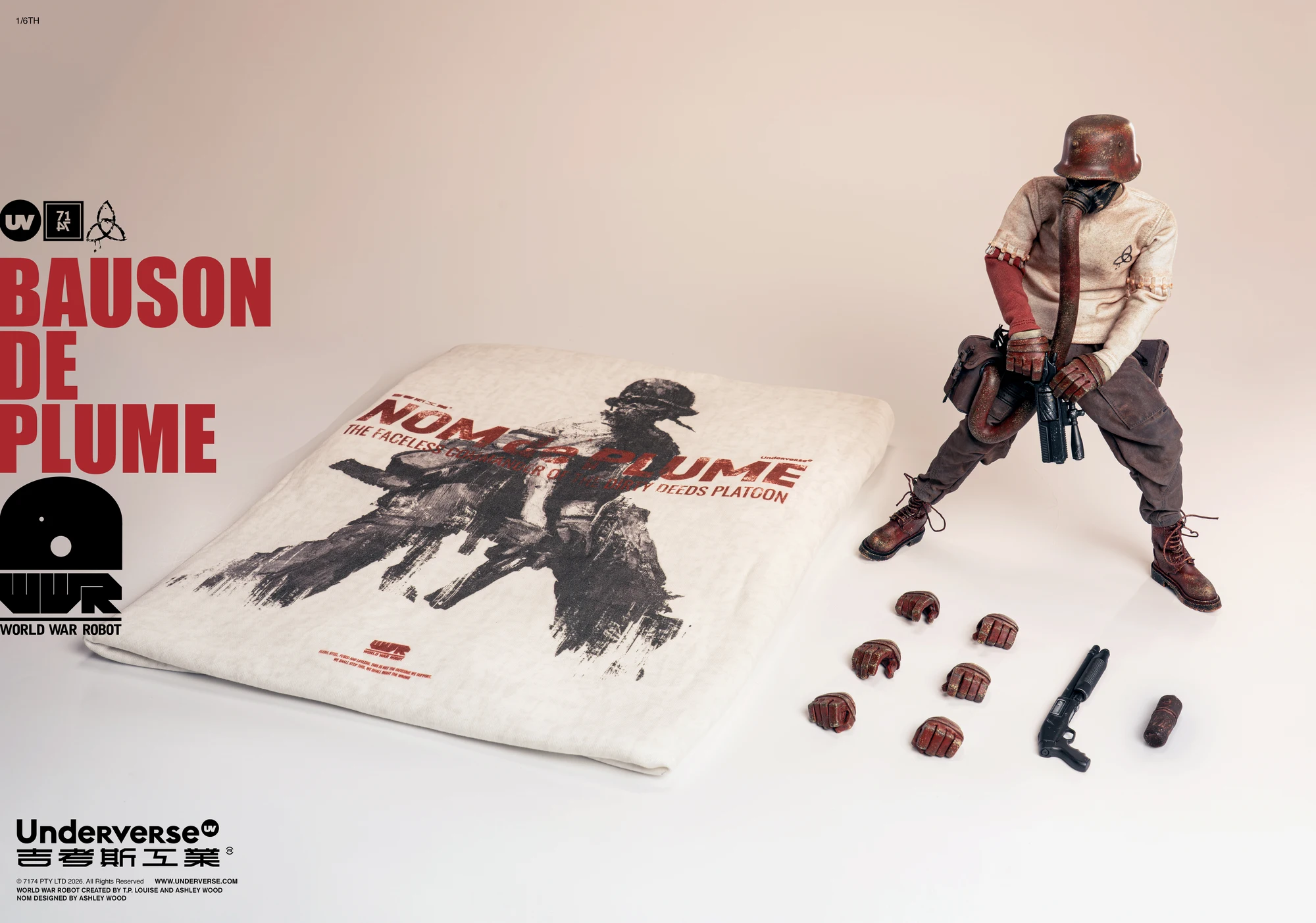 作为「Underverse × 吉考斯工业」联名企划的第三部分,也是最重磅、最具纪念意义的产品,我们将在今天正式推出「Underverse × 吉考斯工业」联名礼盒。礼盒内将包含特别款「BAUSON DE PLUME」1/6 收藏级可动人偶、可日常穿着的同款设计套头卫衣、以及一张由 Ashley Wood 绘制的纪念签名卡。目前该联名礼盒已正式开启预购,各位可以点击下方链接直达商品详情页。