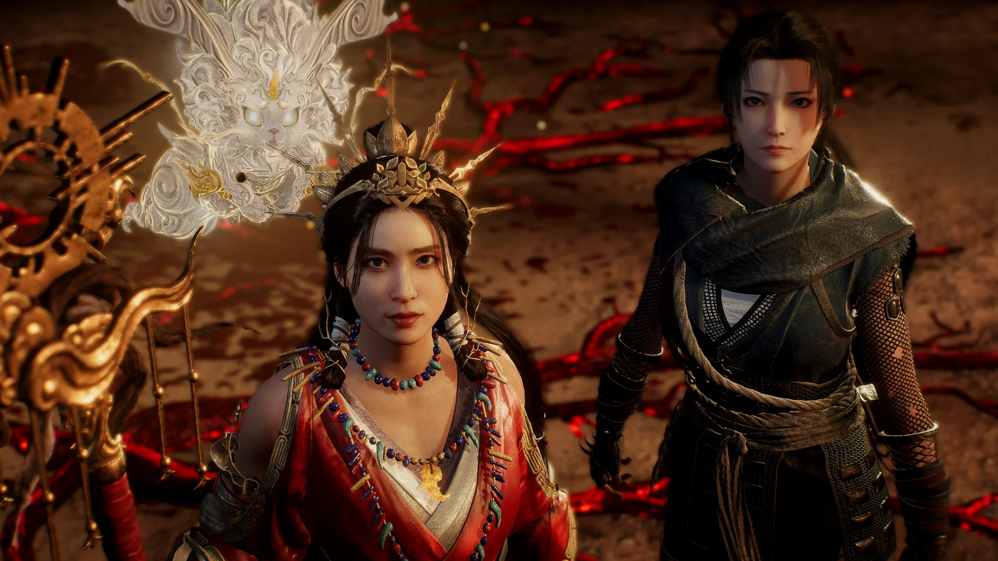 在角色细节方面,本作中的主要人类角色获得了更加精细的建模,仔细观察不同角色,可以发现皮肤上的特征都分明可见,就连面部的毛孔和皱纹都被细致地描绘。相较于6年前的《仁王2》,本作对人物眼尾和嘴角的等细小的部位的微小细节进行了进一步的调整,在满足《仁王》系列偏写实的人物风格之余,也让人物情感在角色脸上的流露出的表达更加自然。