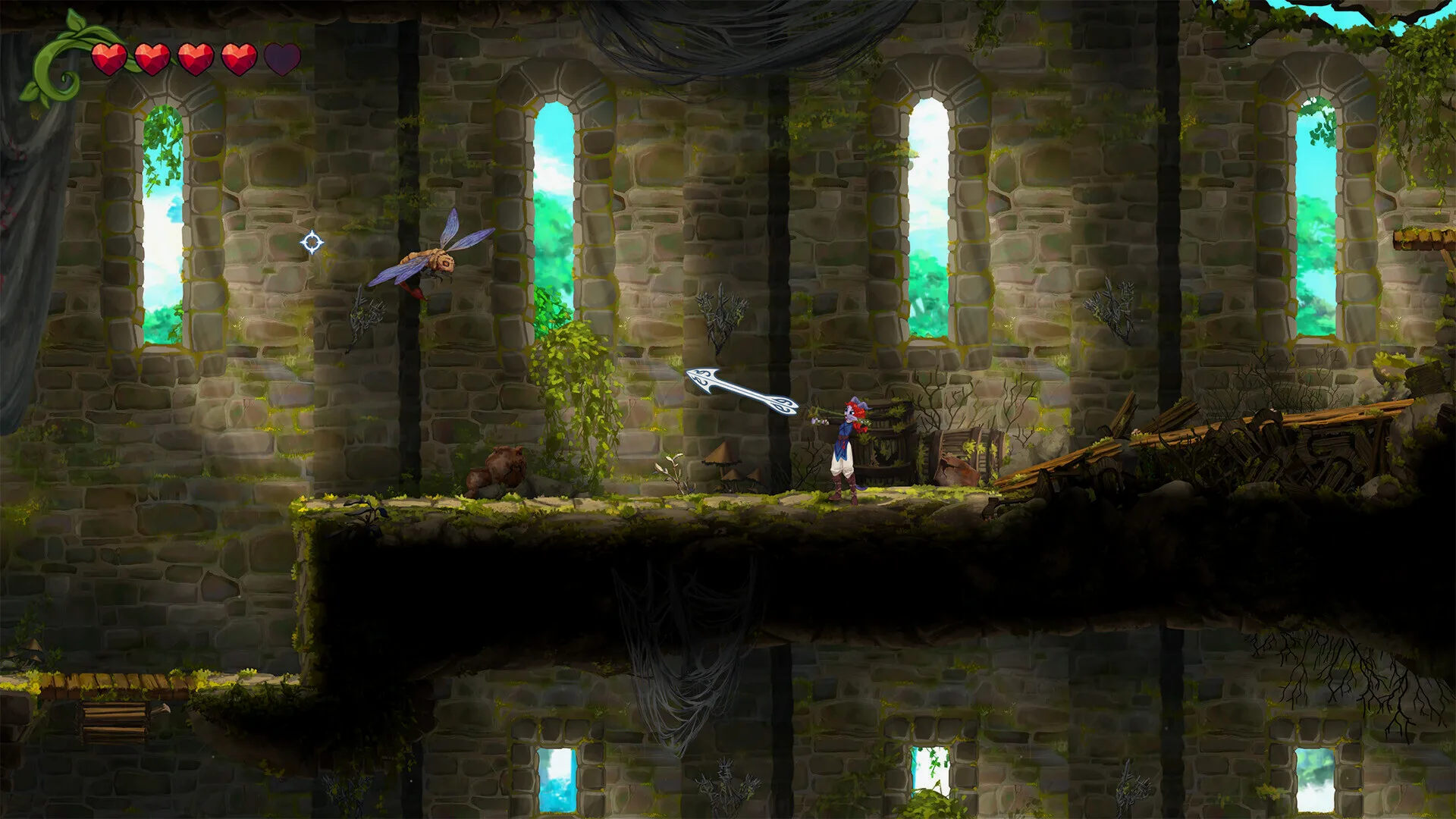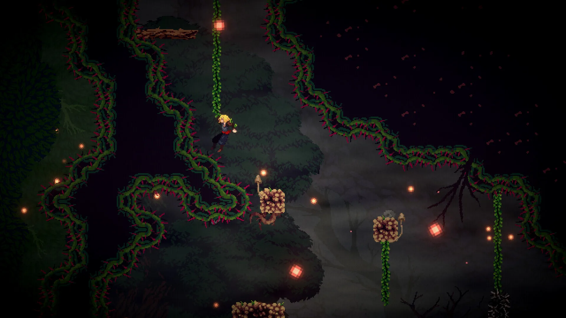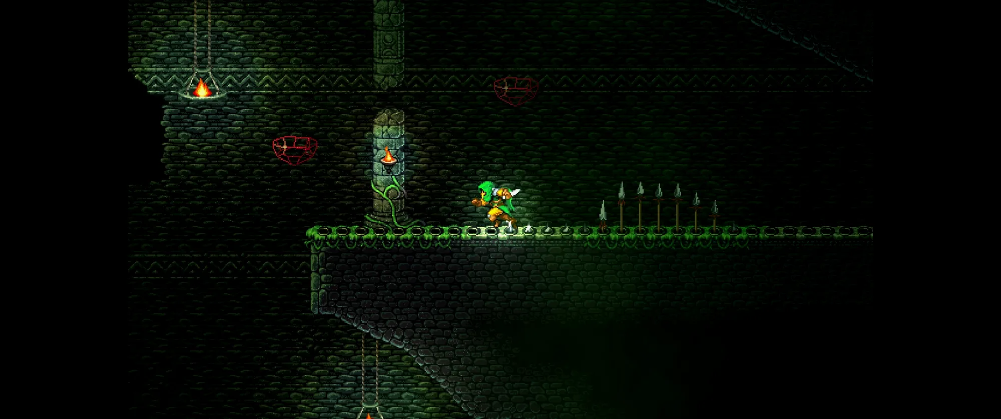 像素美术还可以,但其他方面都一般般。战斗能下劈敌人来通过一些地形,除了近战还能拉弓射箭但手柄上操作时发射方向是反的。移动性能除了常规蹦跳还能抓住绳索来进行摆荡,但是关卡有相对完整的多分支探索但是连地图都没有。