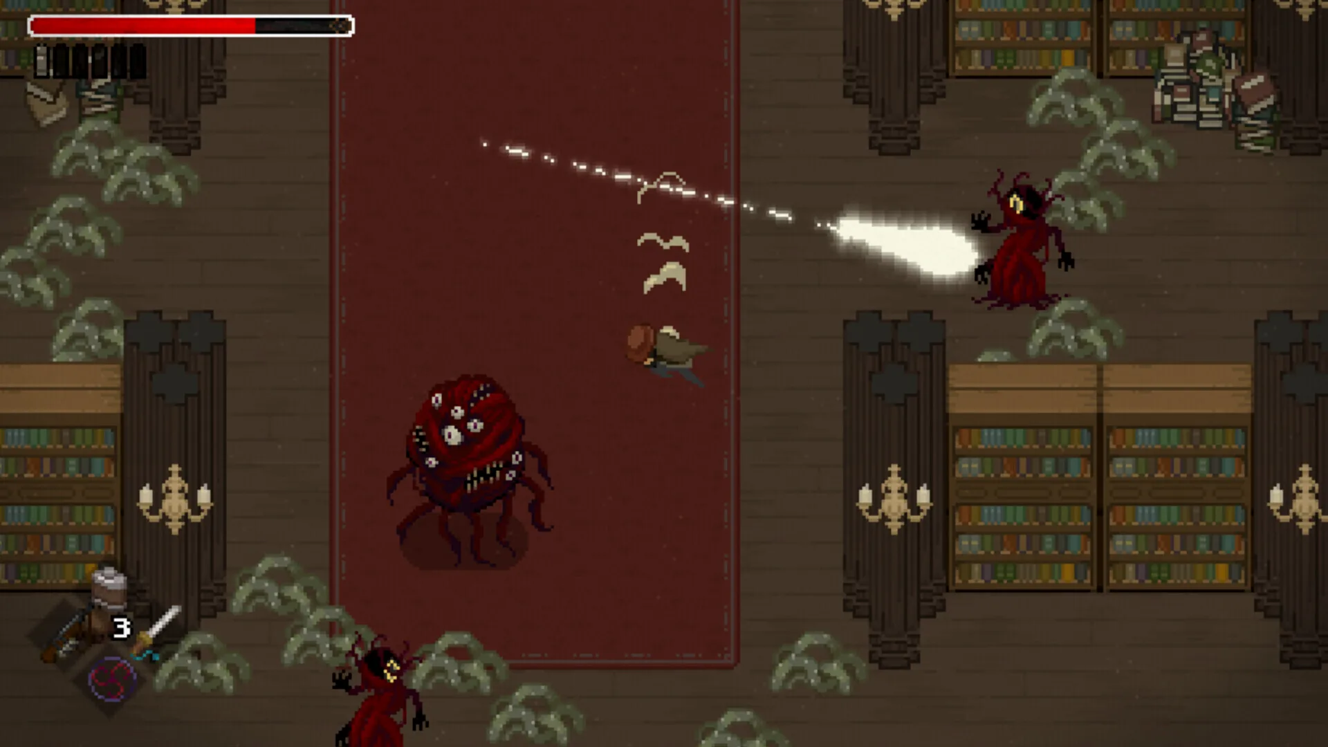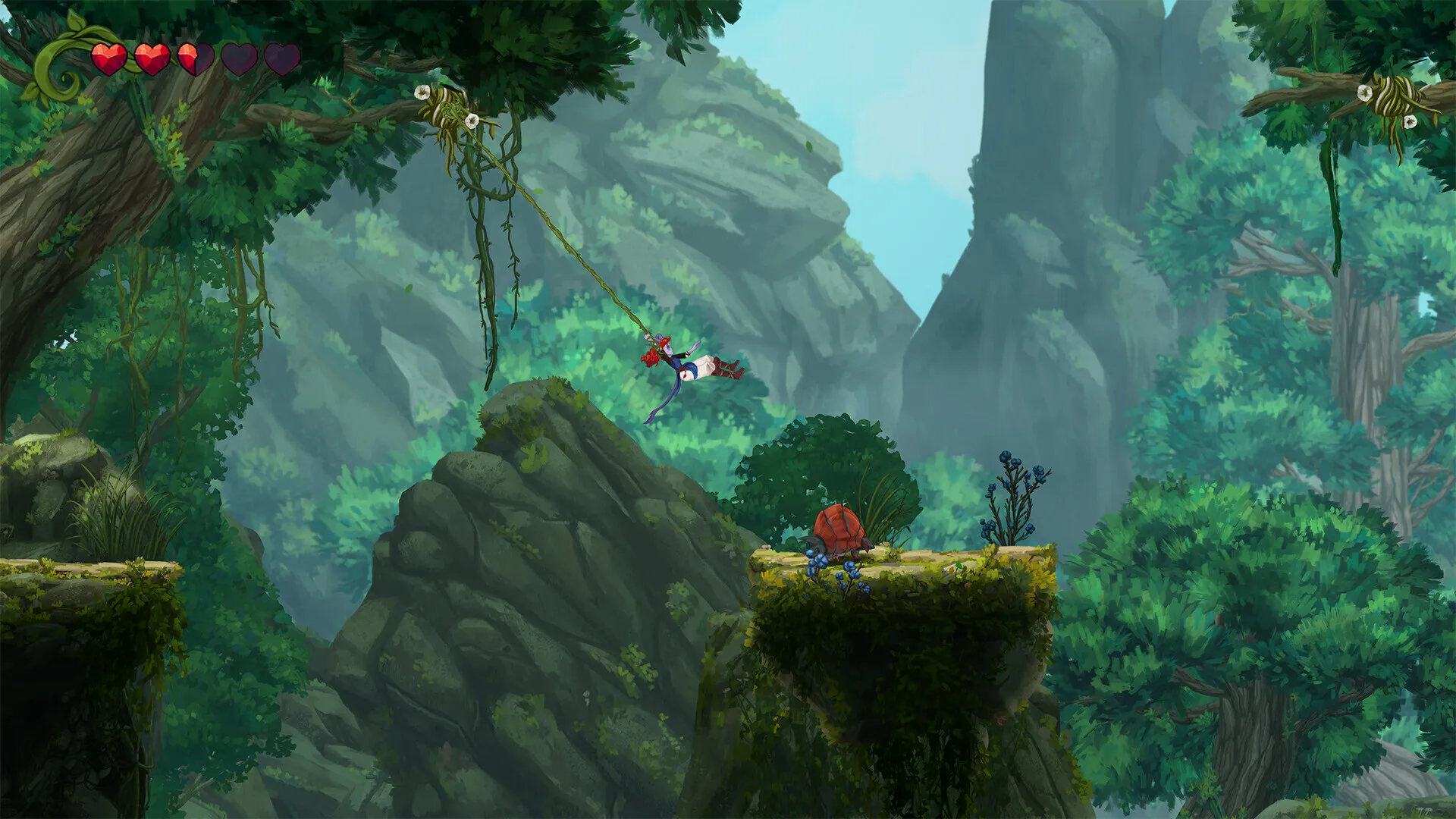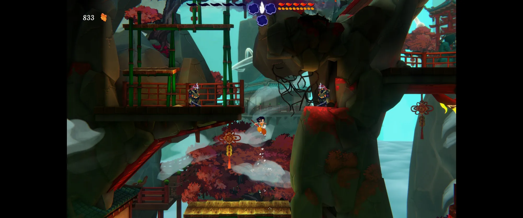 像素美术还可以,但其他方面都一般般。战斗能下劈敌人来通过一些地形,除了近战还能拉弓射箭但手柄上操作时发射方向是反的。移动性能除了常规蹦跳还能抓住绳索来进行摆荡,但是关卡有相对完整的多分支探索但是连地图都没有。