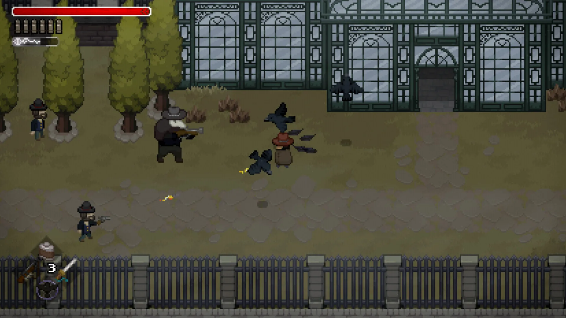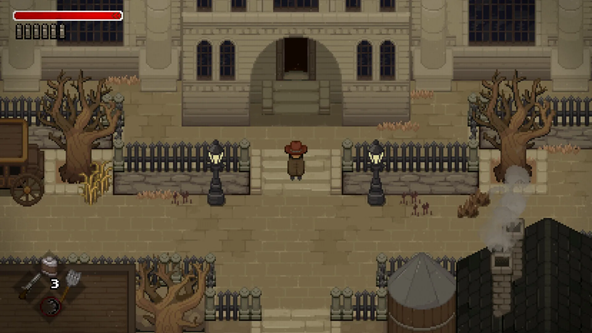 画面灰突突的西部世界观类塞(可能西部就是要这个味吧)。主角作为一个西部牛仔,既能用近战武器又能用枪械射击。还能闪避来调整和敌人的位置关系,随着剧情的推进面对的敌人从普通人类逐渐变成癫狂的非人怪物(这么一说仿佛有点像平面版的血源?)