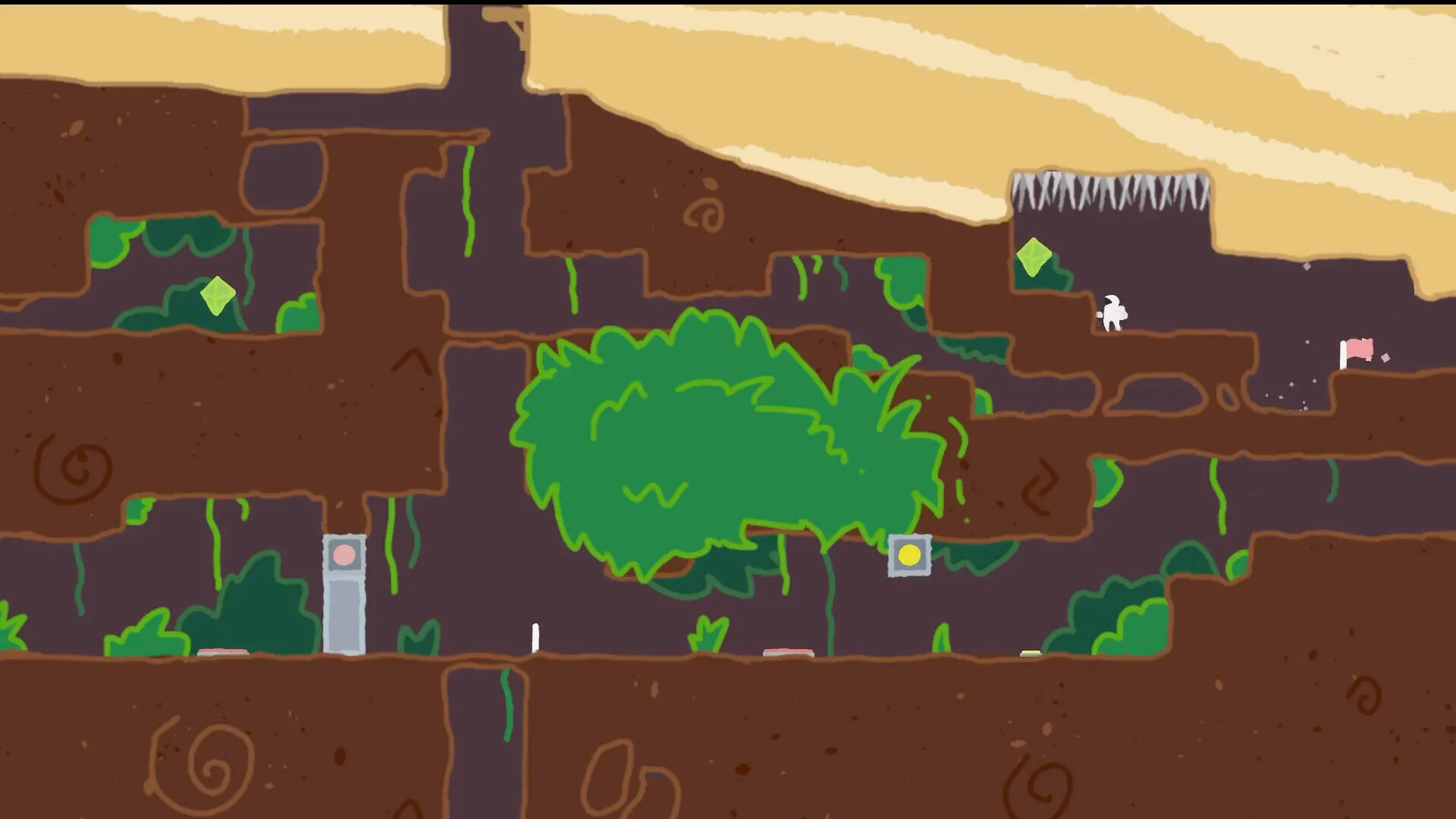 手感还算不错的作品,甚至可以说主角的性能有点过强了。初期就有二段跳并且能跳出大半屏那么高,缓降和游泳的能力也都有。这就让玩起来……比较缺乏成长空间。探索体验方面也因为是临时关卡导致几乎没什么好探的。