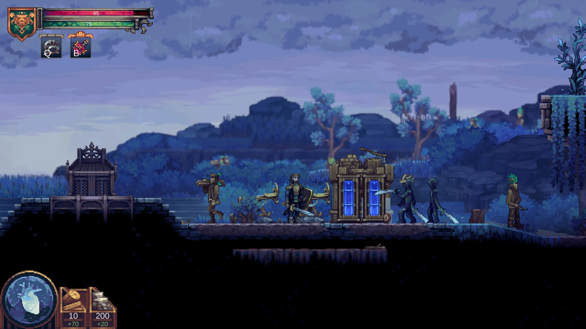 像素美术做得不错,但角色本身的操作实在是太难受了,起跳腿都不打弯的,不知道是不是为了强调塔防的效果而刻意把主角性能削成了跳尸。总之虽然有特色,但战斗和探索体验都比较拉胯,可惜了这美术。