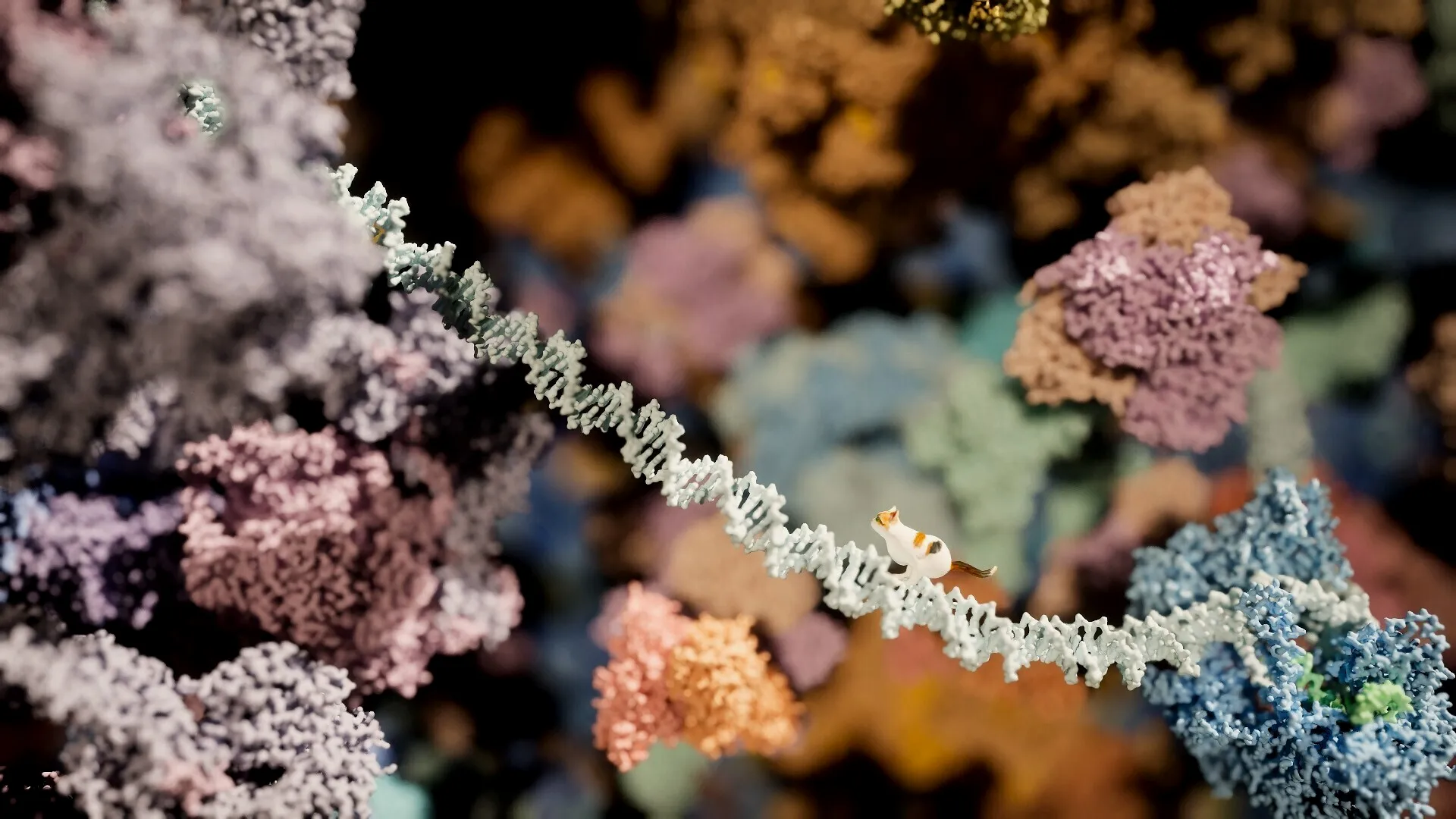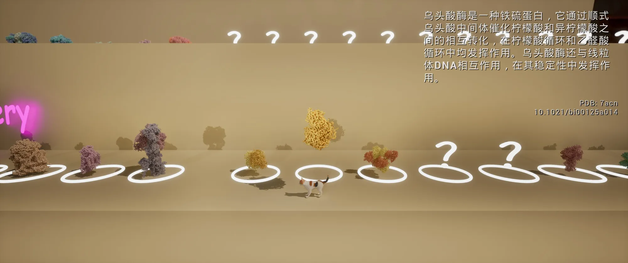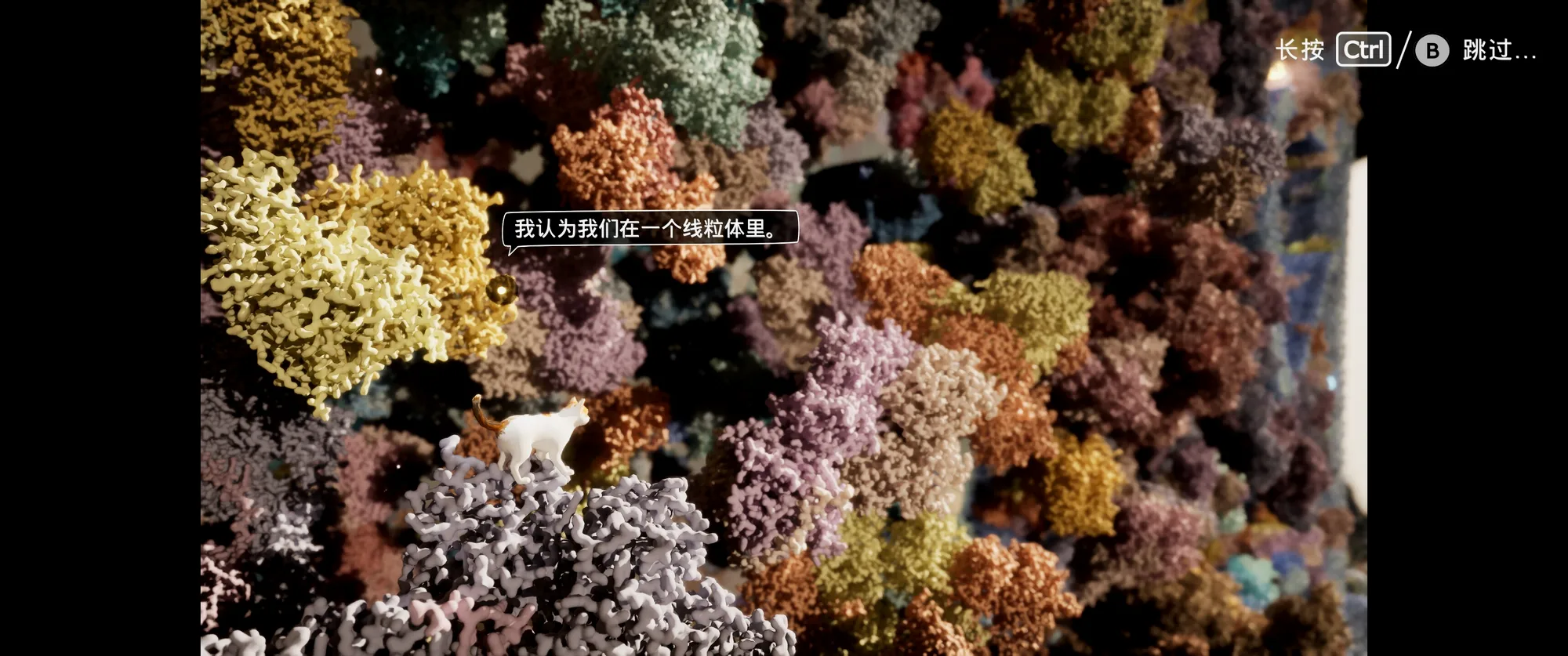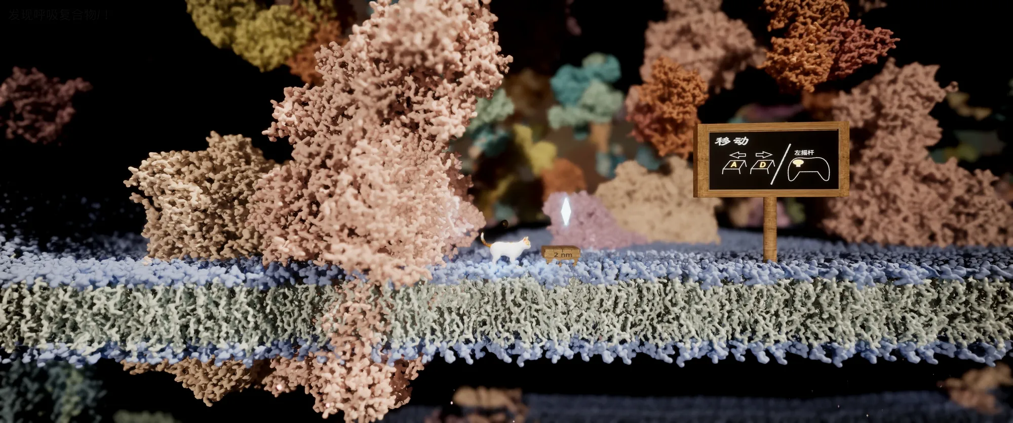 我怎么都没想到能玩到这么个操作小猫在细胞内的微环境探索的游戏。你能直面线粒体ATP合酶或乌头酸酶,甚至能沿着脱氧核糖核酸的长链爬取高处。