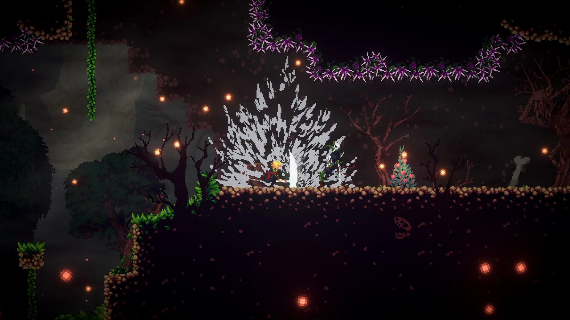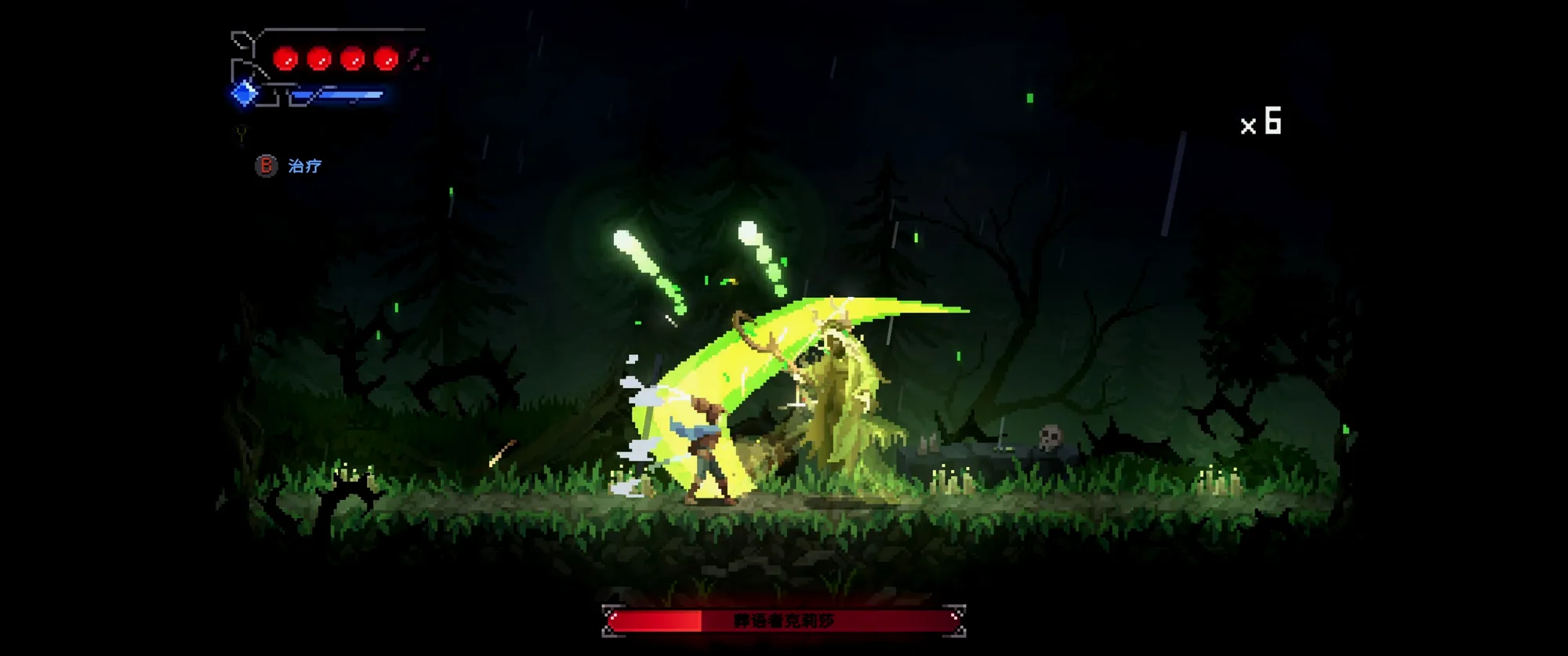 非常偏科的作品,像素美术漂亮,动作流畅,打击手感非常好,战斗体验拔群。但是demo部分几乎没有探索部分。基本上就是一条路从头打到尾,解锁了个扒墙跳就没别的了。