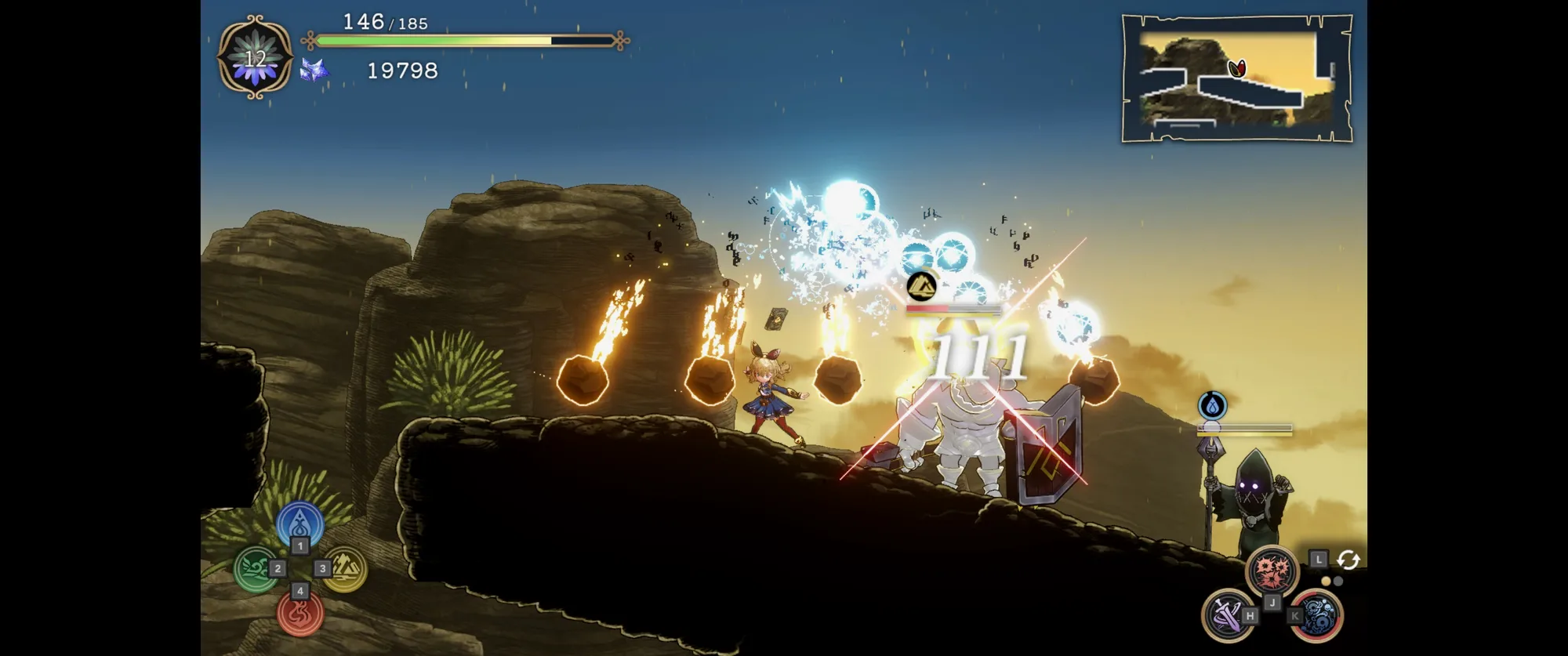 没有蓝耗!只有cd,而且大部分招数cd极短基本上可以连发,用法术击破敌人防御时还会造成范围爆炸效果,经常能连锁消灭敌人,爽是确实挺爽的,就是地图探索上没什么好东西,探起来缺乏动力。每个区域都是探完后给你“奖励”一个敌人连战(?)打完也没什么好东西。反复多次也有点枯燥。不过也许后期成长系统能展开,那战斗体验上还能更丰富一些。