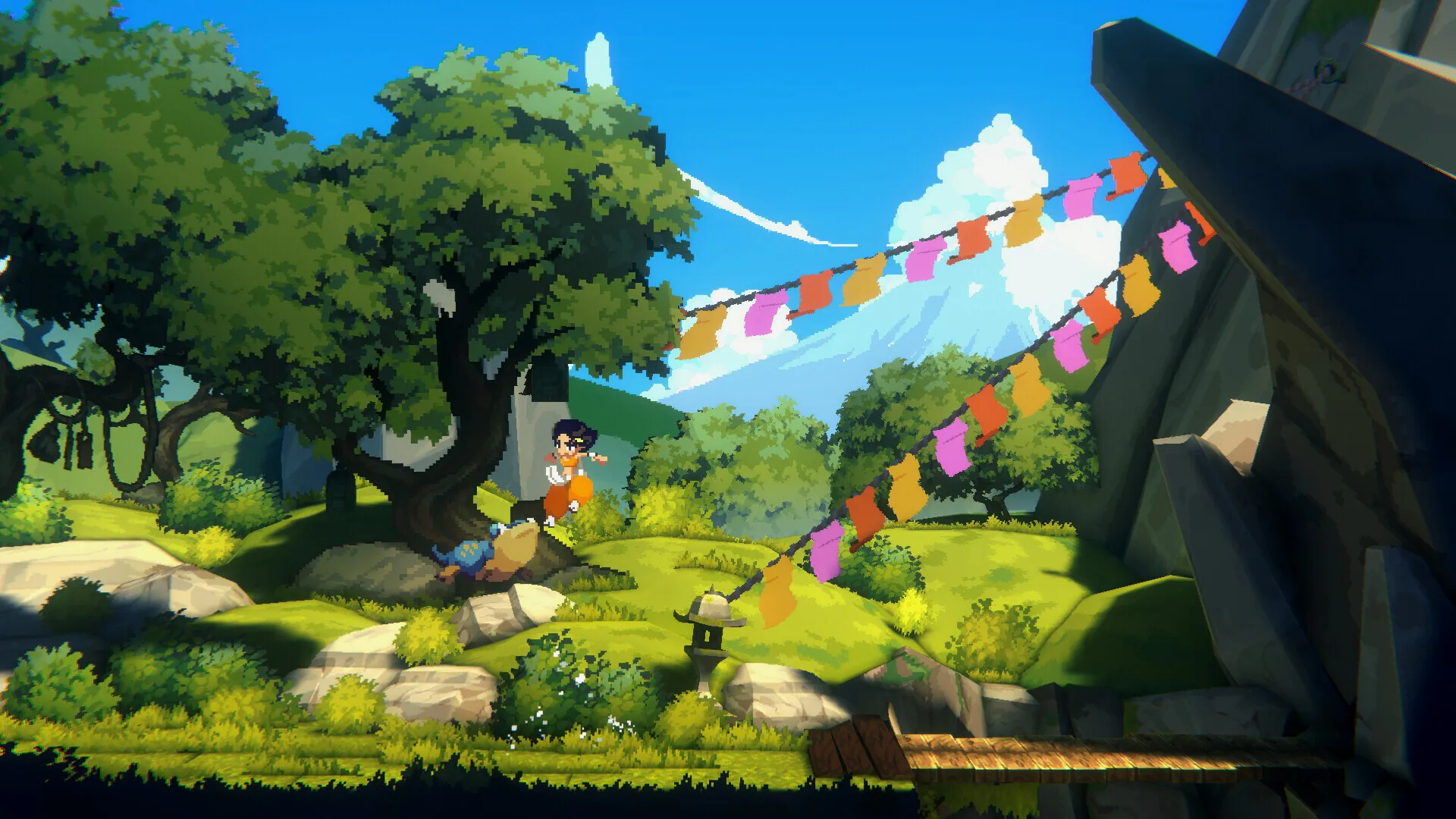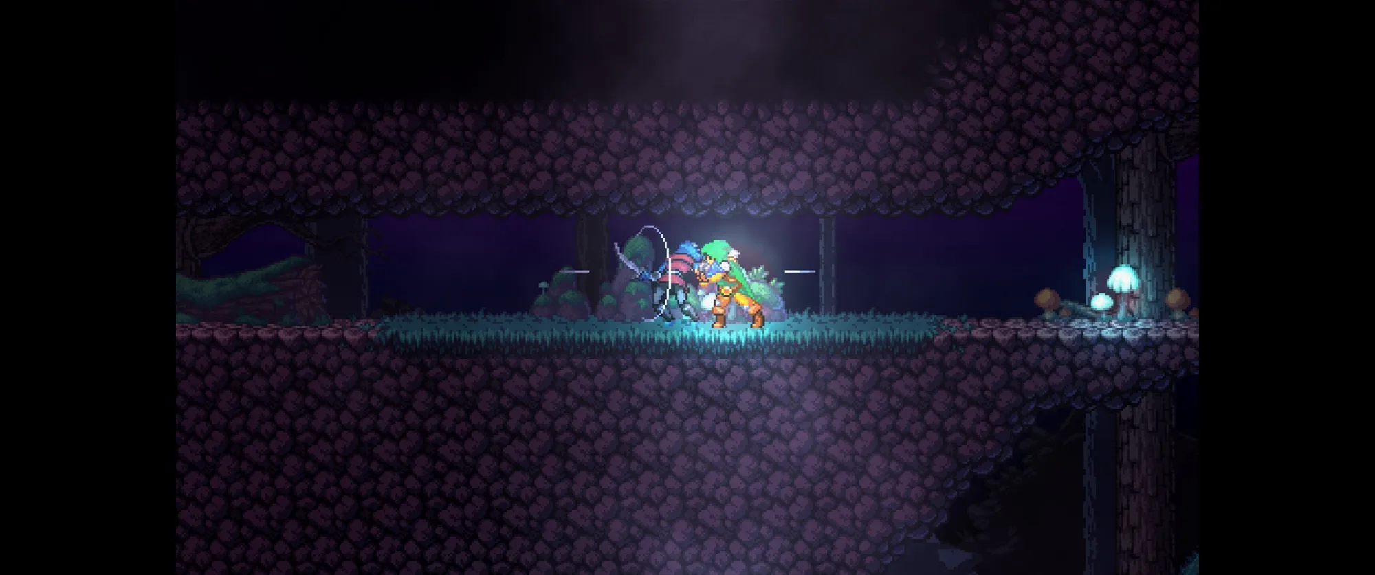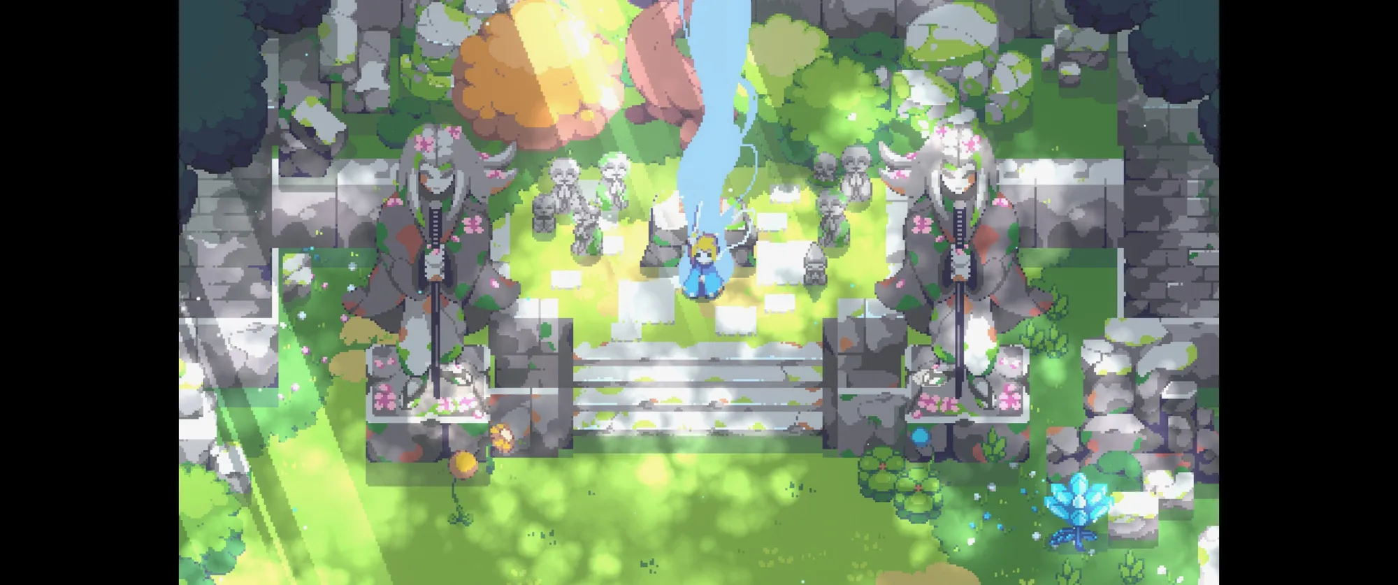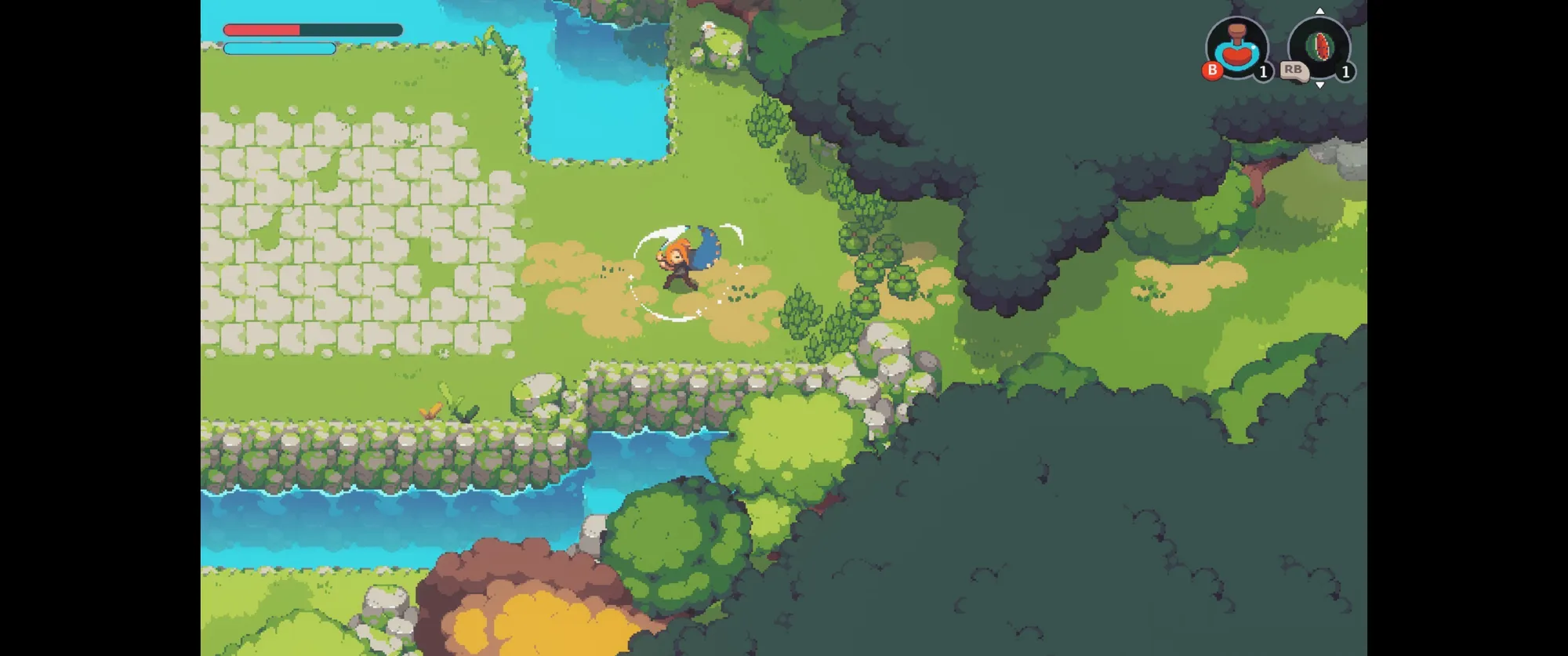 像素美术非常漂亮的类塞,日式场景很有通话氛围。非常典型的类塞设计是主角一开始只有一把木棍,因此无法破坏灌木丛,直到拿到剑后才能破坏灌木前进。战斗体验算是非常基础吧,冲刺,闪避,格挡。没看到什么新颖的花样。