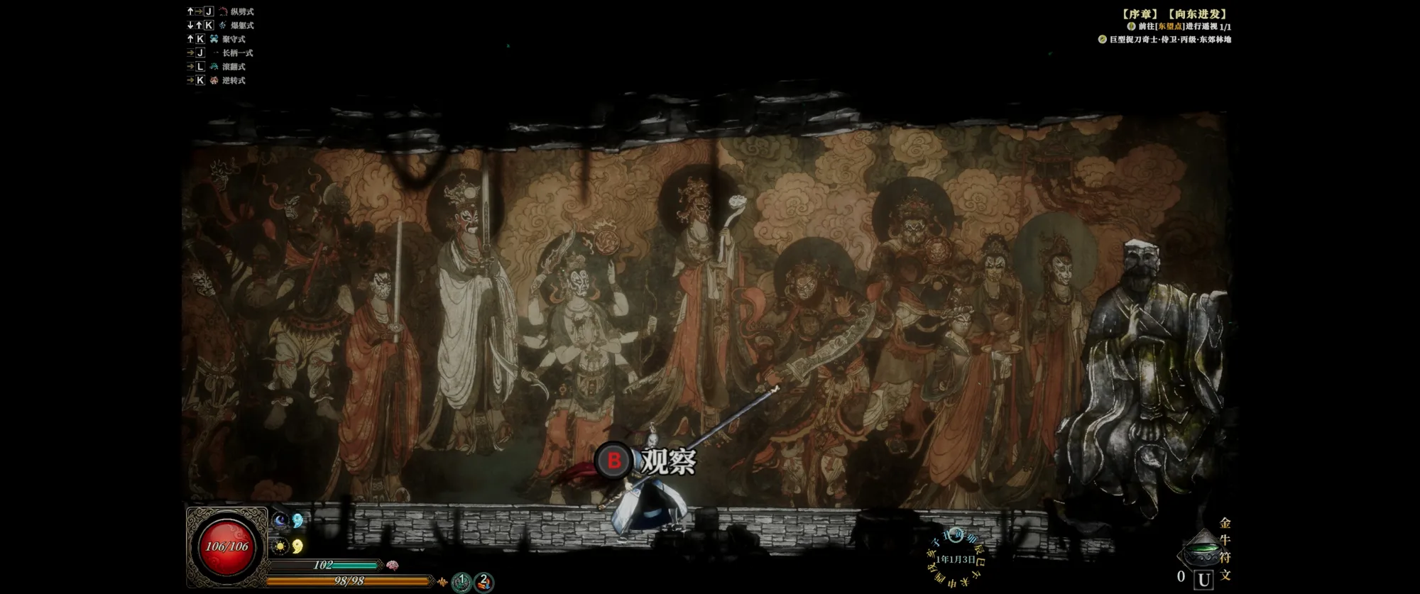 美术非常有风格,壁画,石像,都做得像模像样,当贴在一起特别不搭,有种《神之天平》那种剪贴画的感觉,再加上大部分场景都黑乎乎的,以及制作组可能想凸显古朴的质感,就感觉看起来……挺脏挺乱的