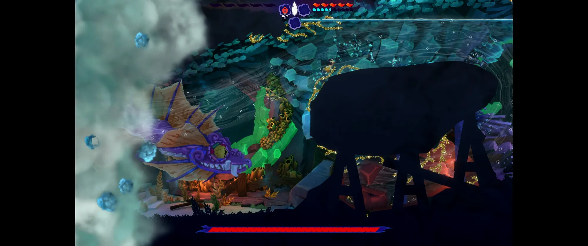 融合了蔚蓝的精准平台跳跃操作的类银,但依然能战斗,只不过战斗没有任何奖励,击杀的敌人没有什么掉落,比起消灭来说更应该考虑拿来垫脚。