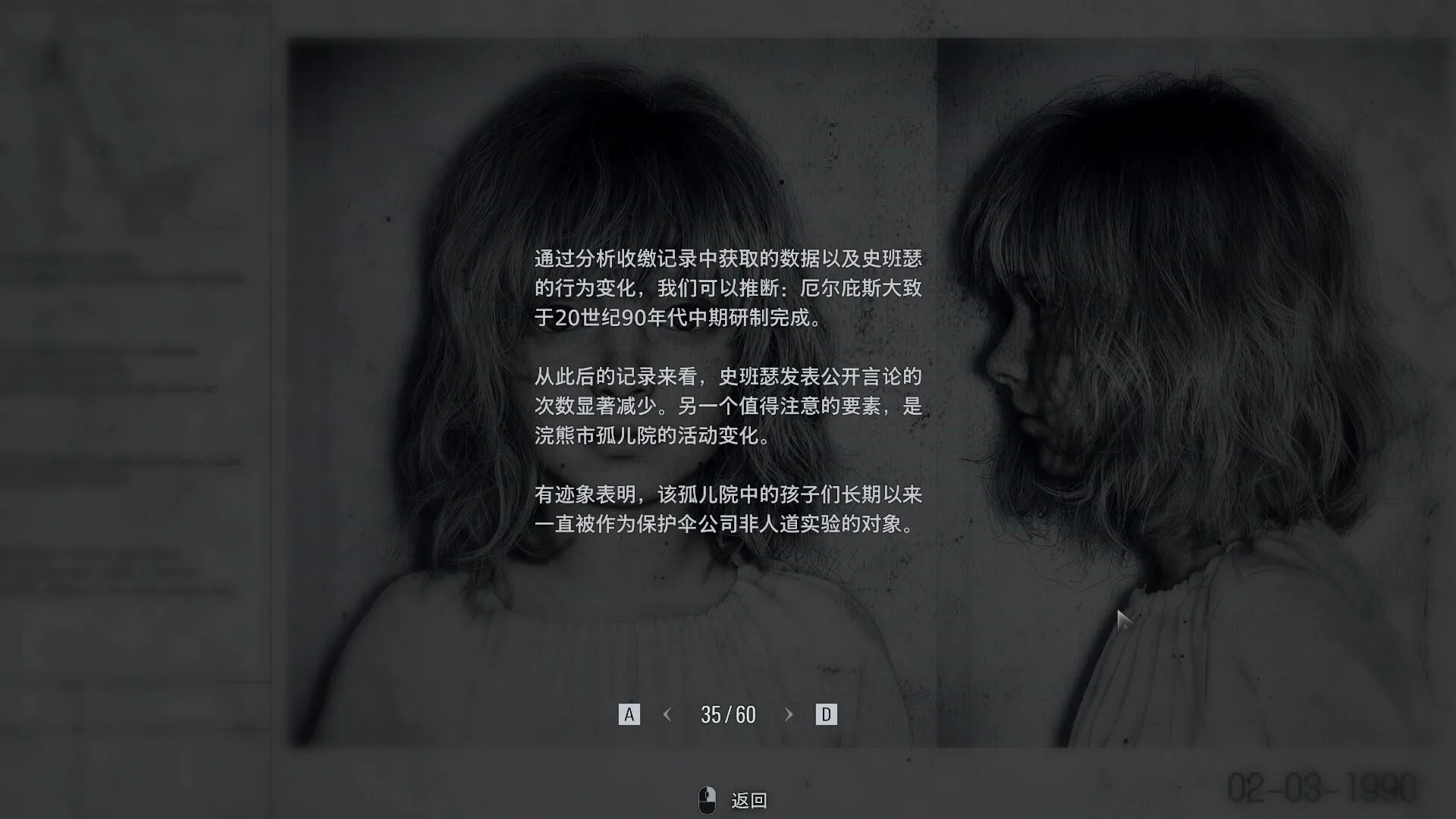 RE2中肯多并未死去,RE3也并未出现巴瑞,RE4中ADA改变了立场,RE7新加入霉菌谱系病毒,RE8为斯宾塞加了一个米兰达老师。而到了RE9这一作,通关之后的格蕾丝报告书,才是本作最为核心的东西。