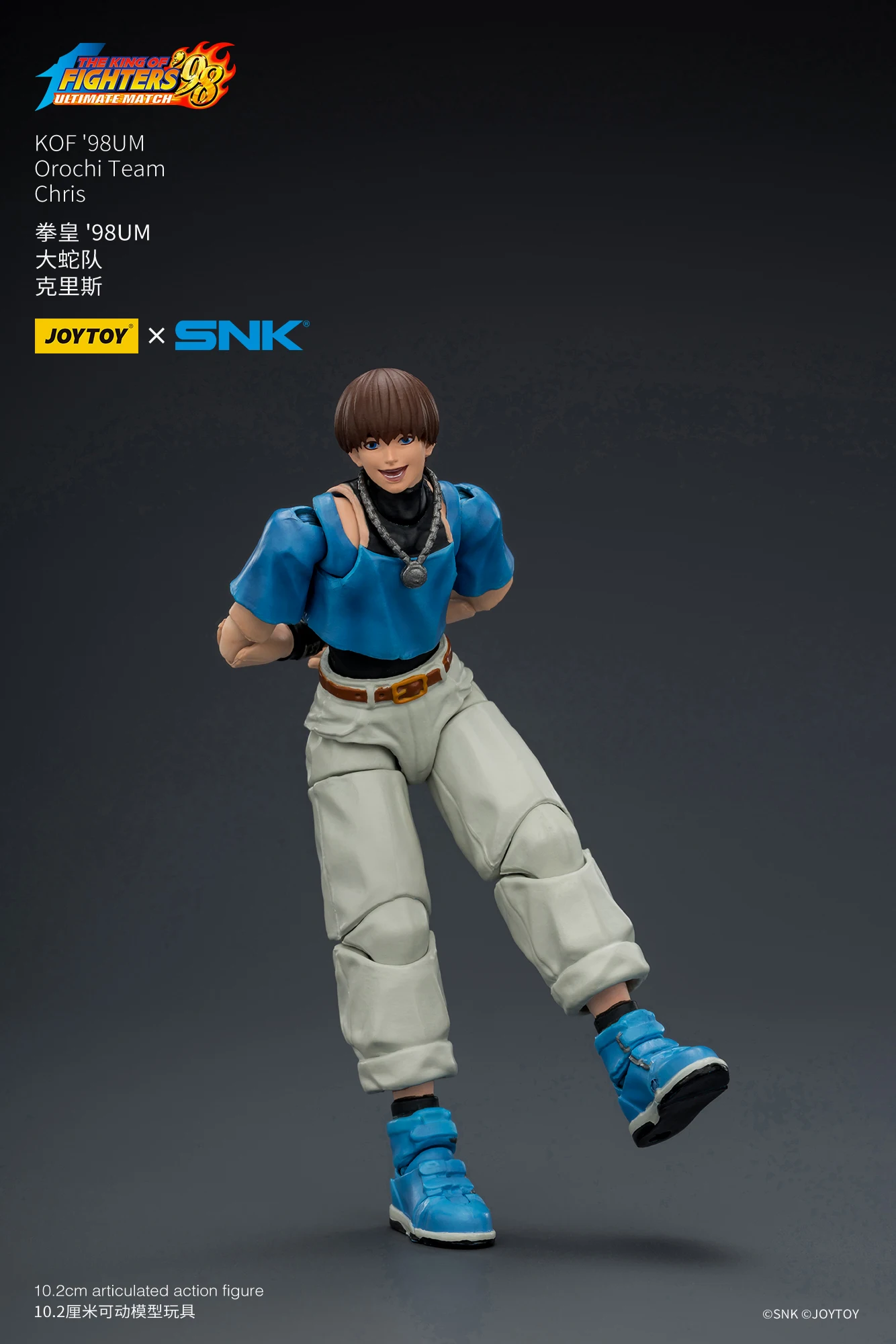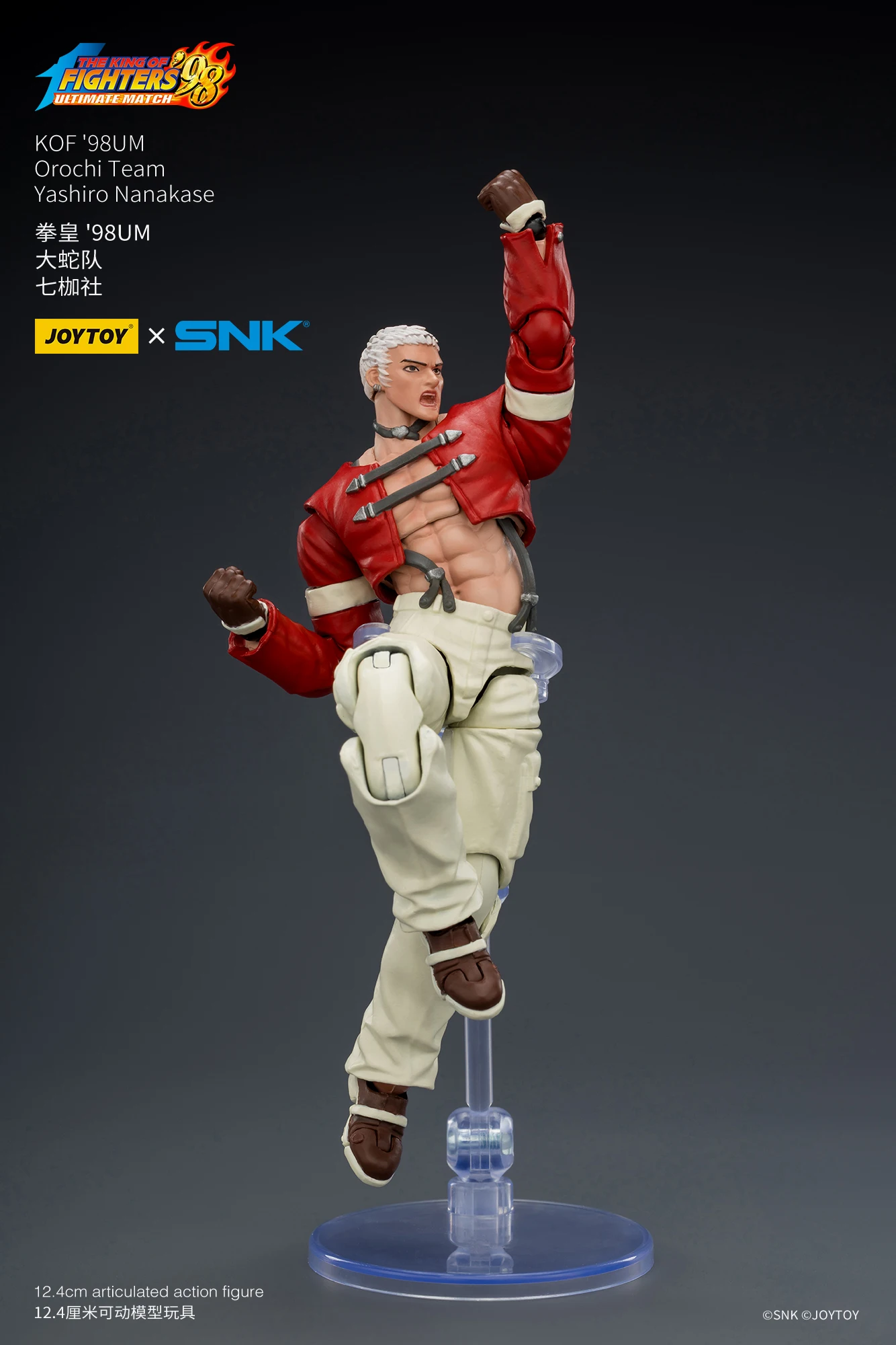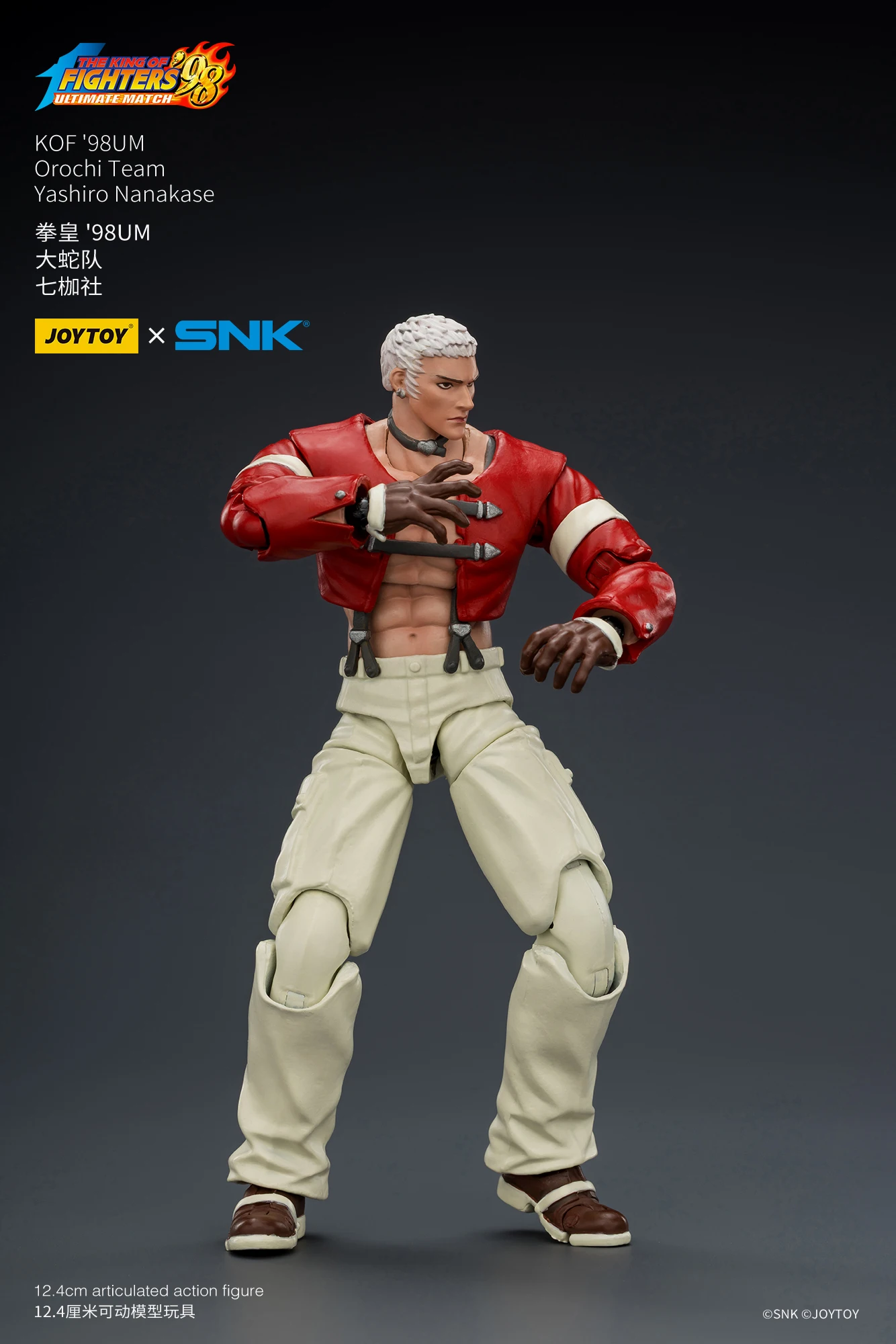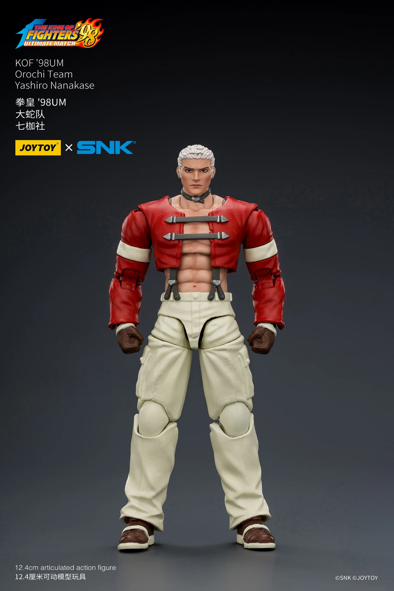 JOYTOY官方今日不久前正式公布了全新正版IP授权商品系列,是来自于SNK经典格斗游戏《KOF98UM》的第五弹商品,是大蛇队的三位角色,他们分别是七枷社、夏尔美、与克里斯。