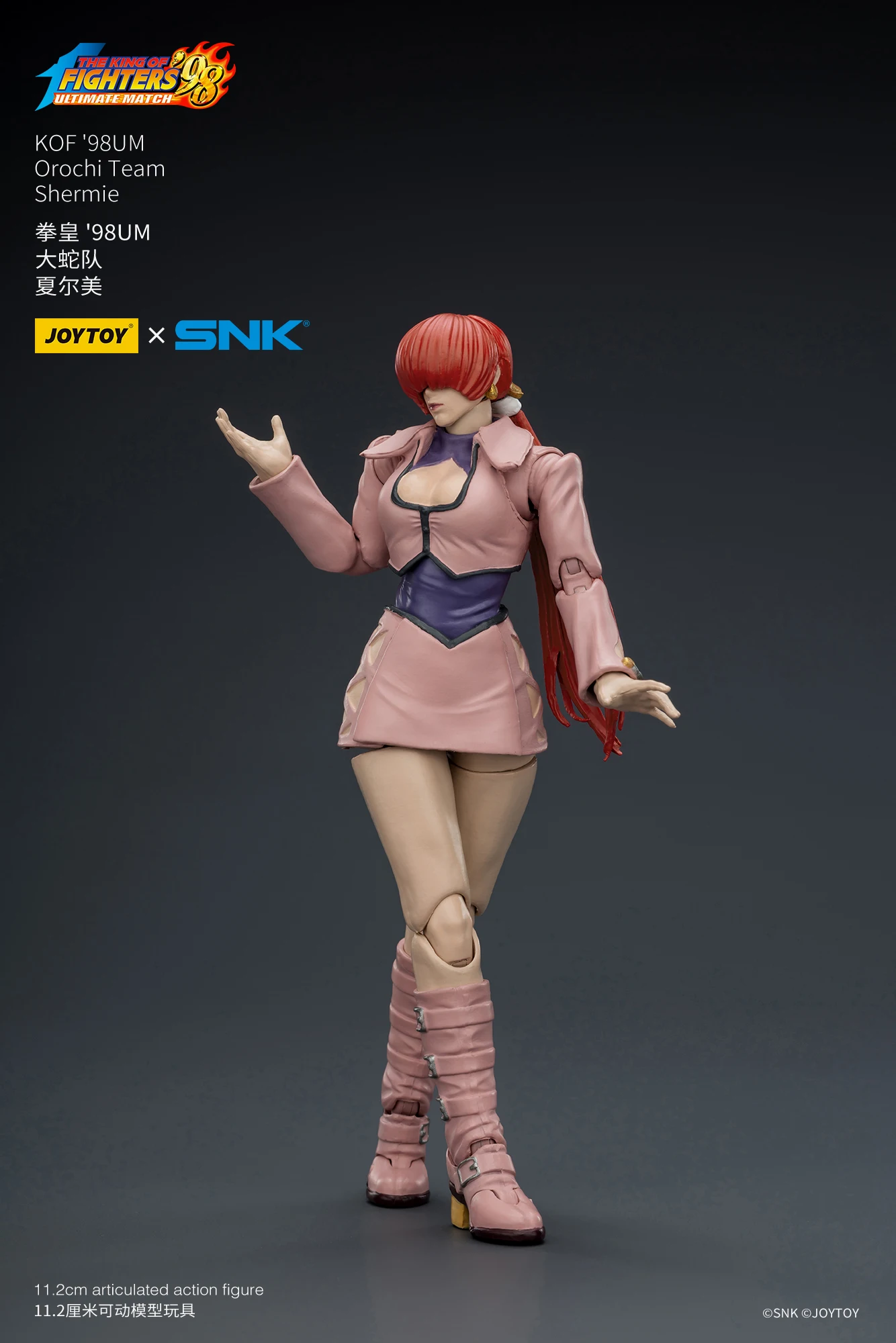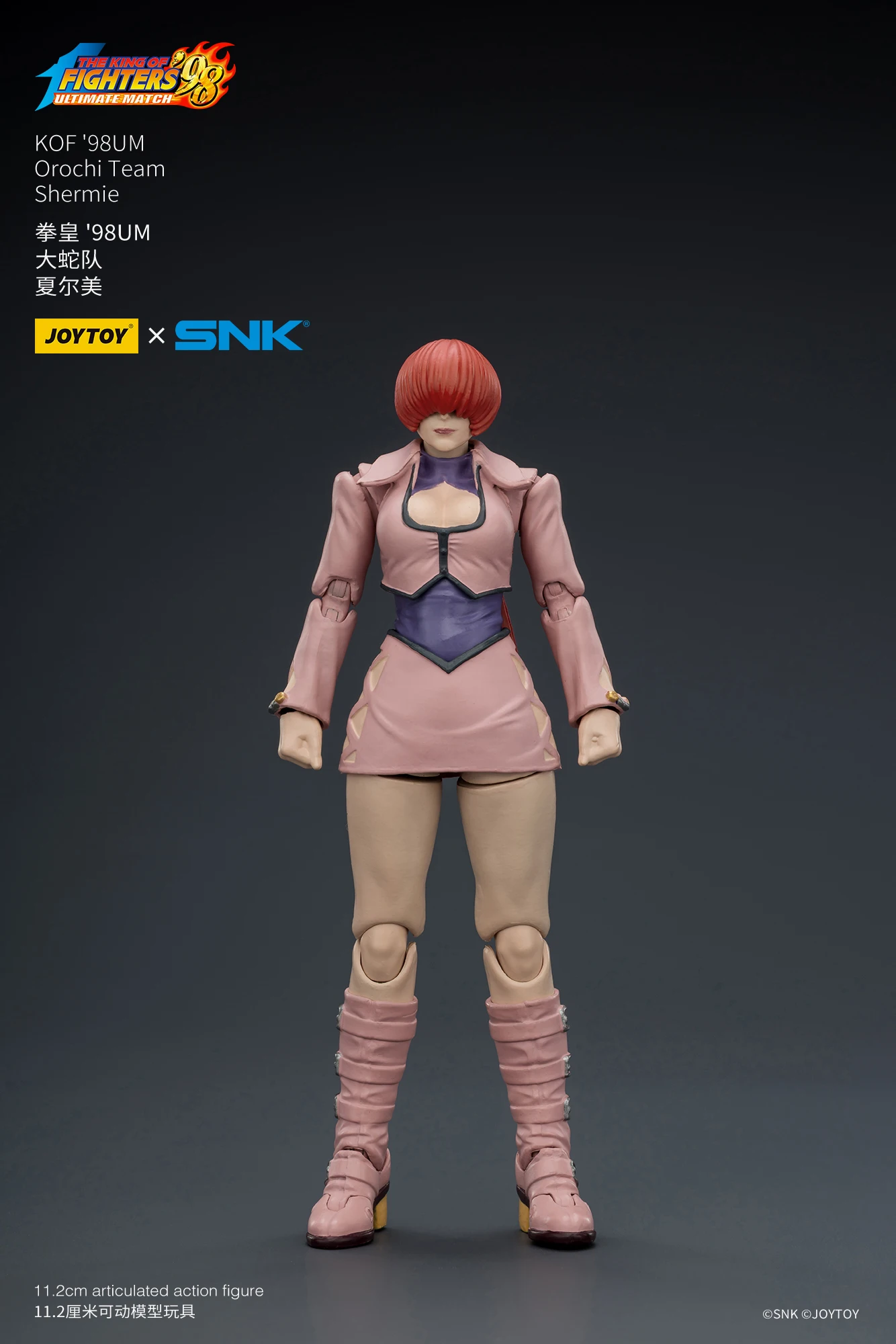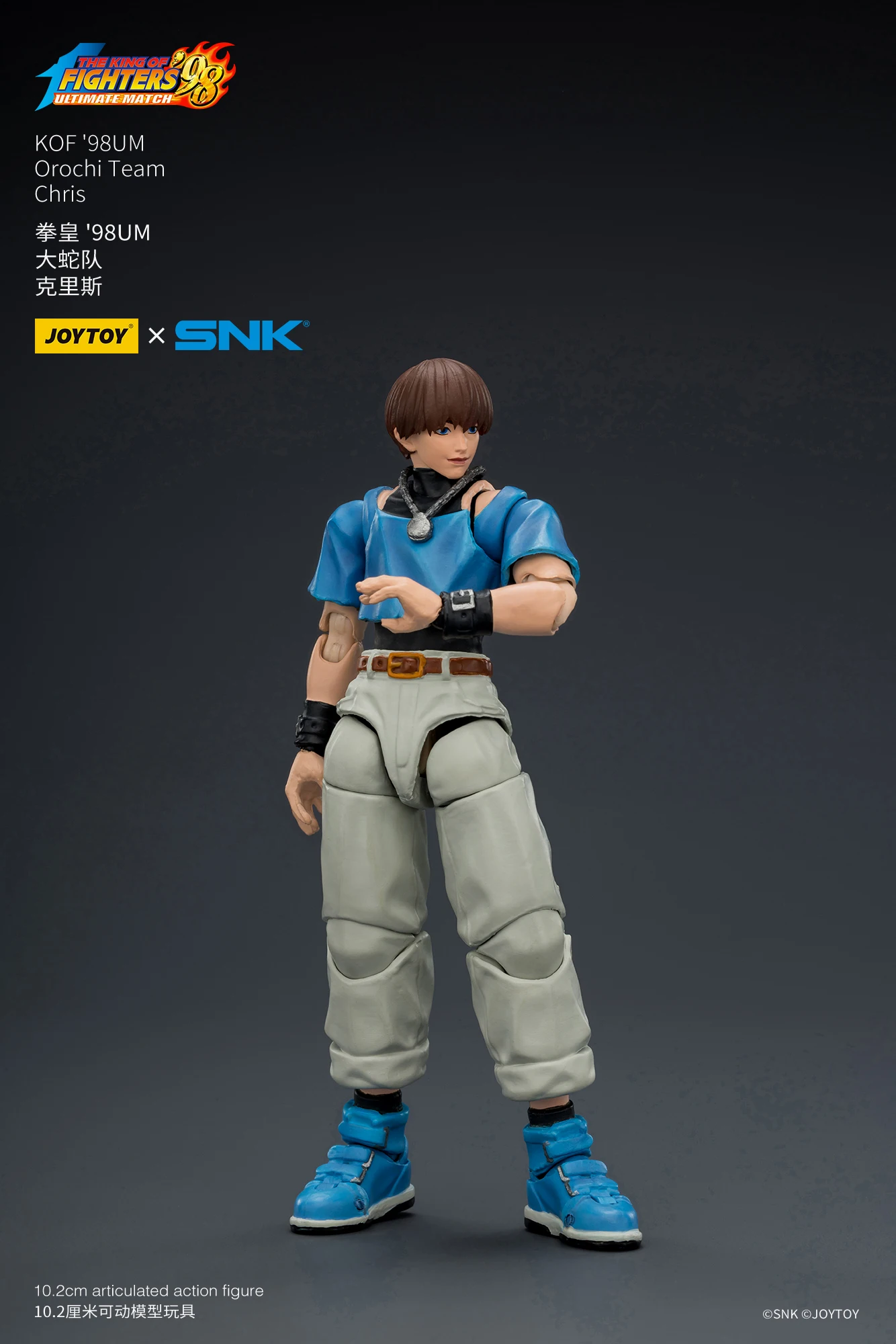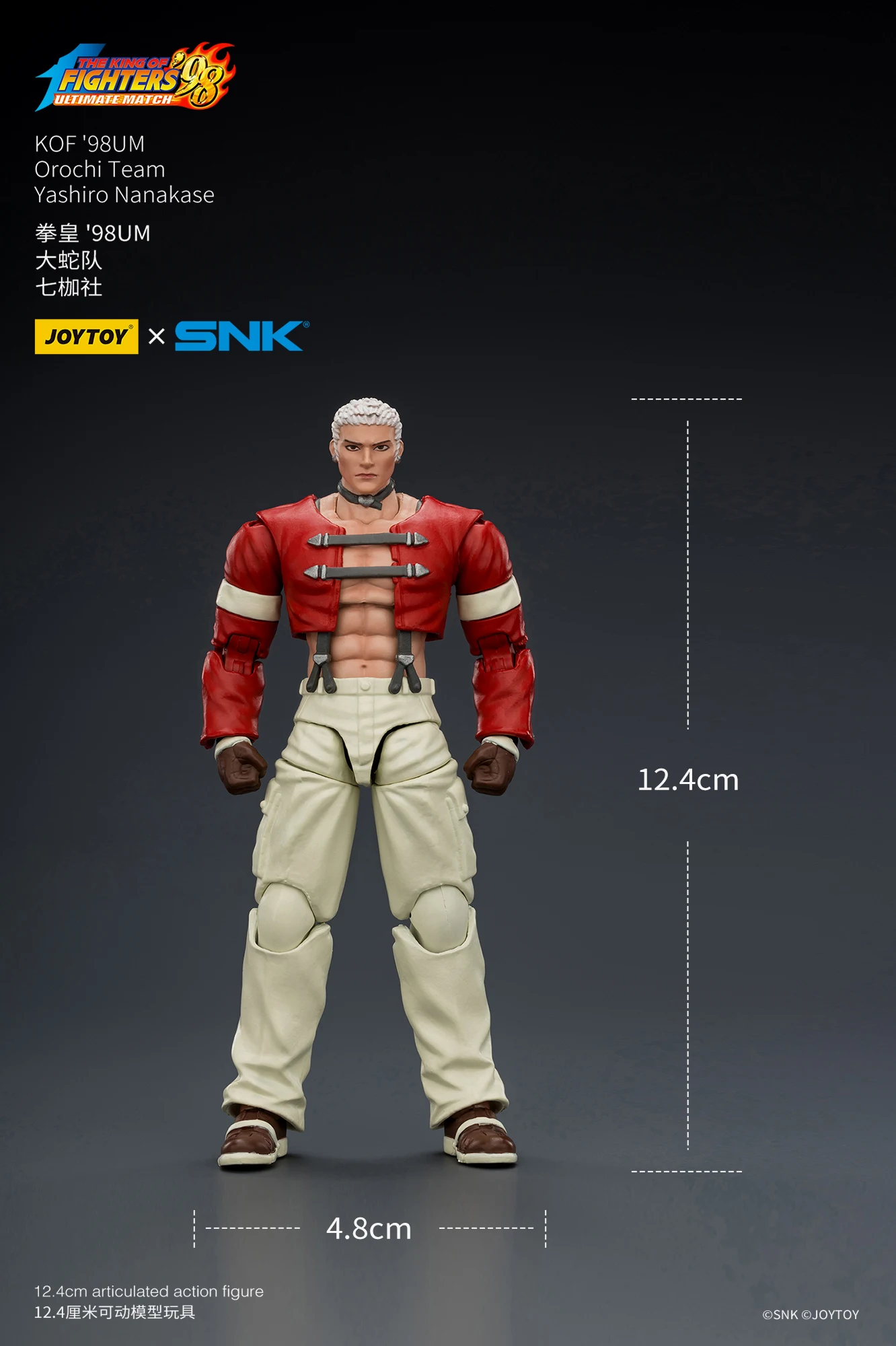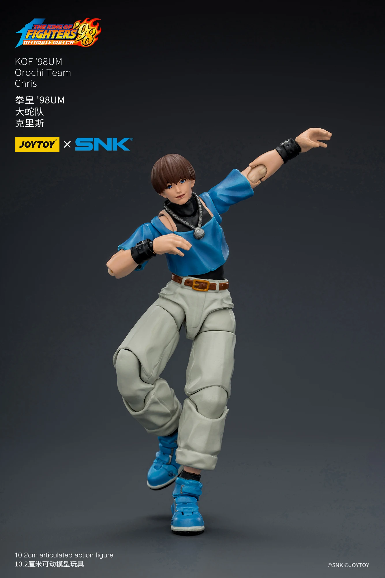 JOYTOY官方今日不久前正式公布了全新正版IP授权商品系列,是来自于SNK经典格斗游戏《KOF98UM》的第五弹商品,是大蛇队的三位角色,他们分别是七枷社、夏尔美、与克里斯。