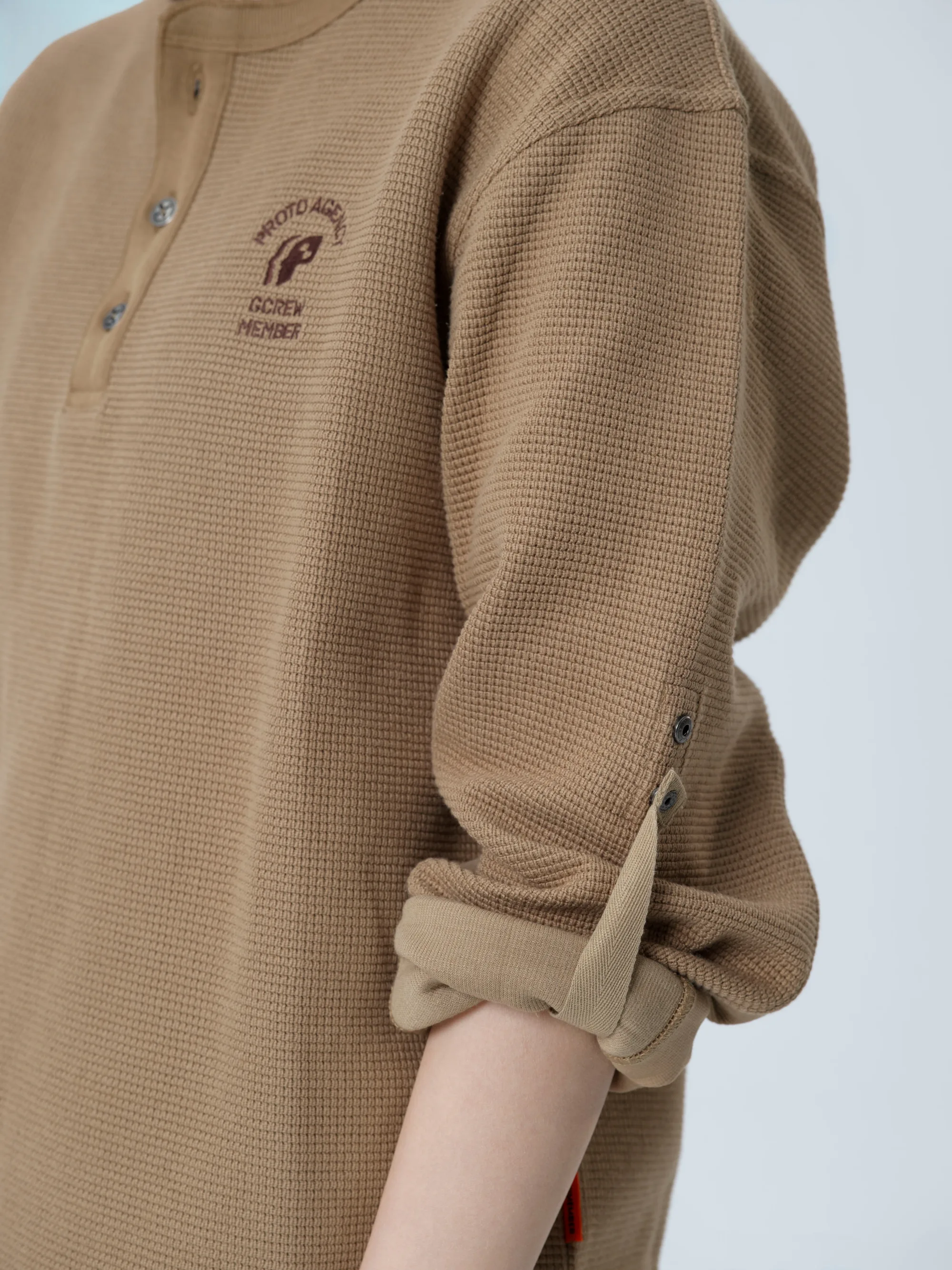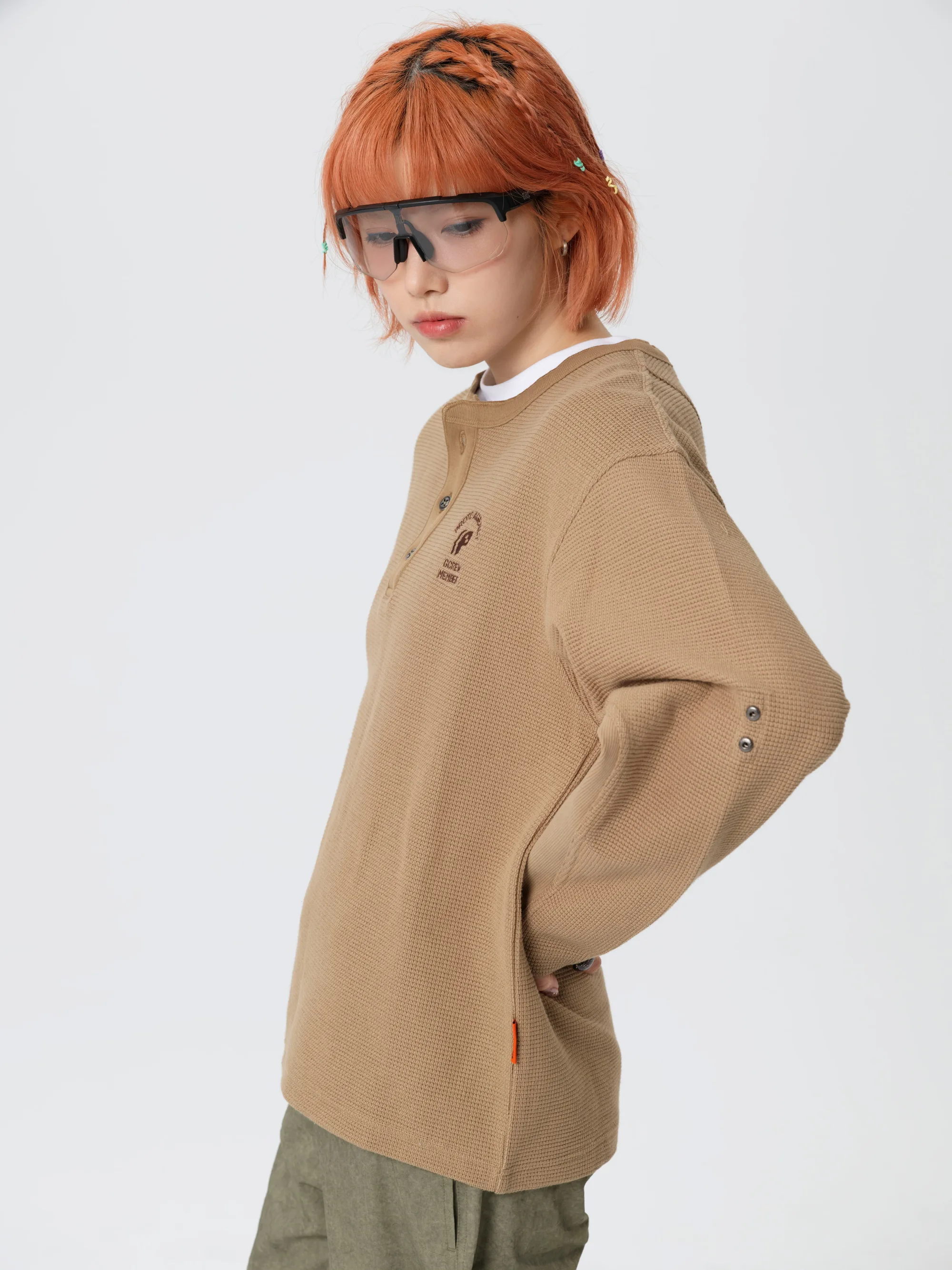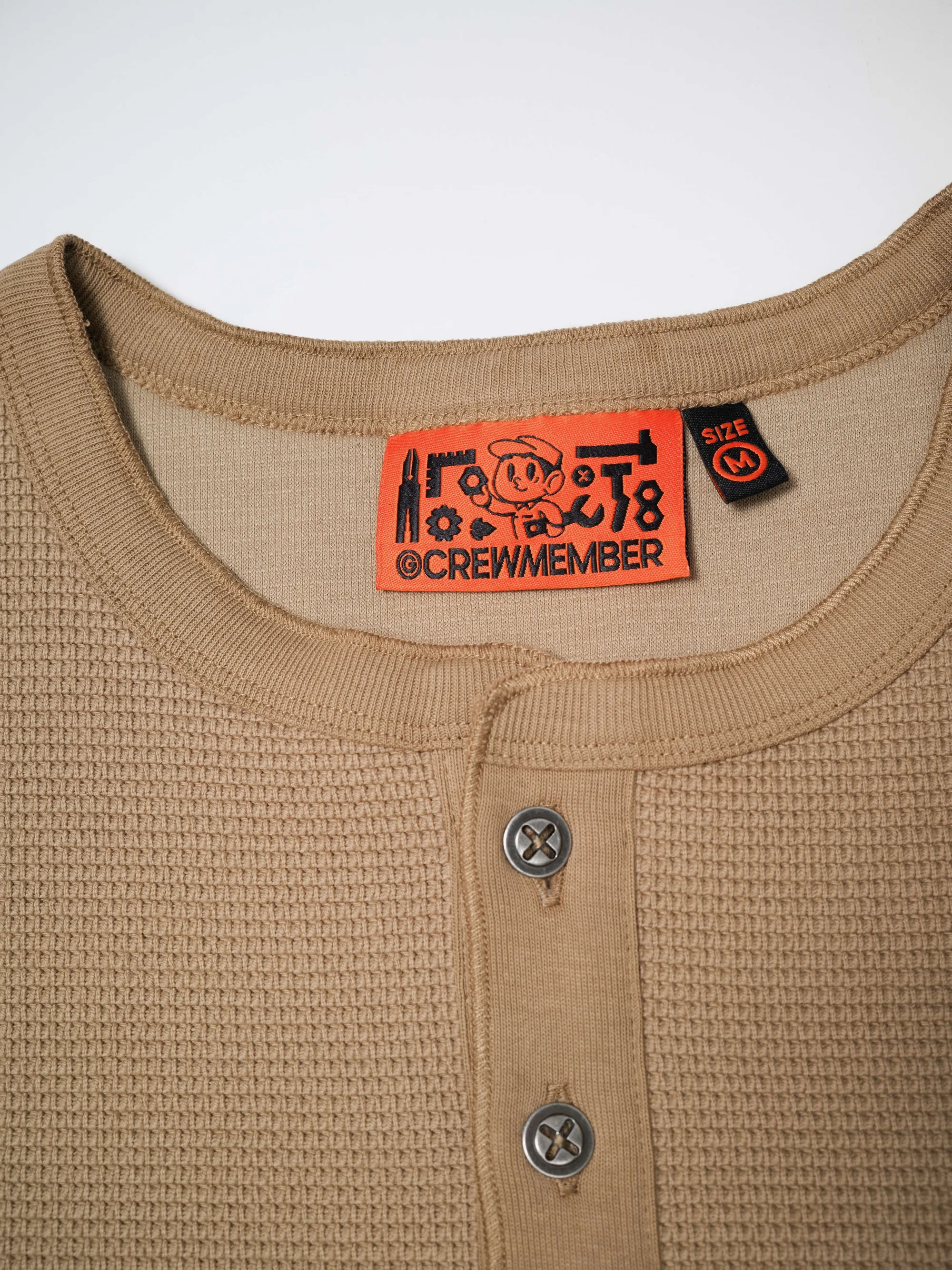 此款华夫格长袖T恤图案设计灵感汲取自「碰撞测试模特」,将无畏的实验精神与复古工装文化深度融合。结合「机组小子」IP元素,打造出兼具实穿性与辨识度的特色单品。