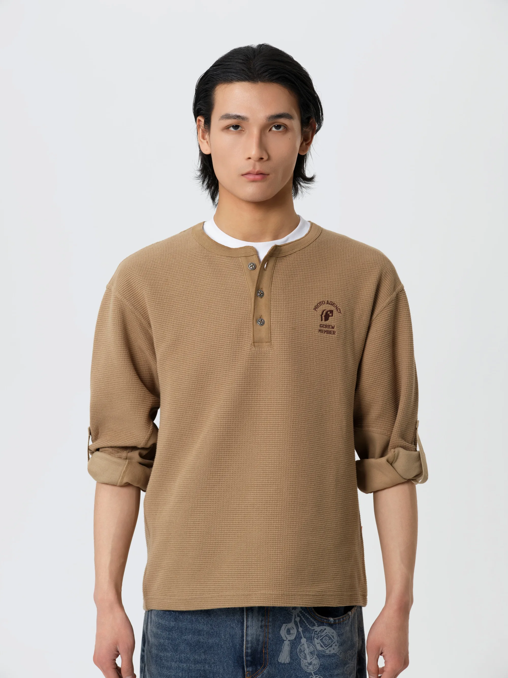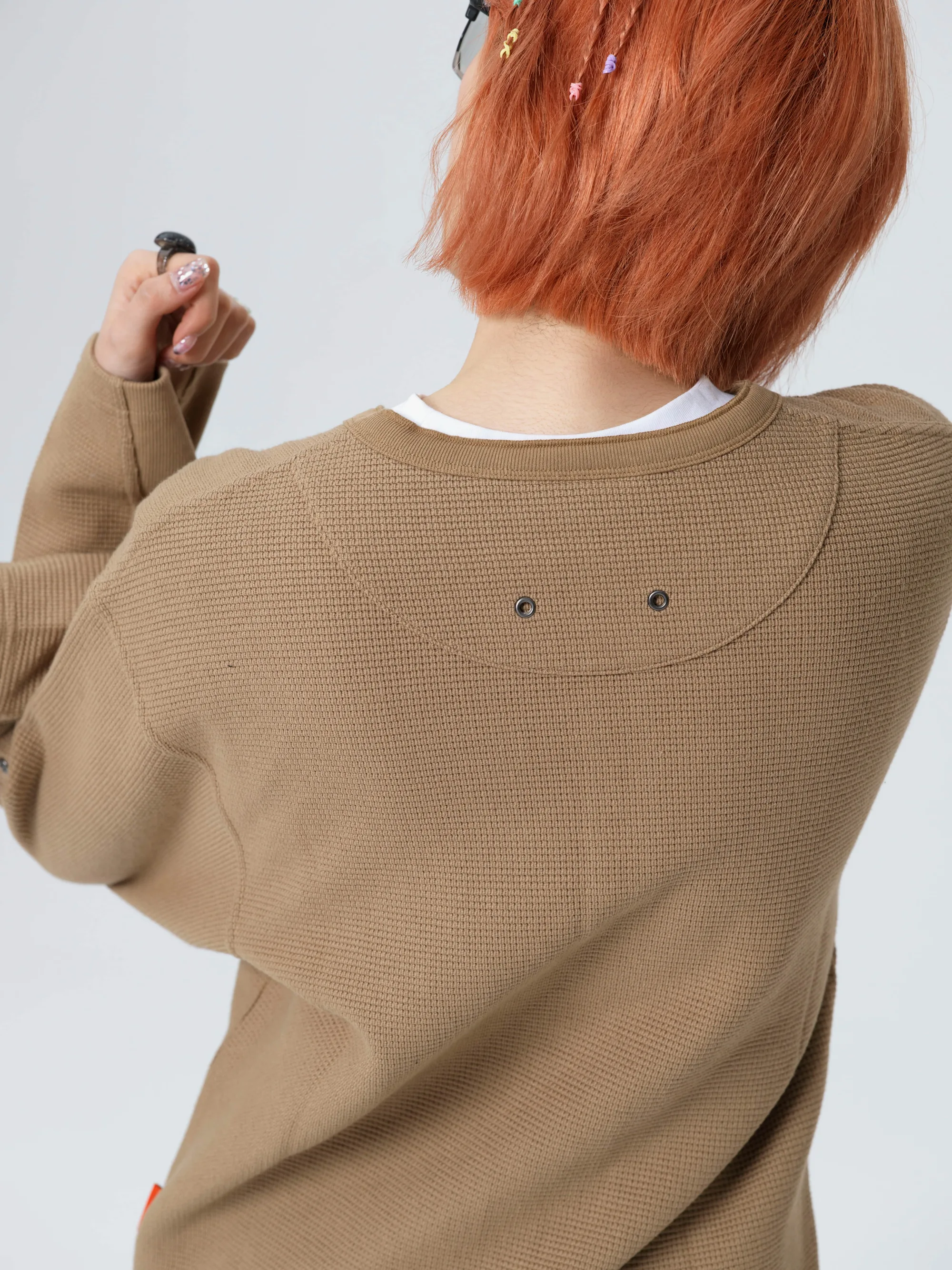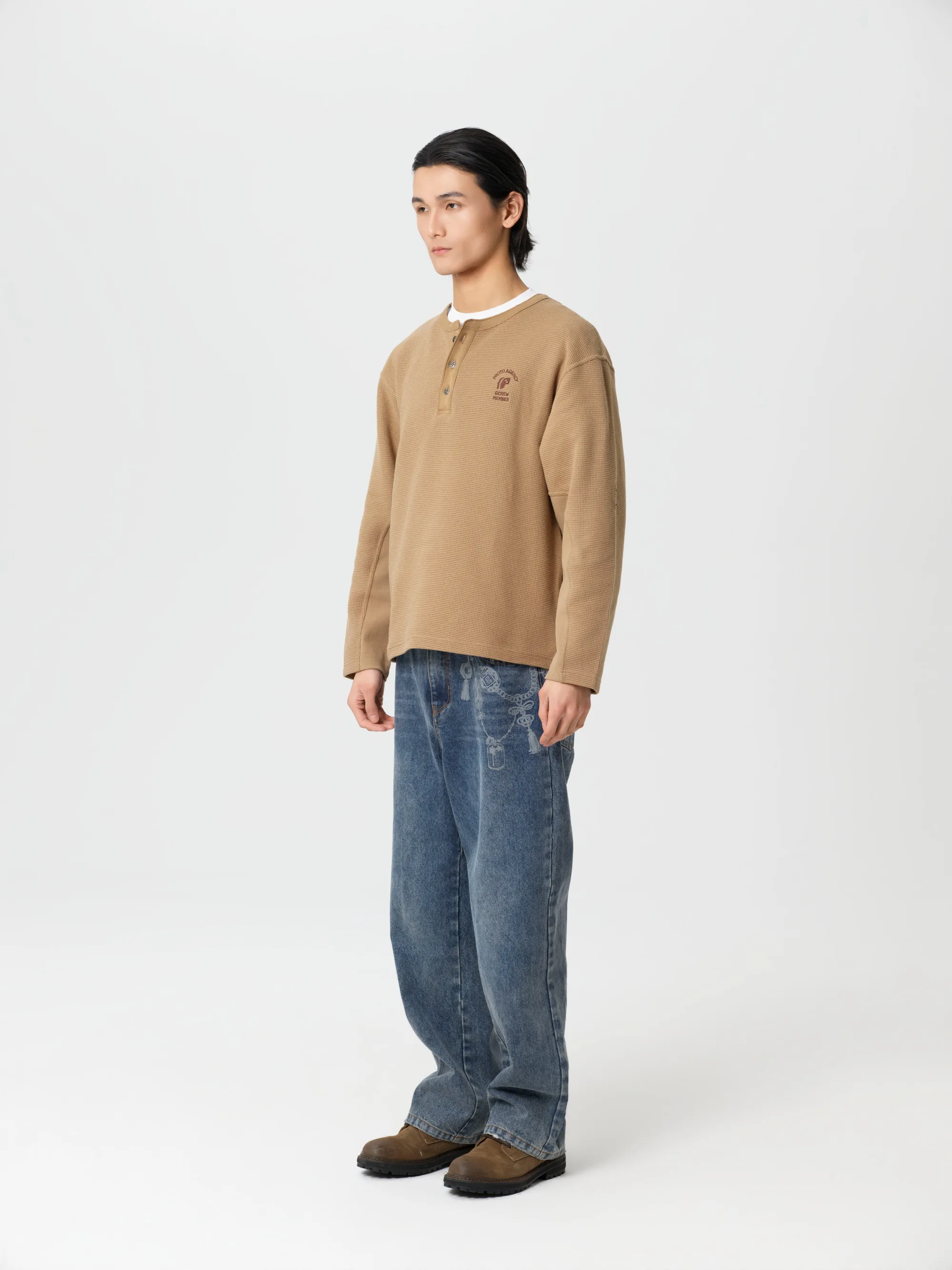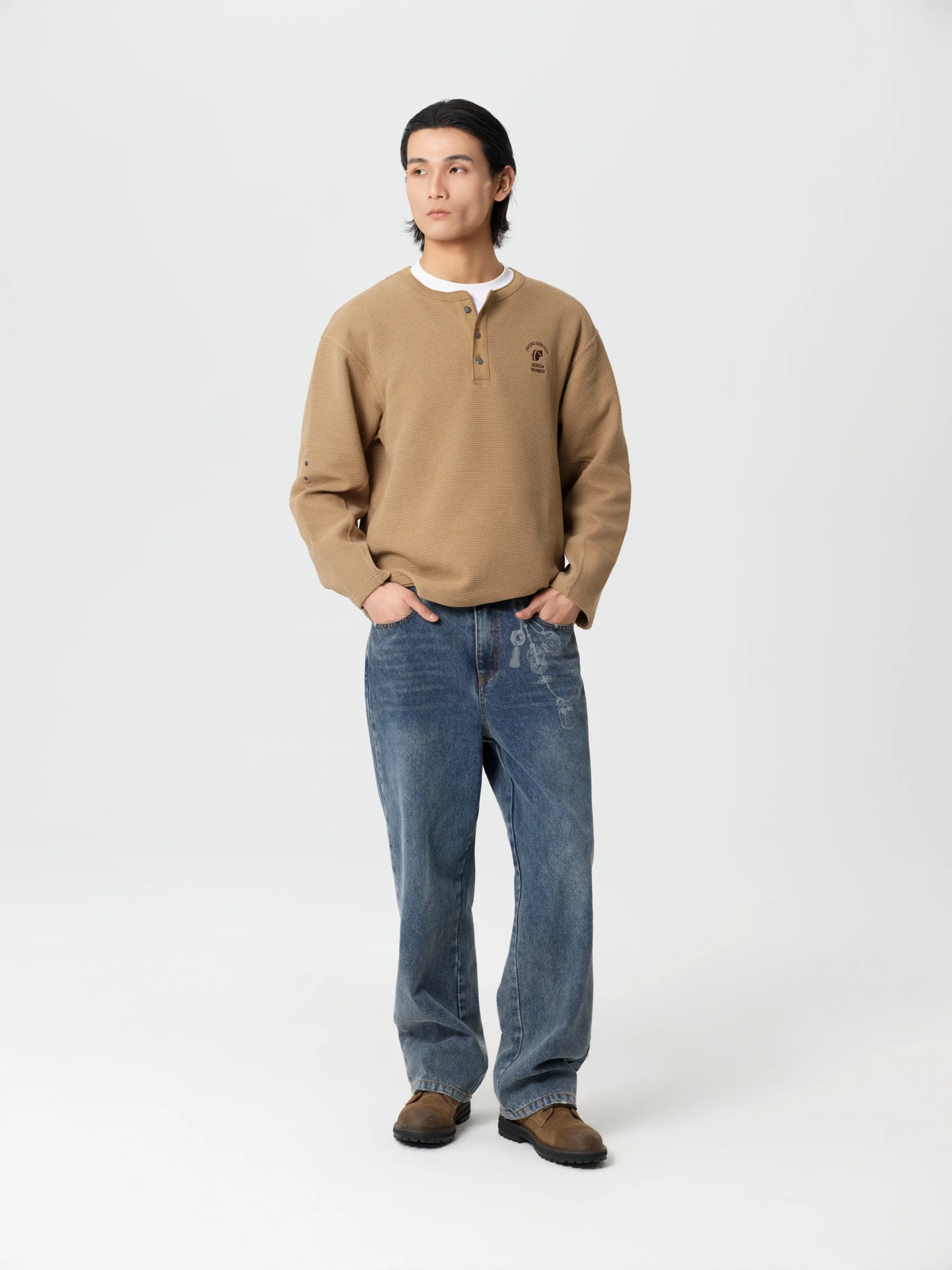 此款华夫格长袖T恤图案设计灵感汲取自「碰撞测试模特」,将无畏的实验精神与复古工装文化深度融合。结合「机组小子」IP元素,打造出兼具实穿性与辨识度的特色单品。