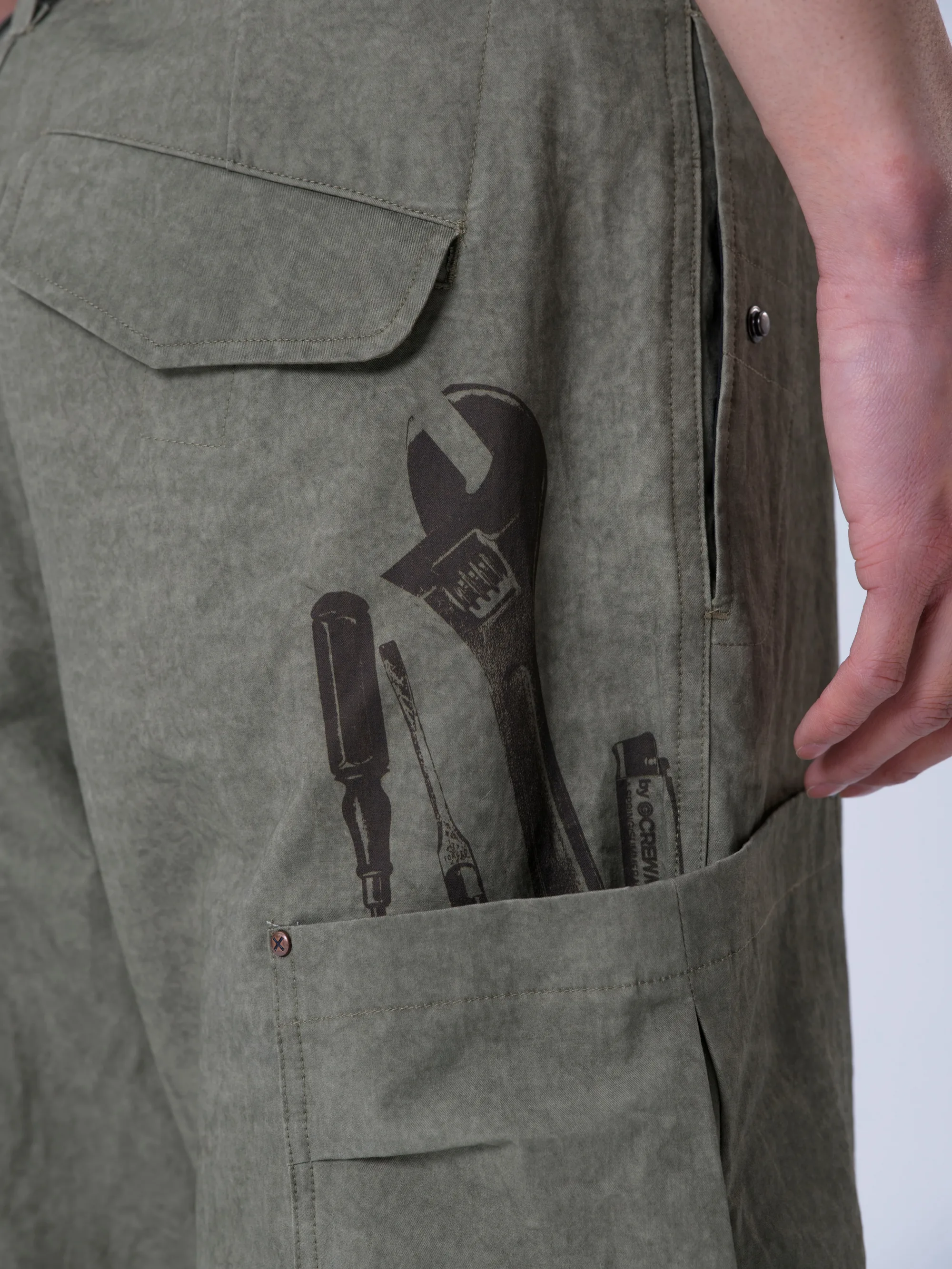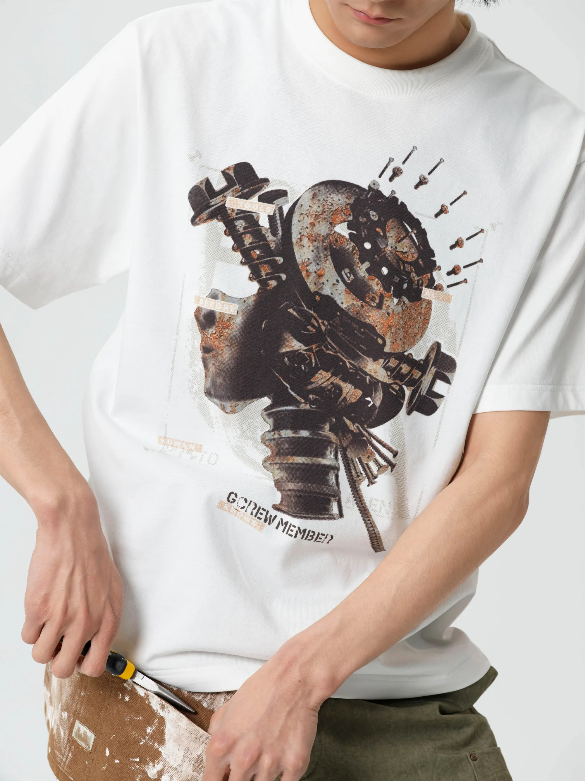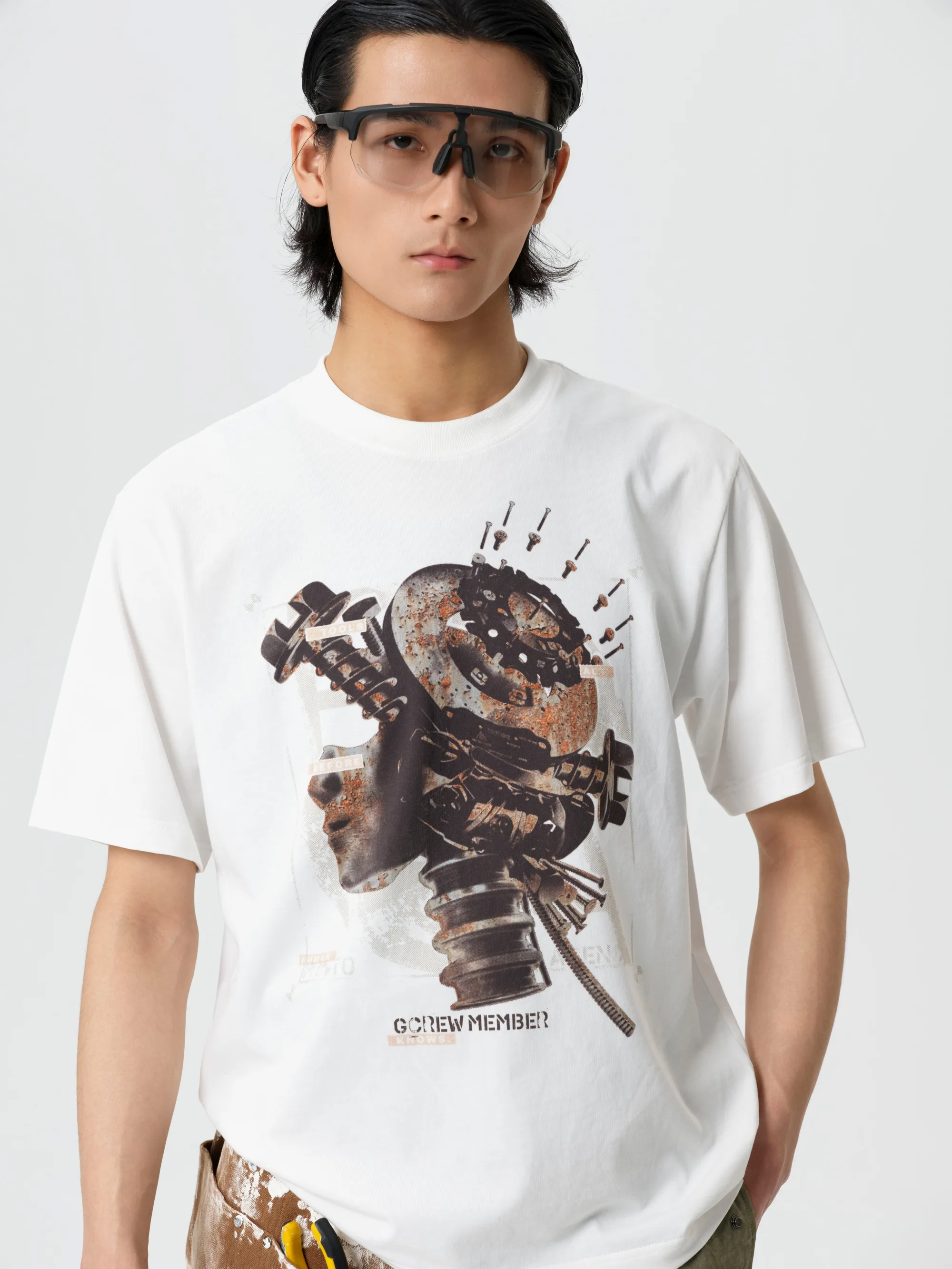 借此我们也将「工具」的意义赋予到服装印花和面料之上,推出了包含凉感面料T恤、脏染工装长裤、工装夹克等单品的全新系列。