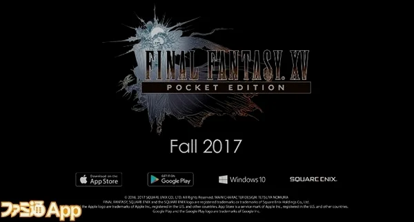 在2017科隆游戏展期间,SE 公开了能在手机上体验《最终幻想15》本篇内容的手机游戏《最终幻想15 口袋版》,游戏共有10个章节,第1章免费,预计将在2017年秋天登陆安卓、iOS 和 Windows 10 平台。