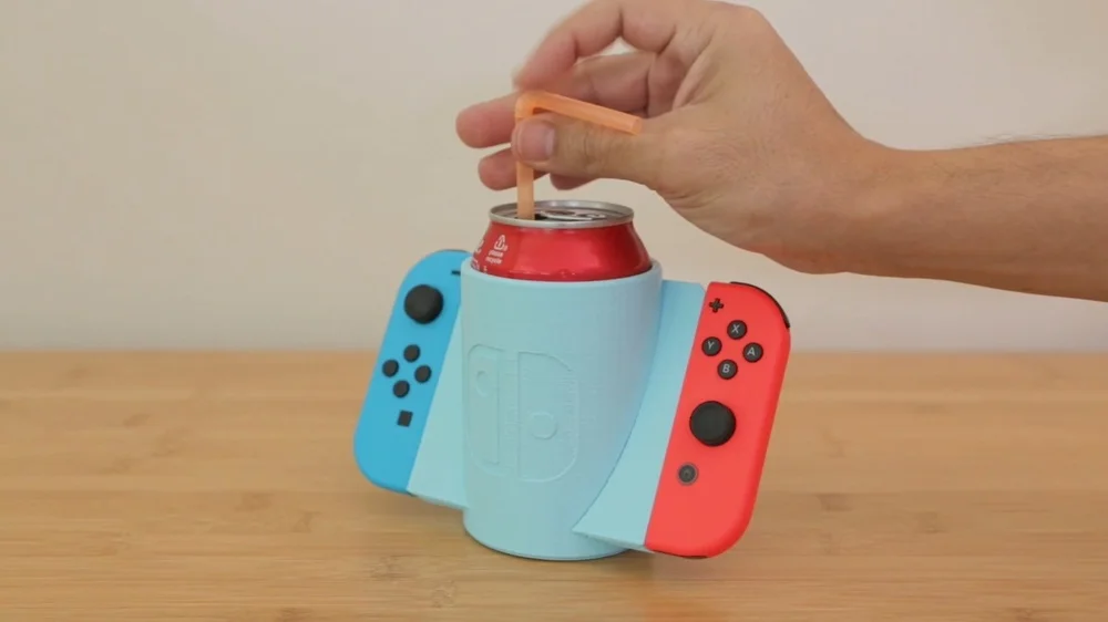 游戏机的外设我们见过不少,比如街机摇杆啊、跳舞毯啊、飞行摇杆啊甚至《吉他英雄》的乐器等等,但今天我想给您诸位看的这款周边吧,有点儿神奇,它能让你在畅快玩儿 NS 游戏的同时,不需要腾出一只手去拿可乐……