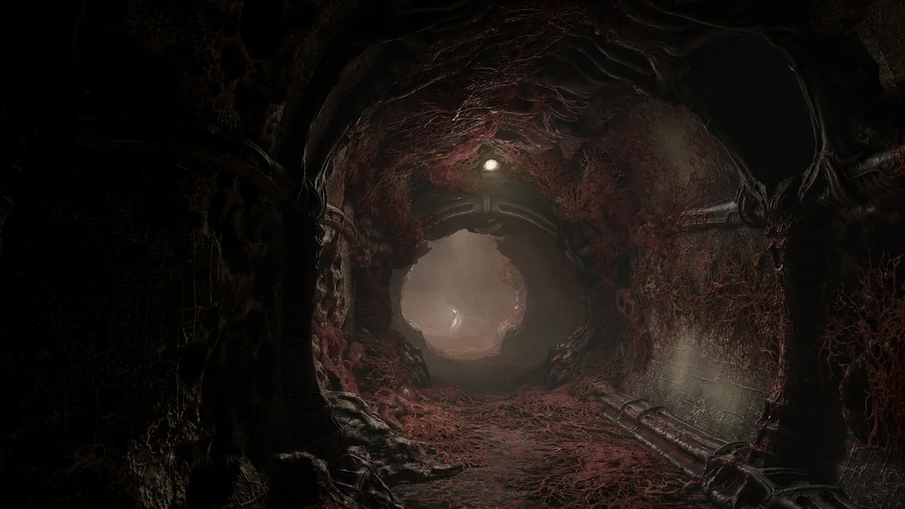 那么最近Hype风头最盛,并且出现了此类兵器设计的游戏应该就是SCORN了,尽管这款游戏的上半部分在明年才会发售,但这并不妨碍我们现在对它吹上一波。就像茶杯头一样,这是一款光靠画风就能吸引一波预购的游戏。深得H.R 盖格尔老爷子真传的艺术设计,这款游戏完美的展现出了一个钢铁和血肉相互融合的世界。