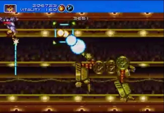 《火枪英雄》是由财宝社(Treasure株式会社)于1993年在世嘉MD上发行的2D卷轴射击游戏,上了一定年纪的玩家,肯定熟知财宝社在2D动作游戏上的造诣,其开发出不少脍炙人口的作品,比如《幽游白书—魔强统一战》,《守护英雄》等等,而《火枪英雄》则是财宝社的第二款游戏。