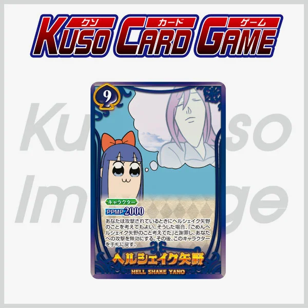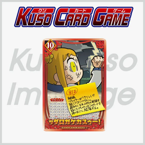官方在介绍中几乎在所有词前面加上了“クソ”,“粪套装”、“粪卡游”、“粪说明书”……卡牌左上角表明了各种花色和数字,所以54张牌肯定能凑齐一套(粪)扑克。另外,卡牌分为蓝色和红色,分别代表了二位主角,看样子游戏内容是让两人展开一场(粪)对决……