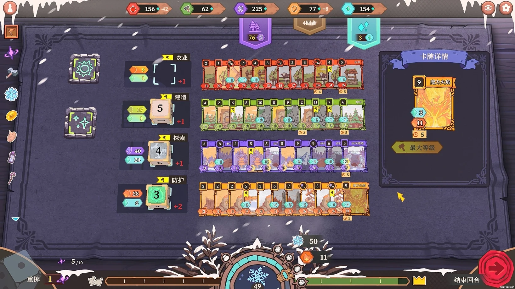 《丰饶女神之骰》是一款由骰子与卡牌驱动的Roguelike村庄建设游戏。分配骰子、触发卡牌、产出资源、发展村落。由你带领的远征队能否通过重重考验,在凛冽的暴风雪中生存下来? 从骰子驱动的桌游中获得启发,你放置的骰子将决定每一张卡牌的触发结果:只有点数足够的骰子才能触发卡牌,获取生存和发展所需的资源。 农业、建造、探索或守护——四个区域中的卡牌将产出不同类型的资源。请明智地分配手中的三枚骰子,触发那些最为关键的卡牌。 游戏的Steam页面已经公开!如果想要支持我们,请将《丰饶女神之骰》加入愿望单,十分感谢!