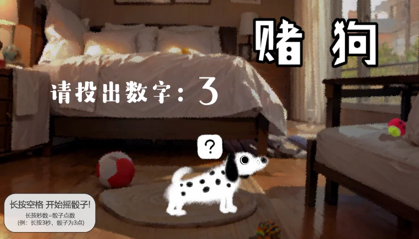 长按空格,开始摇骰子。长按秒数=骰子点数(例:长按3秒,骰子为3点)