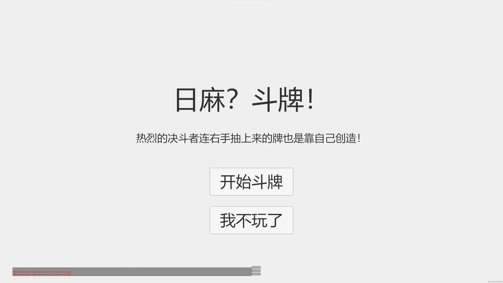 在福本老师的漫画里,总是花费大量篇幅描绘对局双方的心理,双方会相信【流势】(约等于运气)这种东西的存在,并想要乘上【流势】而行动。 但在一个【流势】真实存在的世界里,麻雀会变成什么样的一个游戏呢? 大体规则同日麻,画面下方的是【Hyper槽】,代表对局的热烈程度,Hyper 槽越满,对局则越热烈,小概率事件越容易发生(越容易摸到想要的牌,哪怕只剩一枚了) 时间太紧,很多系统都还没完成,建议等更新,未完成系统: 1.只有轮到自己出牌时可能调整 Hyper 槽 2.细分个人流势和场上流势,四家流势可视化 3.场上的行为可能改变流势 99.基础规则完善(现在没实现杠牌补岭上牌和宝牌系统)