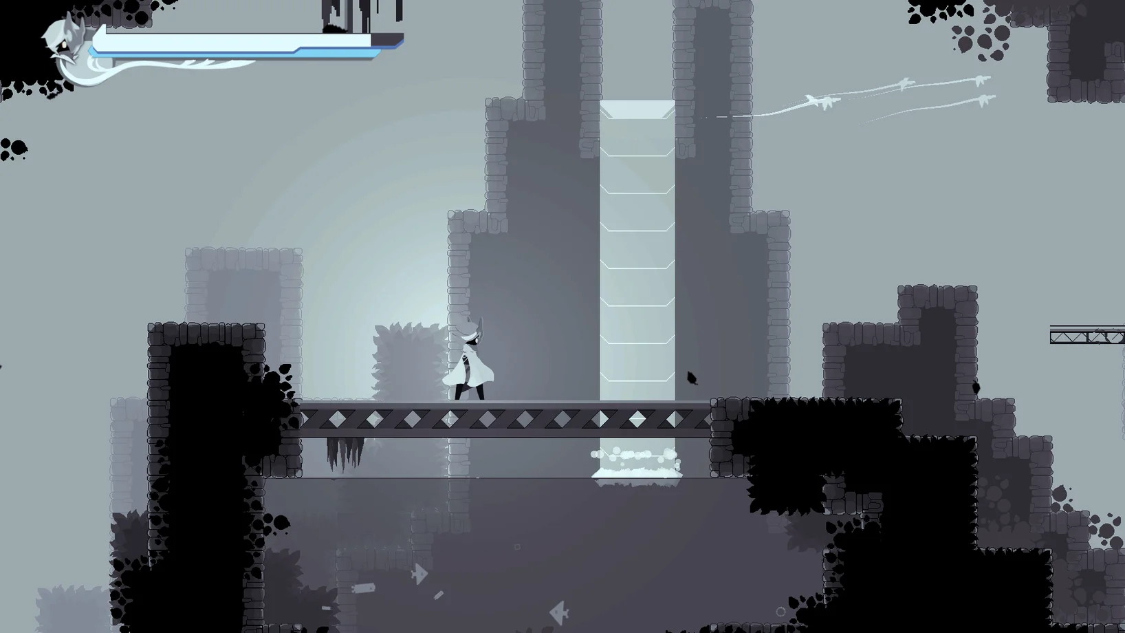 操作说明:AD移动,J攻击,K跳跃,P技能树 游戏类型:动作向类银河恶魔城 核心体验:玩家主导向战斗与地图探索 玩家扮演一名使用碎刃进行战斗的神秘少女,在一座废弃的工厂中苏醒后,探索世界,学习多种招式,面临不同的敌人与挑战。我们希望玩家成为战斗的主导者,自由构建战斗方式与连段。
