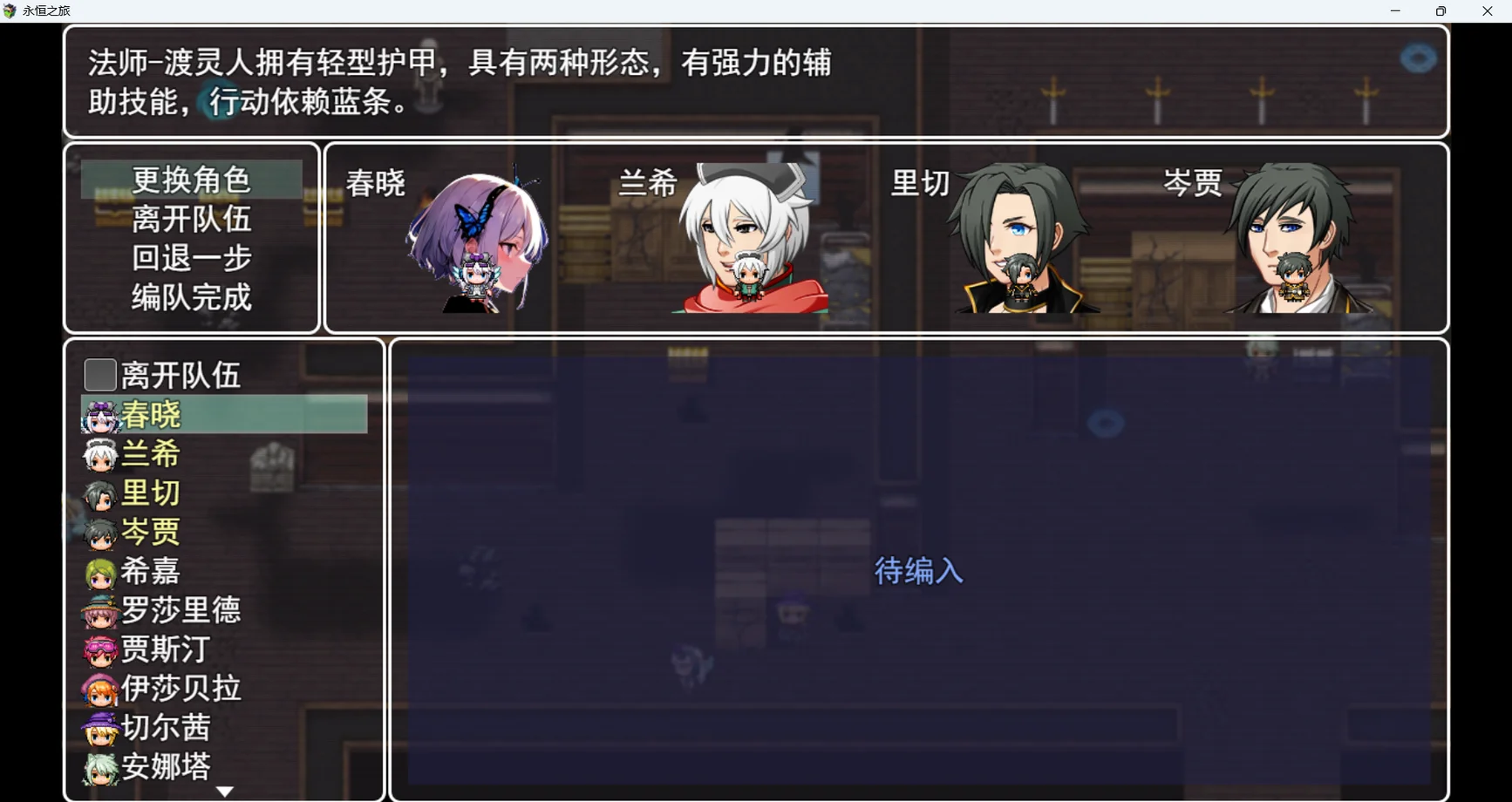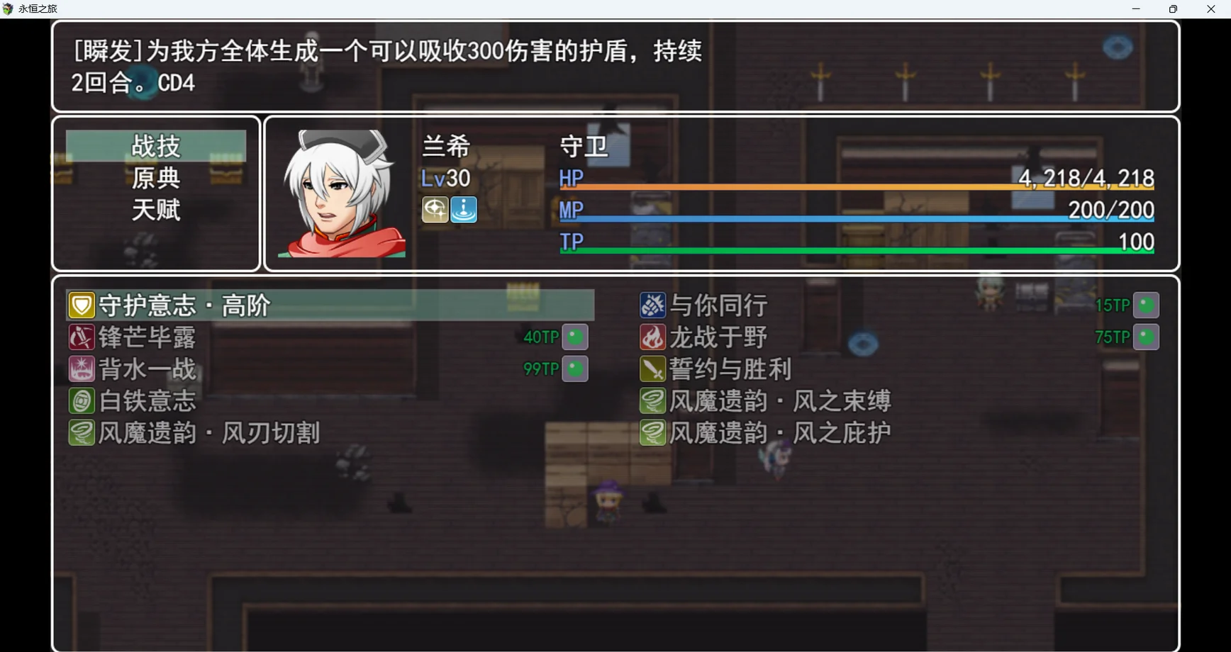 时空折跃-永恒之旅 是一款用RPG Maker MV引擎开发制作的 回合制战斗向RPG游戏,讲述了玩家操作主角穿越到异世界并 联合其同伴运用合理的阵容搭配最终击败魔王的故事…