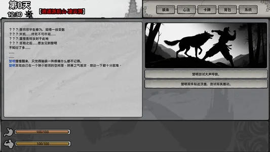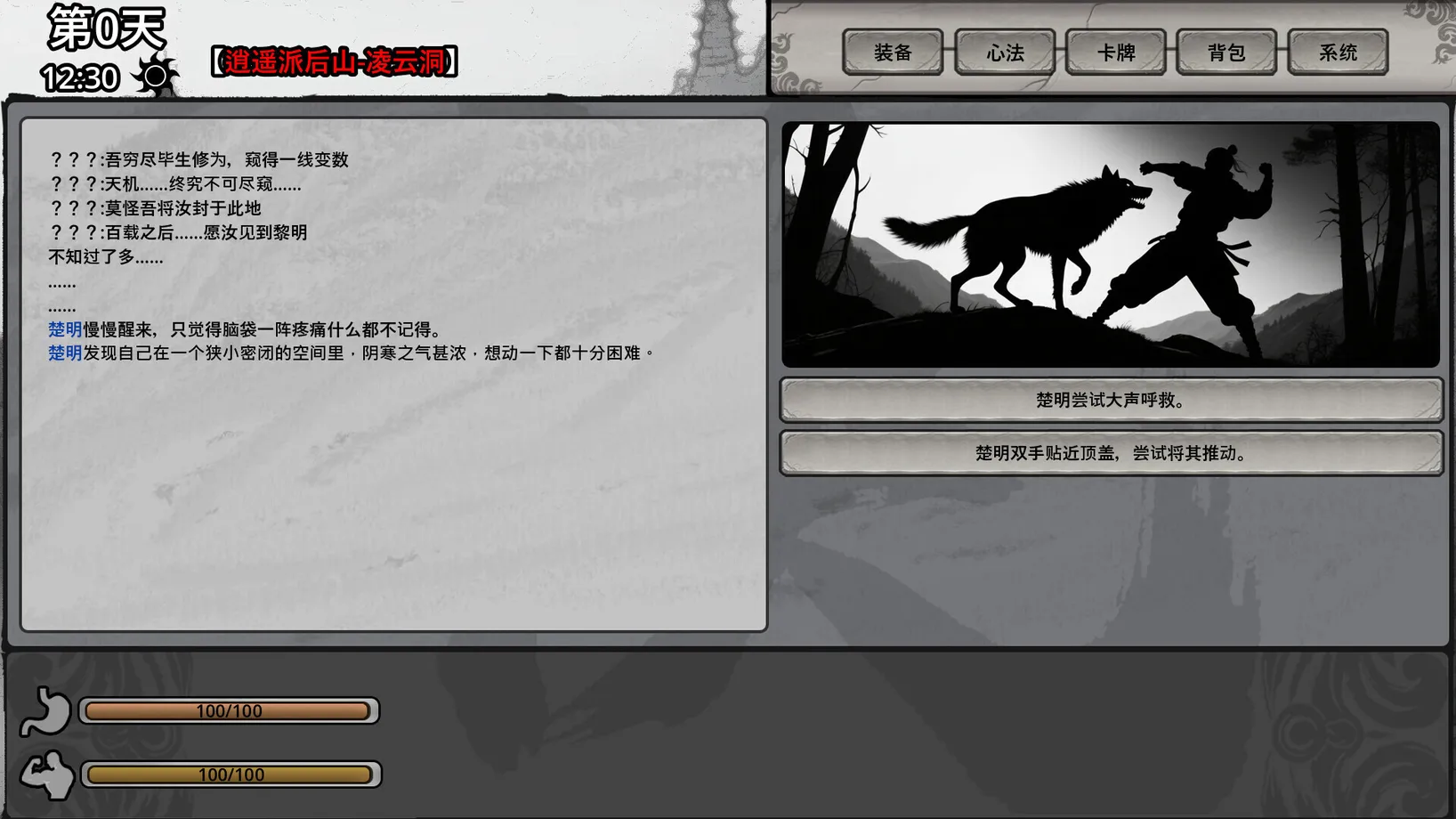 MUD探险+卡牌战斗的游戏,玩家将在文字世界中冒险获取招式进行战斗活下去。