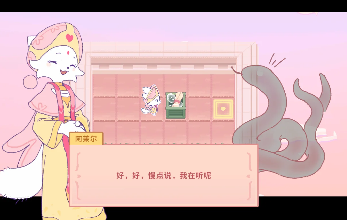 《神官阿茉尔》是一款卡通风格的,带有叙事要素的小品级轻度解谜游戏。 玩家将扮演于架空机构“爱之宫”中就职的神官阿茉尔,经历她工作的一天,并从这一天经历中接触到关于爱的启发。 游戏玩法为带有特殊规则的推箱子,名为“公文”的特殊箱子可以被其他箱子收纳,以“公文”的放入与取出为核心展开解谜。 游戏包含独立世界观,拟人化动物角色,一段与爱有关的故事。 ---------------------------------------------------------------------- 试玩版本为只支持windows平台键盘鼠标游玩的游戏性测试版,不包含任何与剧情演相关的,对白,立绘展示等内容。