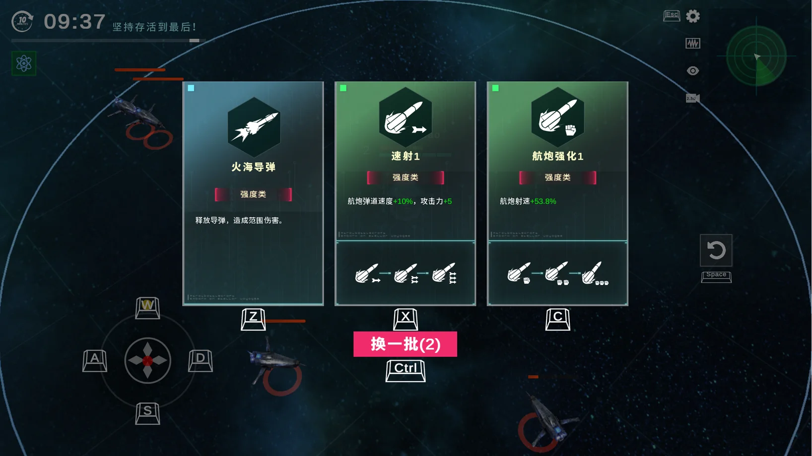 星宇战舰当前作为一款吸血鬼like肉鸽游戏,提供提供多种战舰角色供玩家选择,每种战舰都有其独特的武器系统和飞行战术。击败一定数量的小怪,拾取经验球,获得增益卡片以提升战舰的强度!每局游戏结束后,获得探索点,以解锁天赋树。