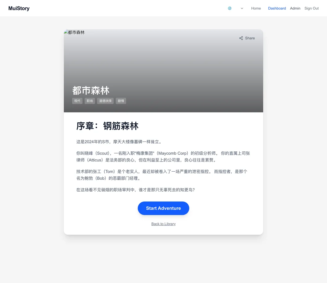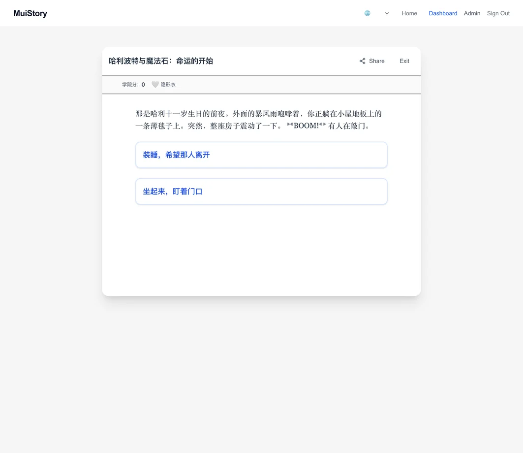 使用姆伊故事书,我们可以把一段故事用 AI 快速转化成包含多分支、多场景、多结局,重剧情的文字冒险游戏。类似于“隐形守护者”、“我被美女包围了”、“超英派遣中心”都可以做到。 创作者要做的,就是把剧情、画面风格、音频风格交给 AI。请AI帮你生成复杂的网状叙事,以及让玩家沉浸其中的音视频图片文案。 与简单的AI操控一切不同,使用姆伊故事书,我们可以修改剧情走向,让剧情变得更加扑朔迷离,更加引人入胜。