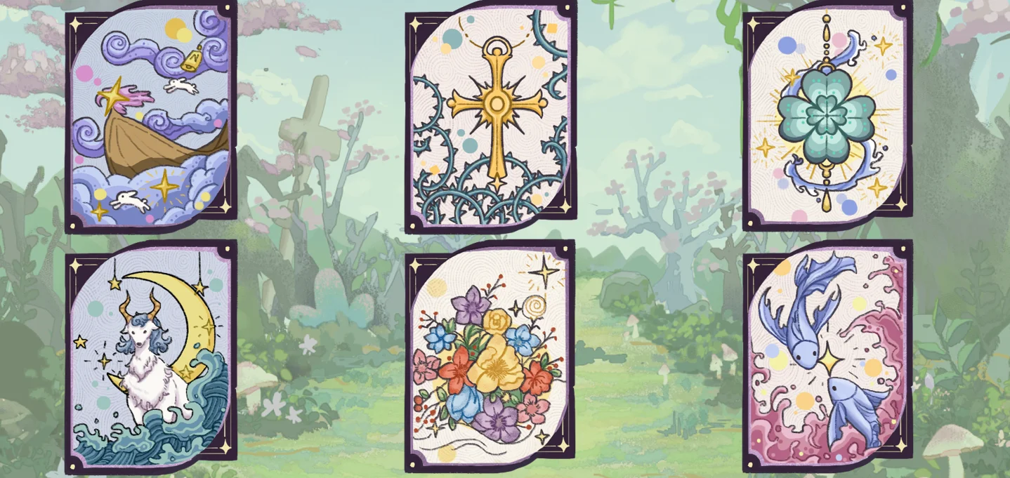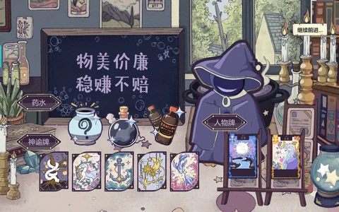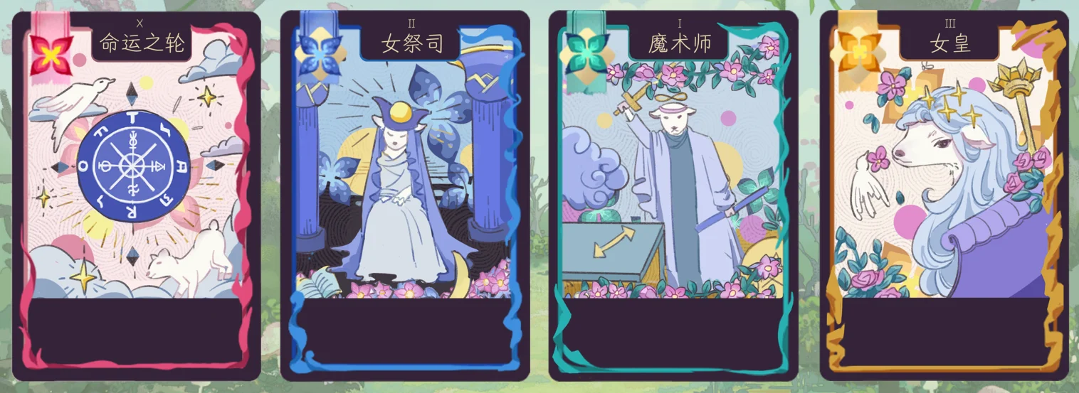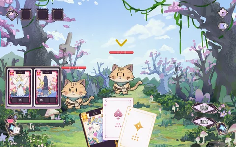 肉鸽卡牌游戏,玩家在地图中收集塔罗牌与扑克牌,构筑去流派卡组