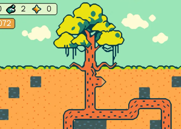 诞生于“一棵树的树冠有多大,它的根系就有多大”树根在地里爬行,长到资源丰富的地方,树也会慢慢长大。玩家需要像树一样,精打细算,探索自己的生存方向,然后付诸实践,一步一步地,直到一棵参天大树,以根系的形态出现。 玩法:鼠标点击让树根生长和分叉,收集地下的水和矿物资源以供生长所需。尝试合理地规划路线,到达更深的地方。 Global Game Jam 2023杭州站Merak Team队伍作品。Jam主题为"Roots",于是设计了一个规划树根生长路径的游戏。