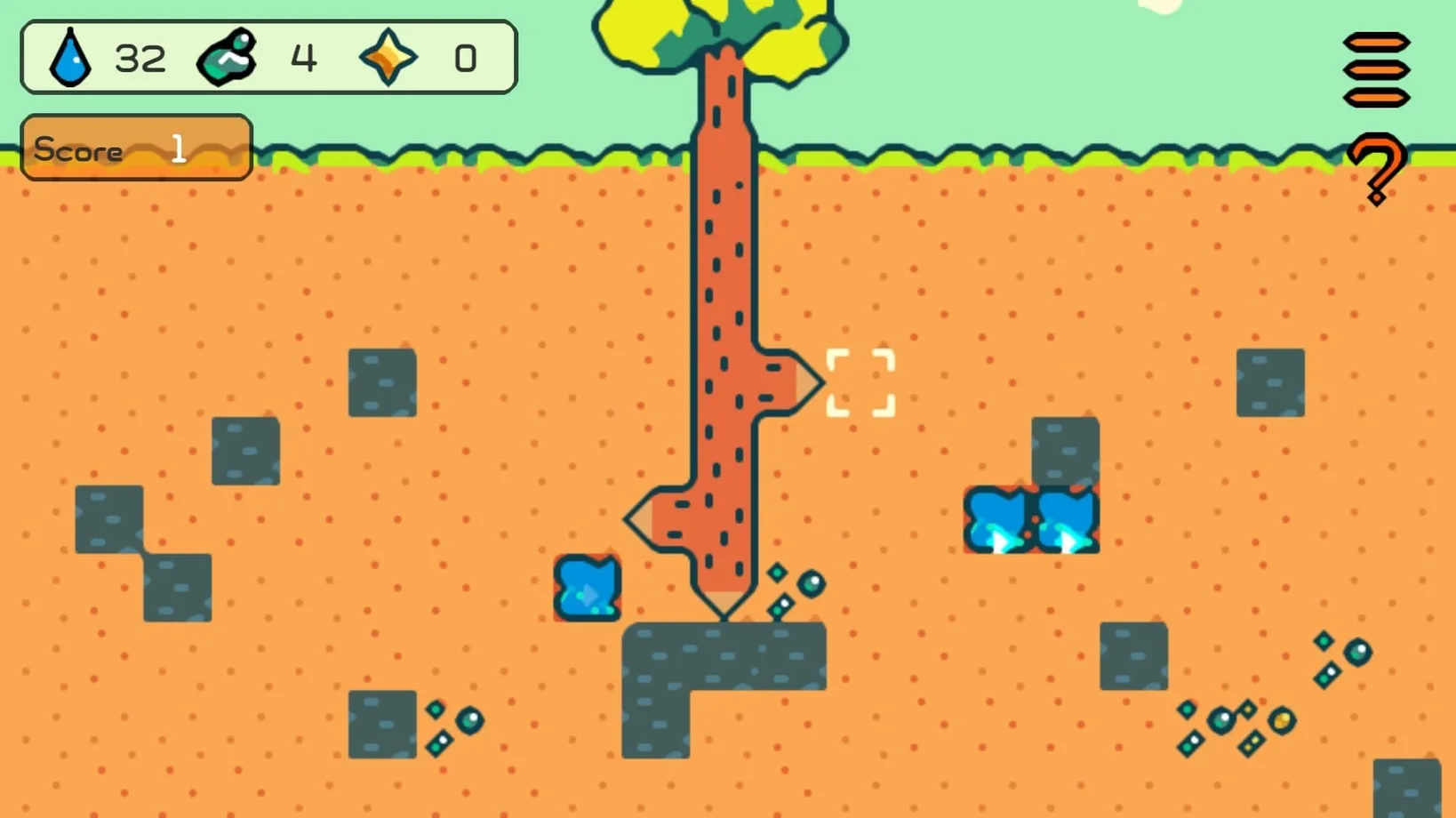 规划路线让树根生长和分叉,收集各类资源,到达更深的地方
