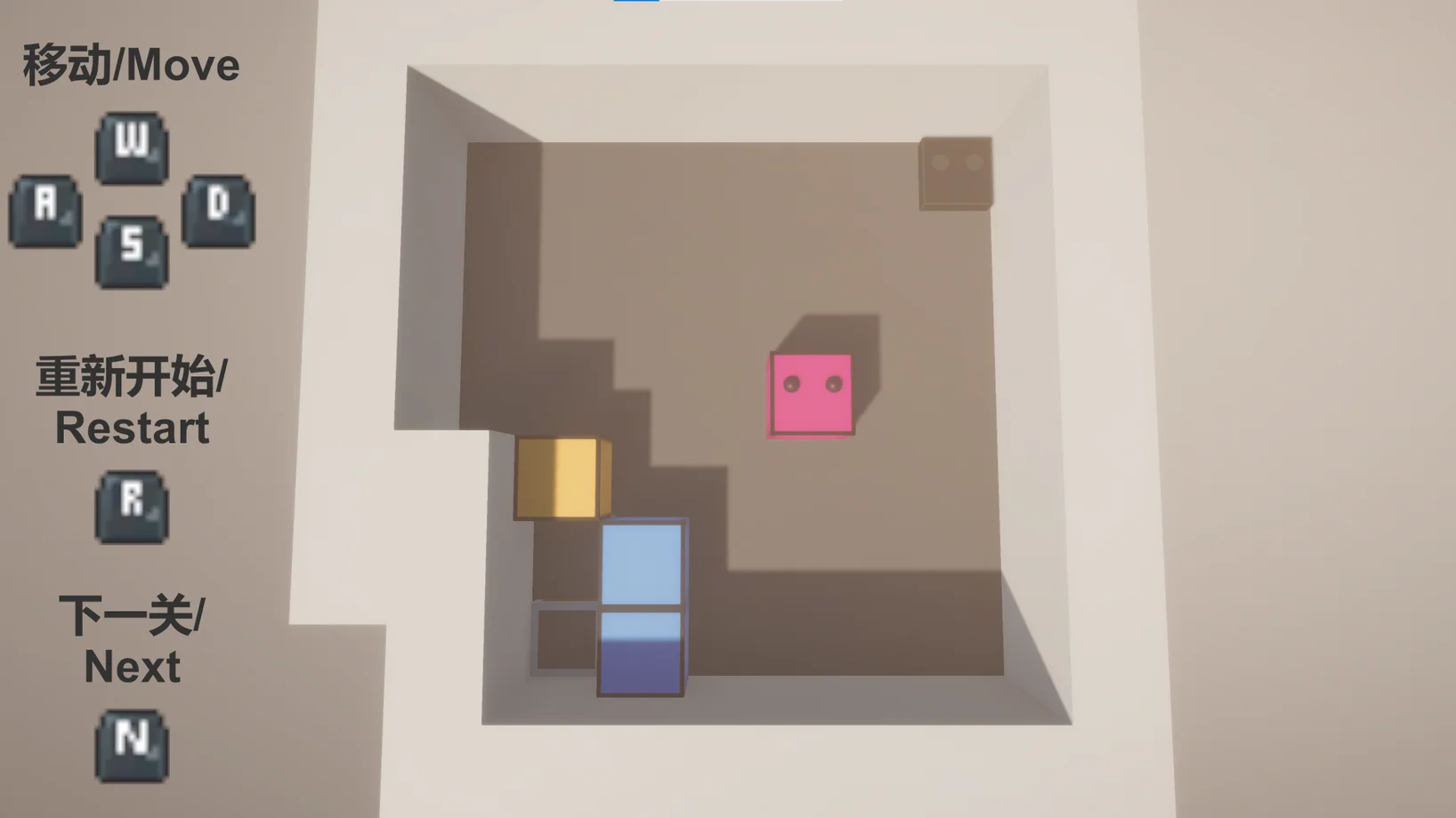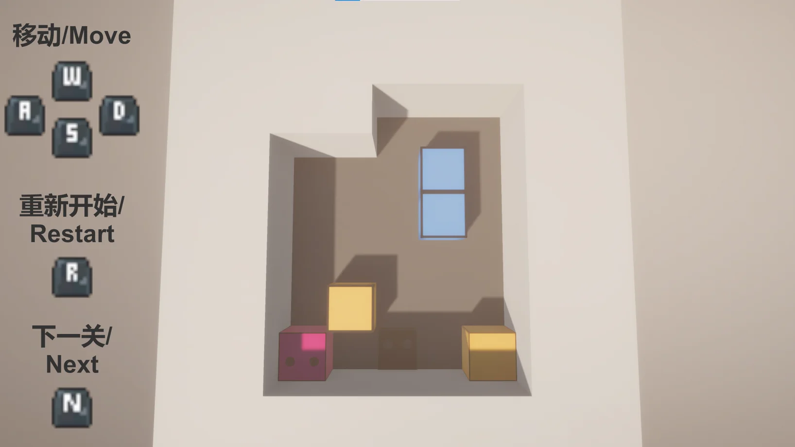 这是一款网格移动的3D空间推箱子解谜游戏。不要被物理空间所约束,打破物理掩码,摘下阻挡你前进的空间难题的假面,享受谜题破解的尤里卡时刻,最后撕破玩家你自己的面具吧。