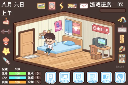 【BOOOM2021参赛作品】 "《十八天》是让玩家在18天内安排时间做出选择来完成一款游戏的游戏。大概算是养成类文字游戏吧。主角是一个外卖小哥,开场是在一个无法配送成功而不断循环的噩梦里,时间在梦里只不过是幻觉。在一次一次的失败后,主角终于醒了过来。这时候时候已经是8月6号,活动开始的第一天了。而当18天结束,无论游戏做没做完,都将迎来新一次的轮回。一切回归起点,唯一留下的只有生活中的细小碎片。而当拥有了足够的生活碎片,轮回才会停止,玩家才能真正的走出困住自己的房间,走出这循环的18天。我的大概想法是,如果时间是一种幻觉,那我们的生活呢?我们所经历的所选择的才是真正的我们。所以无论时间是否是幻觉,去好好的生活,去经历去感受才能让我们回到现实。第一次参与Game Jam,想法和制作都不是很成熟,还希望大家能多见谅_(:_)∠)_ 【游玩方法】无需安装,解压压缩包点击win32文件夹里的「18天.exe」文件即可运行游戏。 Android : TimeIllusion-release-signed安装包 【下载地址】链接: https://pan.baidu.com/s/1CpZ9BEESx_-P7o03ntOB3g 密码: n1b5