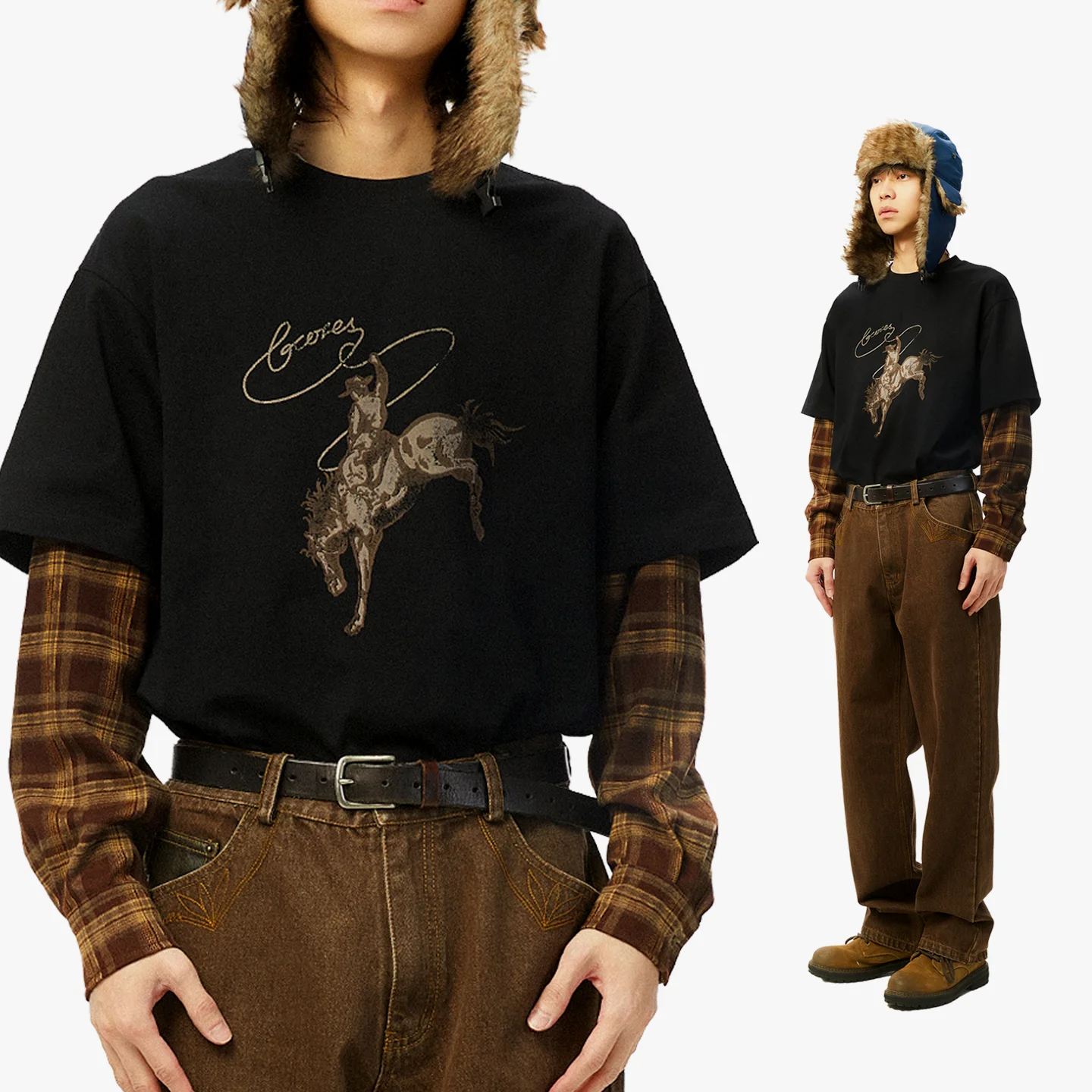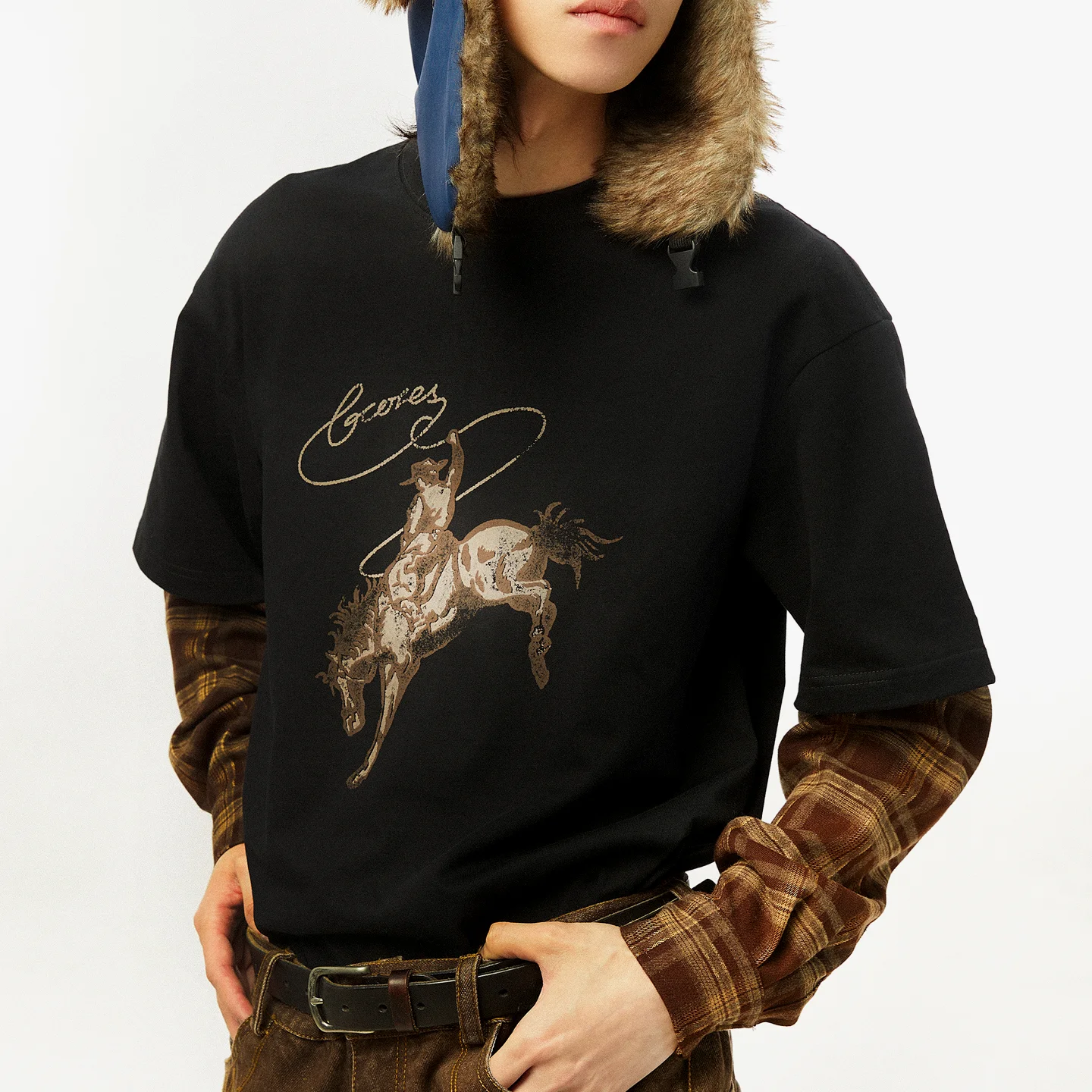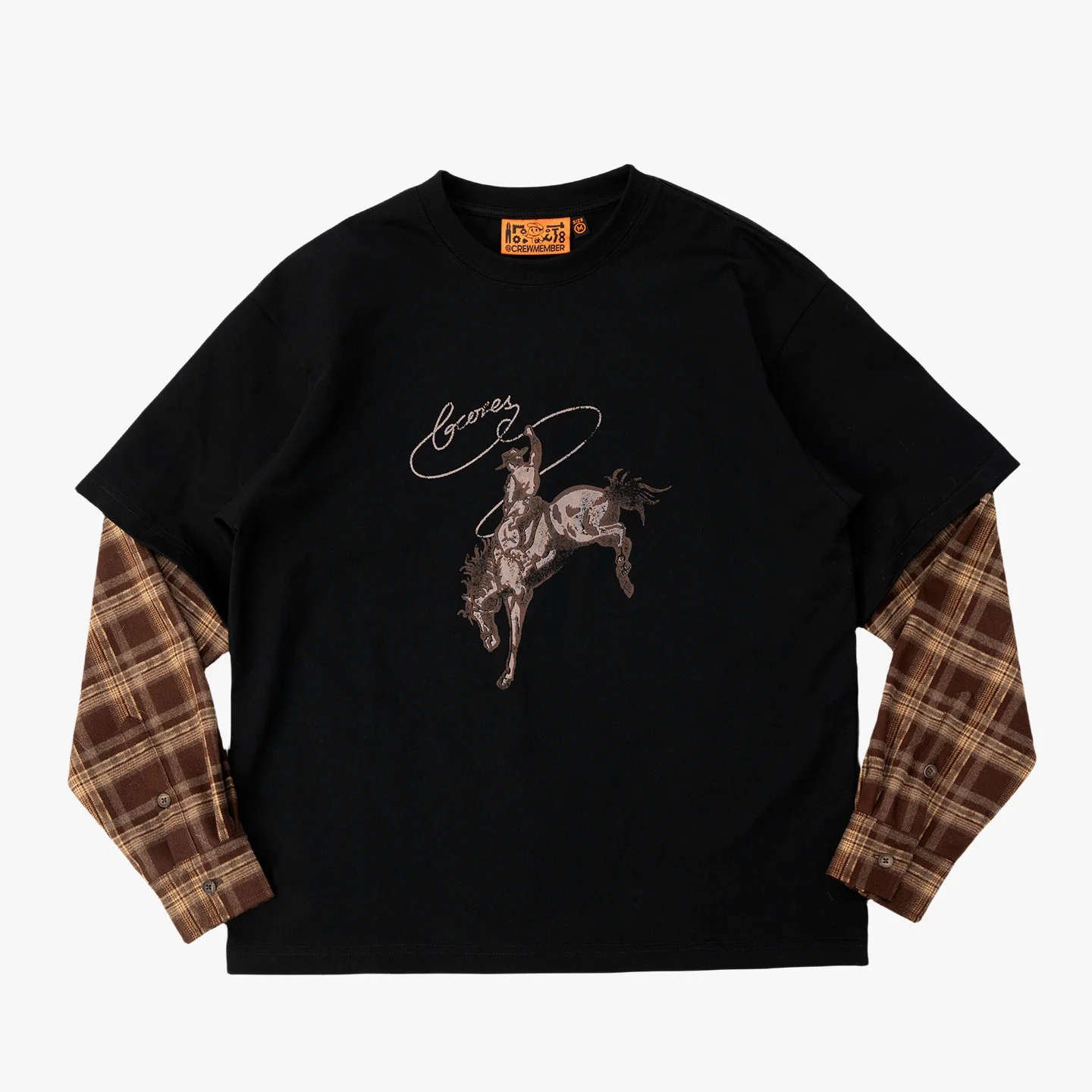 吉考斯工业| 套马纳福|纯棉假两件衬衫袖圆领套头卫衣
