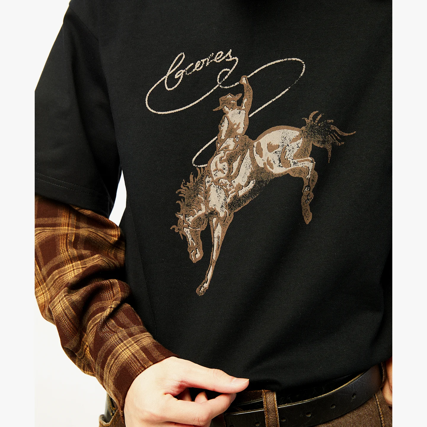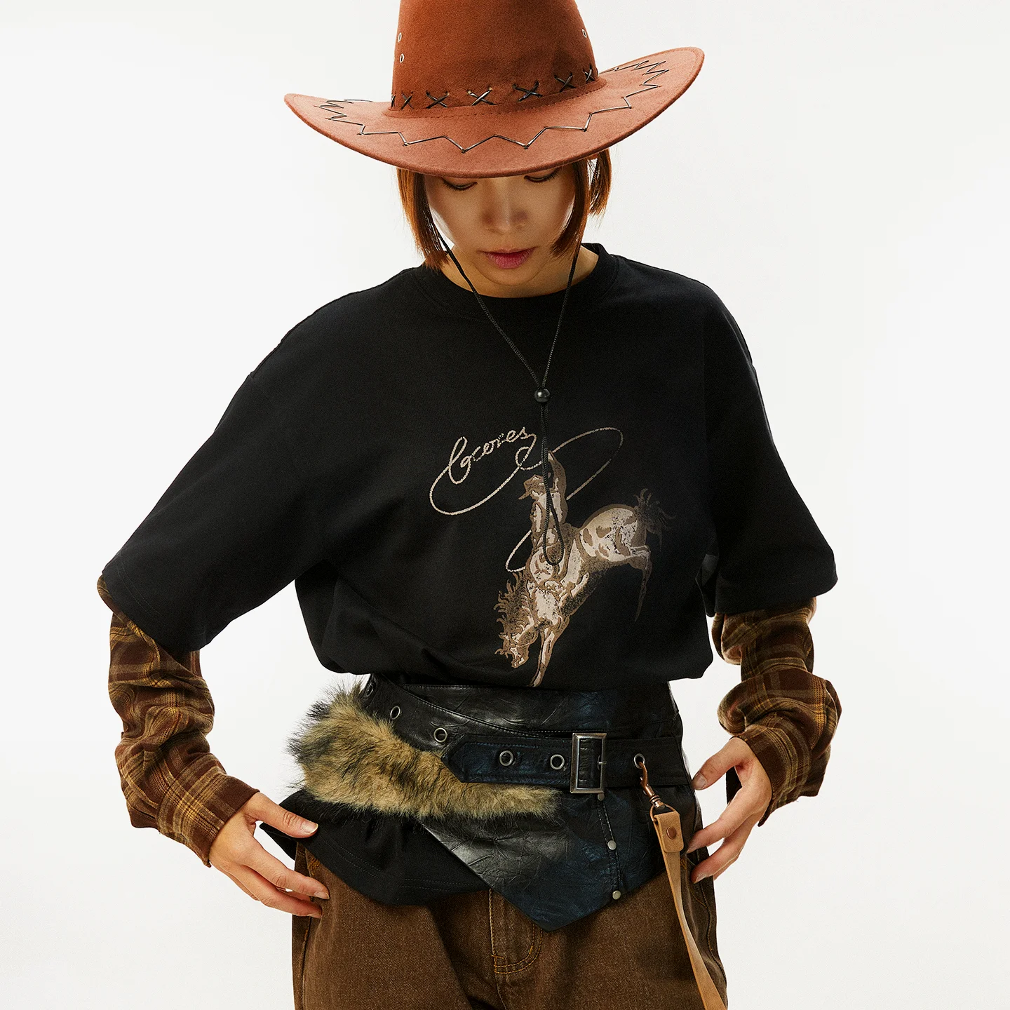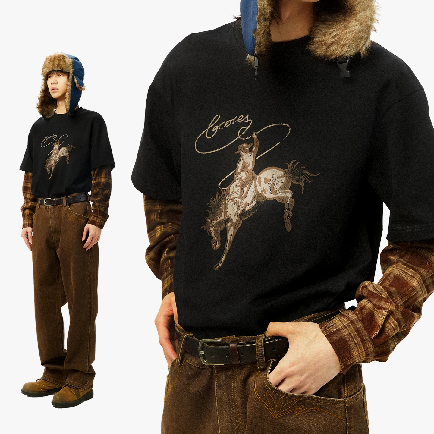 吉考斯工业| 套马纳福|纯棉假两件衬衫袖圆领套头卫衣