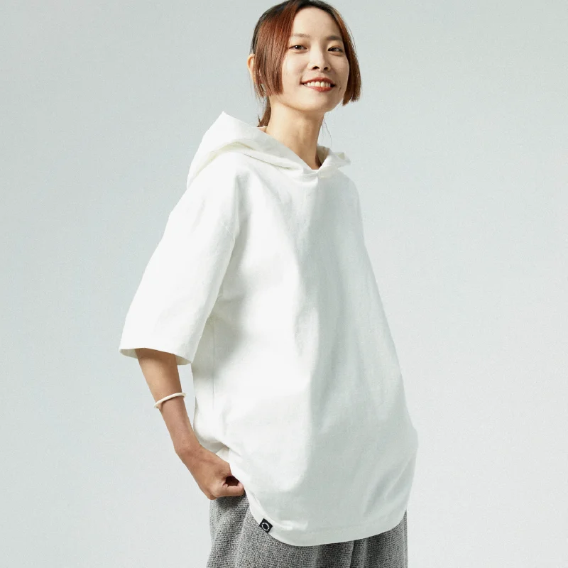 正面的小印花图案为小野人前期迷茫但努力的直立行走时期,是人类出现的标志性举动,同时小野人走路姿势的灵感也来源于加利福尼亚州大脚怪事件的神秘照片;背面的大图案呈现了小野人从四肢爬行的时期,一步步掌握玩乐感的游戏生活。它的玩乐工具也在逐步进化,由最初的从饮食需求得来的骨头到出于自我防护需要制造的长矛,之后文明在满足生存需求后纯粹进化为基于精神需求而产生的娱乐活动滚铁环以及娱乐产品游戏机;「游戏的人」四个字选用苍劲有力的字体设计,书法字体感的劲道笔锋能完美匹配小野人图案的历史进程感。 · 将100%棉的水洗面料与休闲版型的短袖连帽上衣结合,在基础款上增添新意 · 衣服表层选用亲肤绒,摸起来手感绵软,爱不释手 · 帽子为双层缝合设计,在里侧看不见摸不着缝线,佩戴更舒适 · 经典两色白色以及黑色可选,分别搭配蓝色与白色的专色胶印印花
