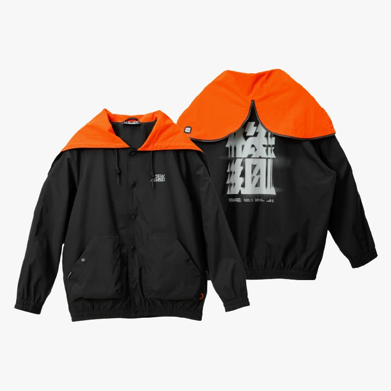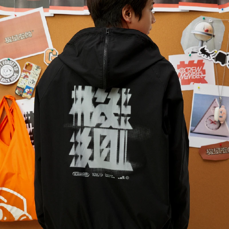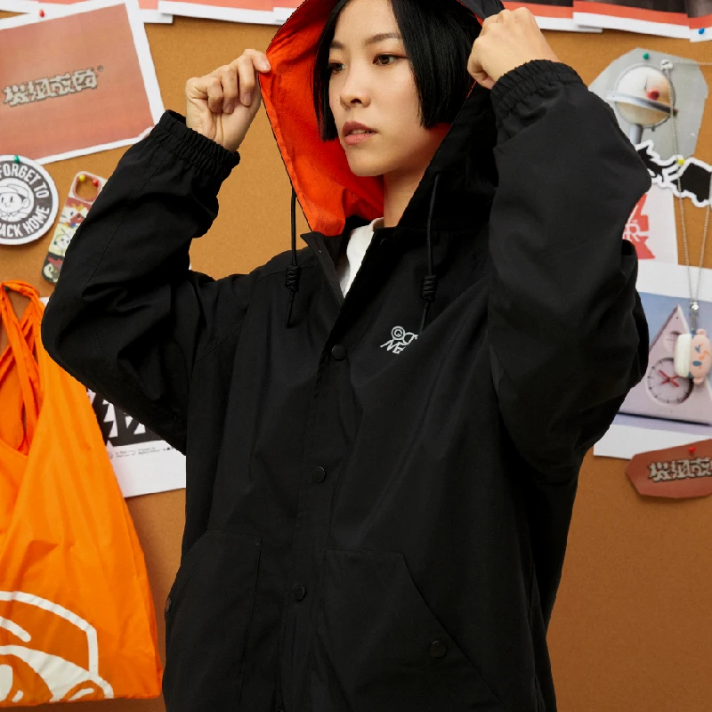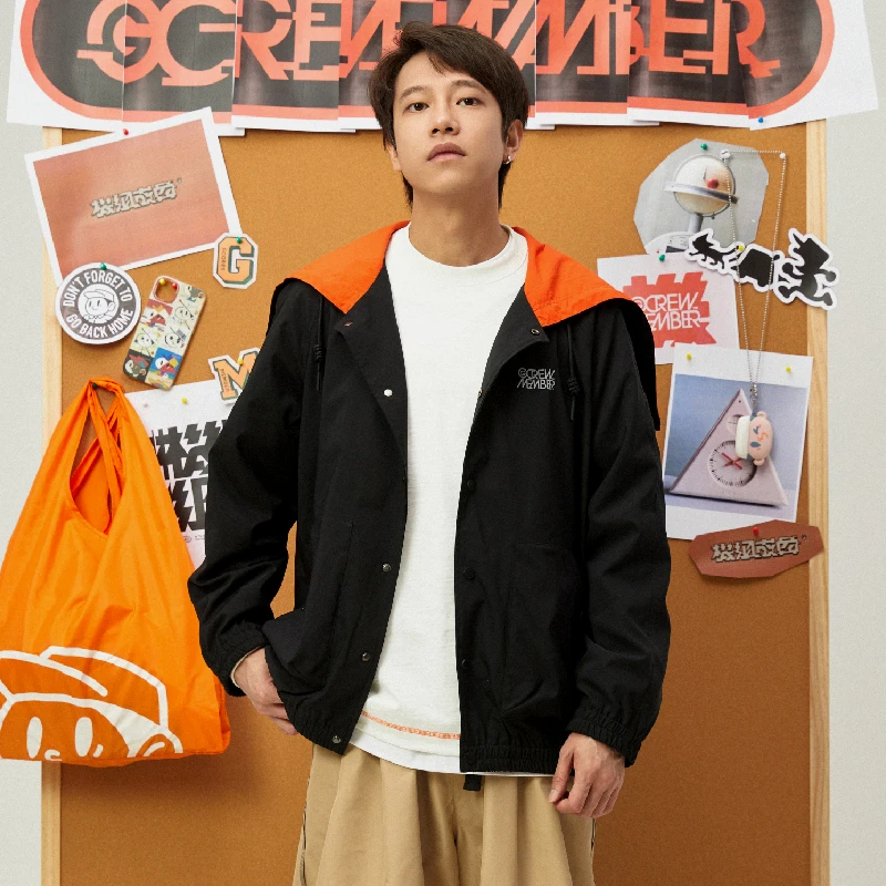 经典海军大翻领外套,以经典黑色为主,由橙色点缀呼应系列主题;可随心收束帽领部分,成为帽子更含蓄一点,变身翻领更洋溢一些;胸前印有“GCREWMEMBER”品牌字体,凸显品牌调性。背后印有“機组”大字,给机组成员带来身份归属感。 - 100%聚酯纤维,面料克重150g,轻薄防风 - 随心穿搭,既是撞色翻领也可低调戴帽 - 前胸背后均印有品牌标识,提升服饰质感