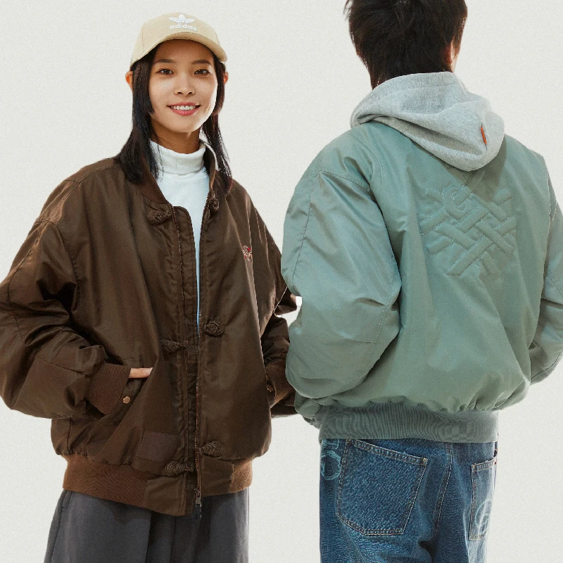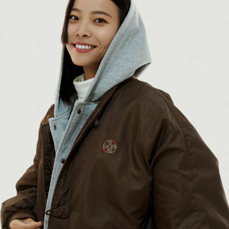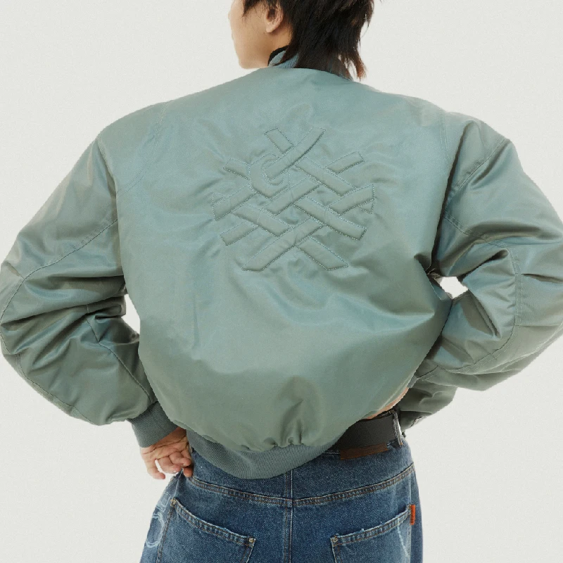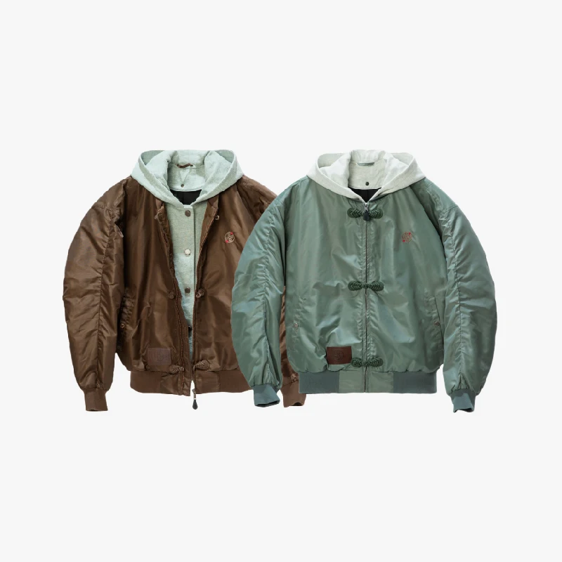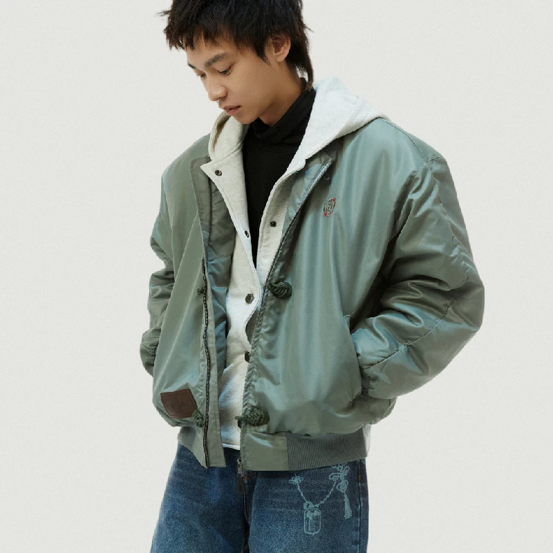 飞行员夹克版型与中式元素的完美结合,“劲”与“雅”的代表作。两穿特别设计构成里外假两层,可随意拆卸;醒目的古币元素以金属色纱线缝制于胸前处并配以红绳点缀,带来“富裕”与“好彩”的良好寓意;采用手工编织琵琶盘扣,凸显中式之美,内部针织层采用异形螺母扣,与盘扣设计交相辉映;背面也大有文章,运用立体绗棉绣花,将绳结以及螺丝等元素呈现在夹克上,完善整件服饰的设计统一感。 -外层面料100%尼龙,内层针织面料100%棉,里料100%聚酯纤维 -450g可拆卸夹层针织帽设计,从寒冬穿到暖春没有压力 -纯手工制作琵琶盘扣,使中式韵味锦上添花 -背面绳结图案采用立体绗棉绣花,立体有型 -运用机组成员新款钢印皮牌辅料以及全新橙色织标,更添品牌质感 -两色可选:灰绿色/深咖色